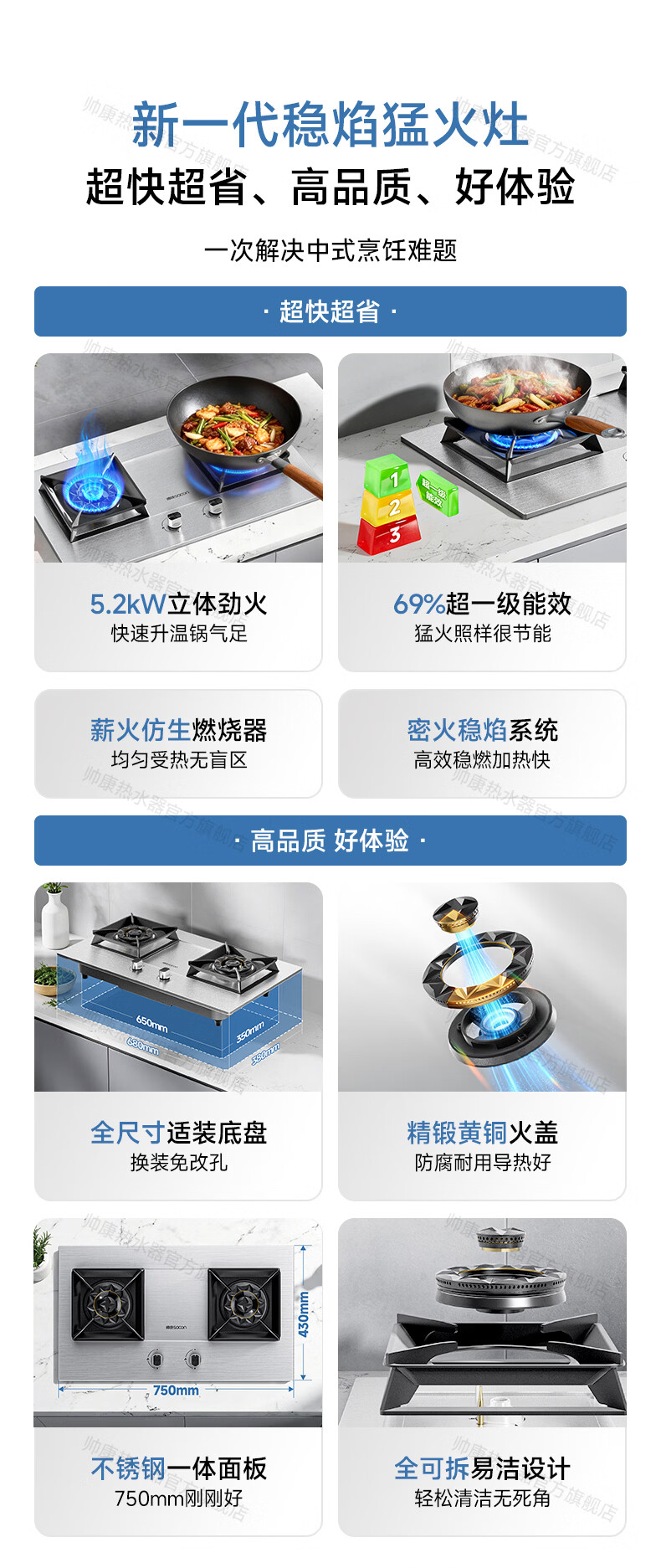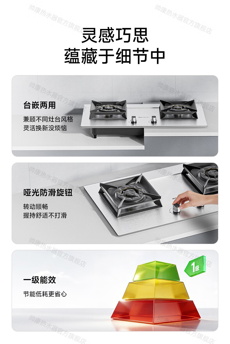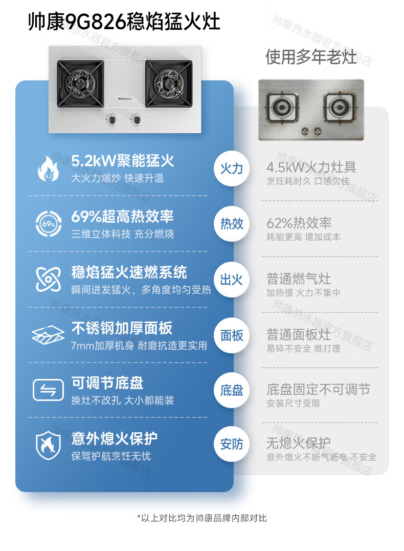 帅康(Sacon)燃气灶煤气灶铜火盖双灶天然气台嵌两用5.2kW双边定时灶免改孔烟灶联动9B828/9G826/9B868Max 5.2kW不锈钢面板灶9G826 天然气