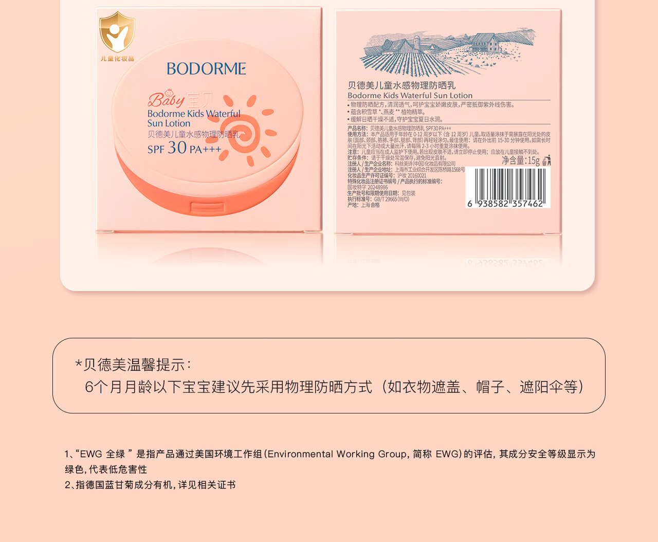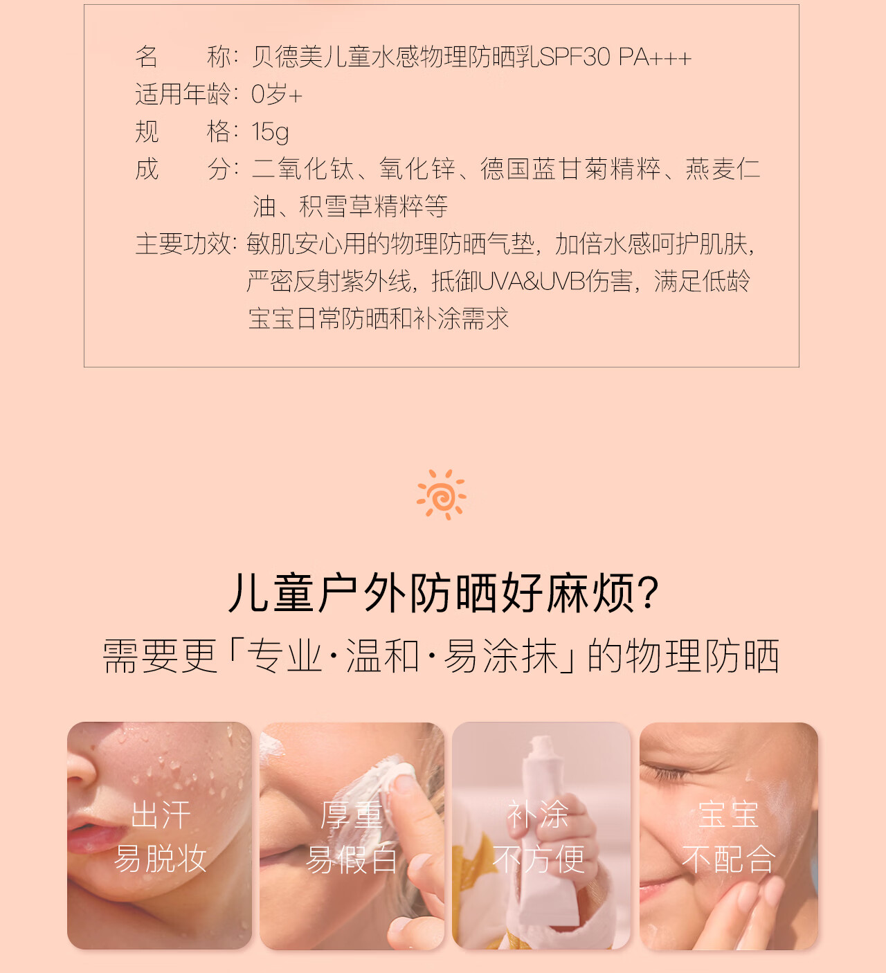 贝德美(bodcrme)儿童防晒气垫15g宝宝防紫外线防晒儿童专用防晒霜
