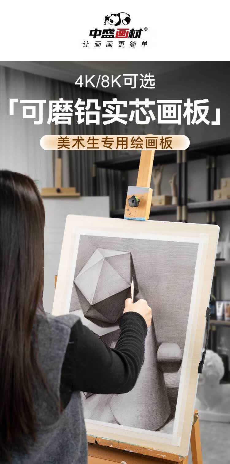 【超级爆款】中盛画材 4K画板实心素描画板美术生专用4K素描工具套装水彩写生a2绘图板儿童成人实心木质画架板四开水粉 速写 马克笔绘画