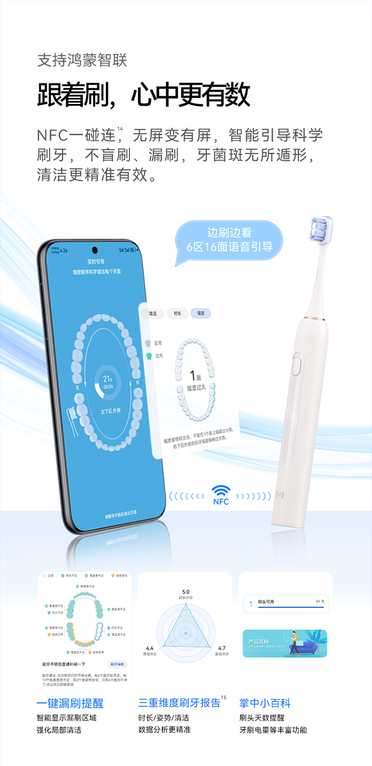 鸿蒙智选力博得智能声波电动牙刷优漾3 情侣生日礼物学生牙刷深度清洁亮白长续航 三八节女神礼物