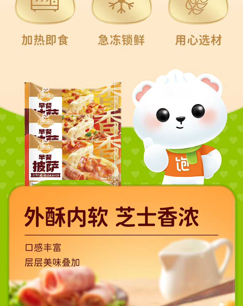 林饱饱早餐单人装微波口袋披萨速食空气炸锅半成品学生儿童披萨pizza 【全家福囤货装】奥尔良鸡肉*4+培根香肠*4+至尊牛肉*4