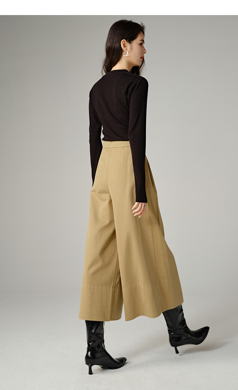 晚白【专享】2026年春款时尚棉料裤子亲肤舒适高腰显瘦阔腿裤女 咖色 26