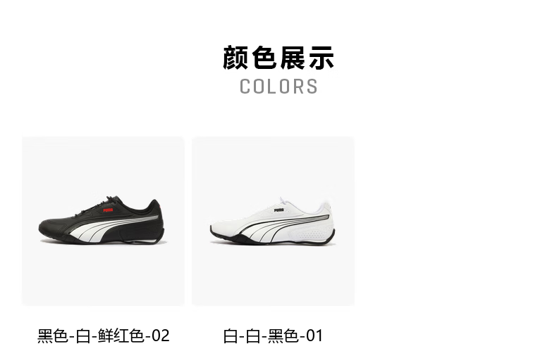 彪马(PUMA)薄底鞋|复古白色赛车休闲鞋男女冬运动鞋REDON388167 黑色-白-鲜红色-02 41