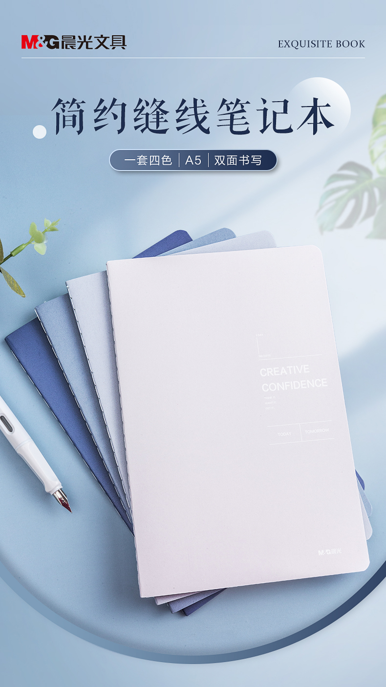 晨光(M&G)文具A5/40张笔记本子缝线本 记事本高颜值错题本 中学生考研日记本遐想之海4本FA5491开学必备
