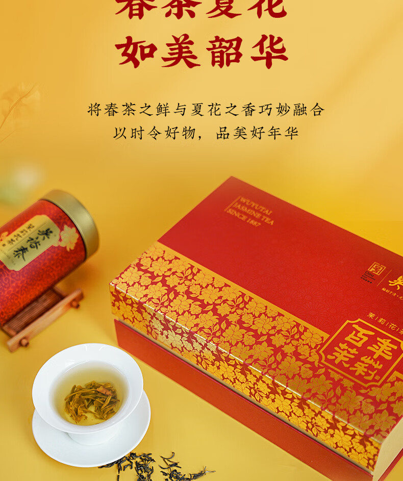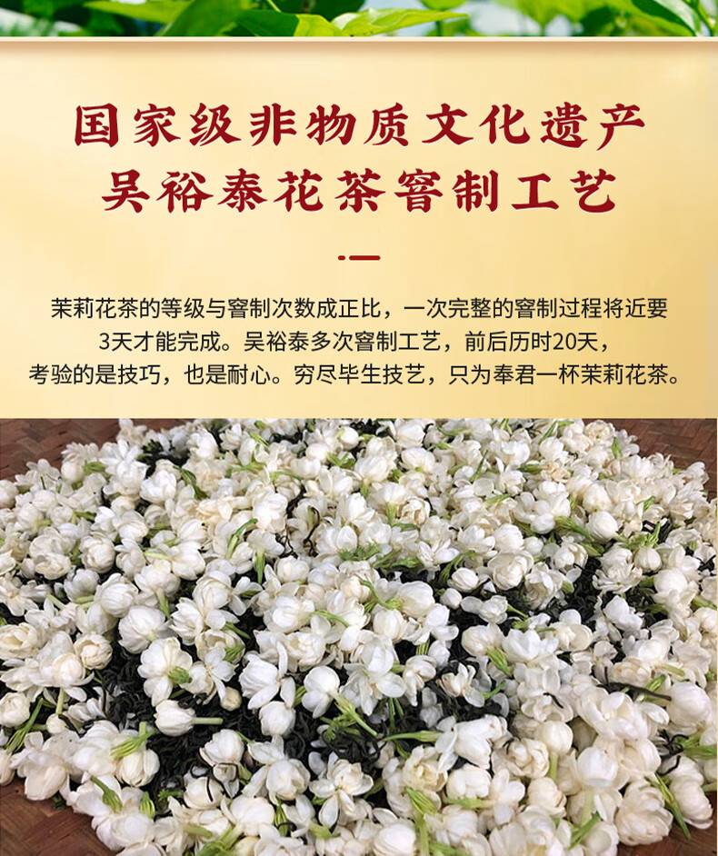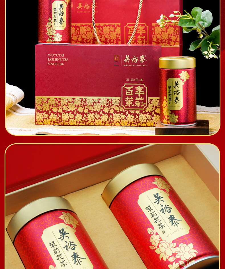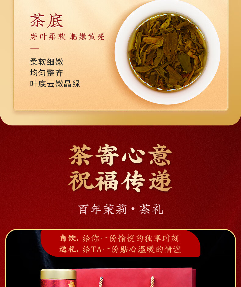 吴裕泰茉莉花茶 百年茉莉 浓香型特种200g六窨含芽鲜爽送礼茶礼盒