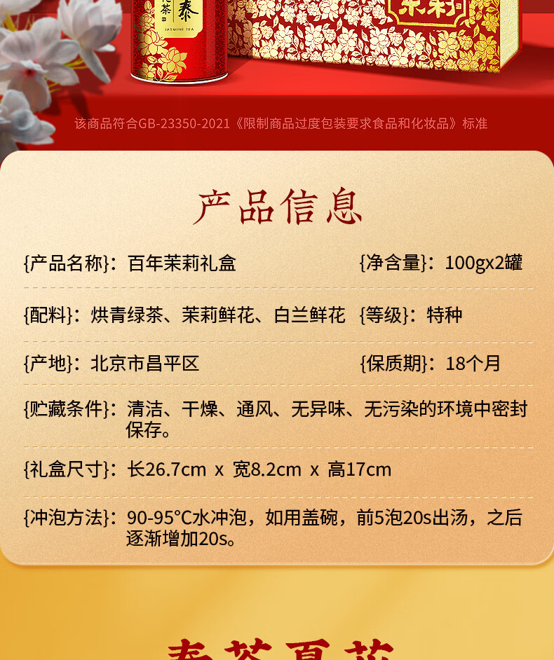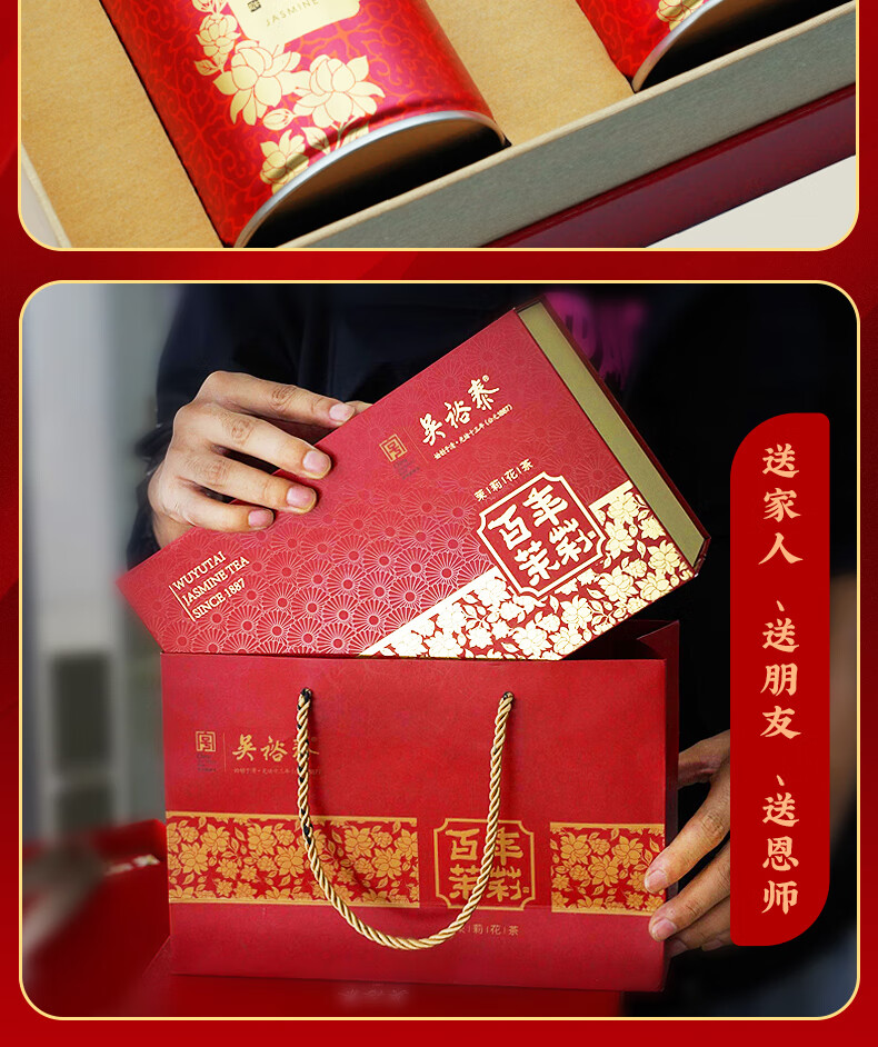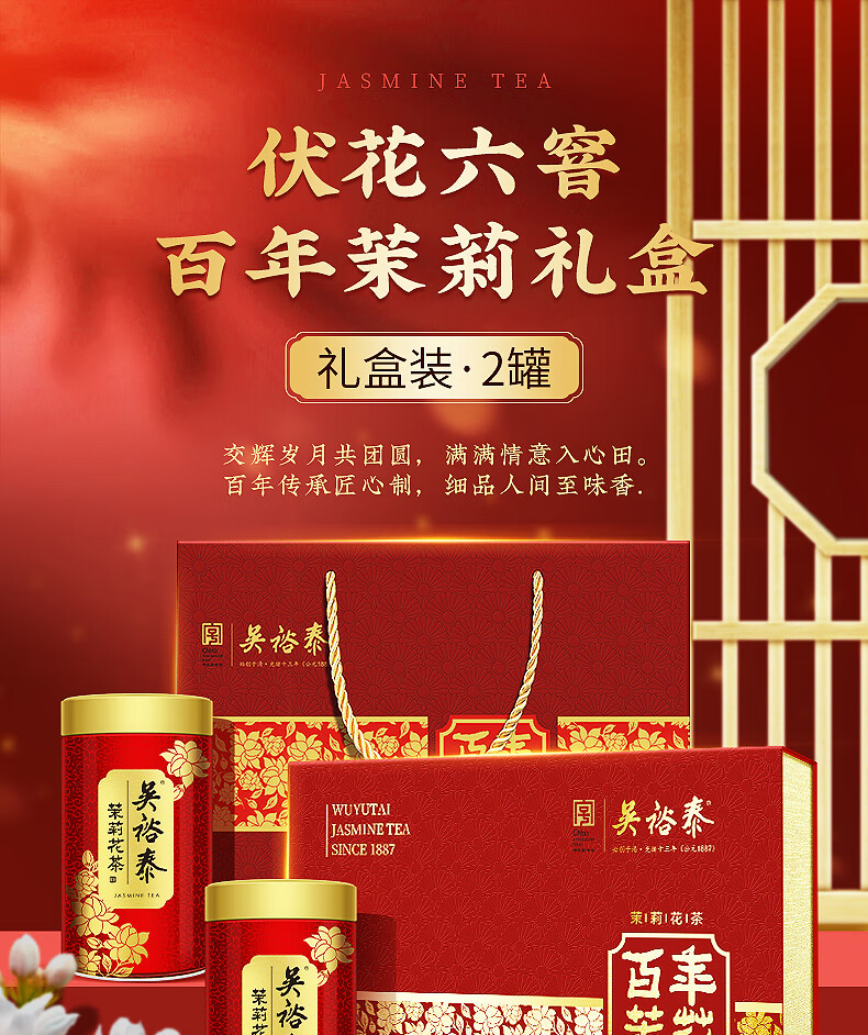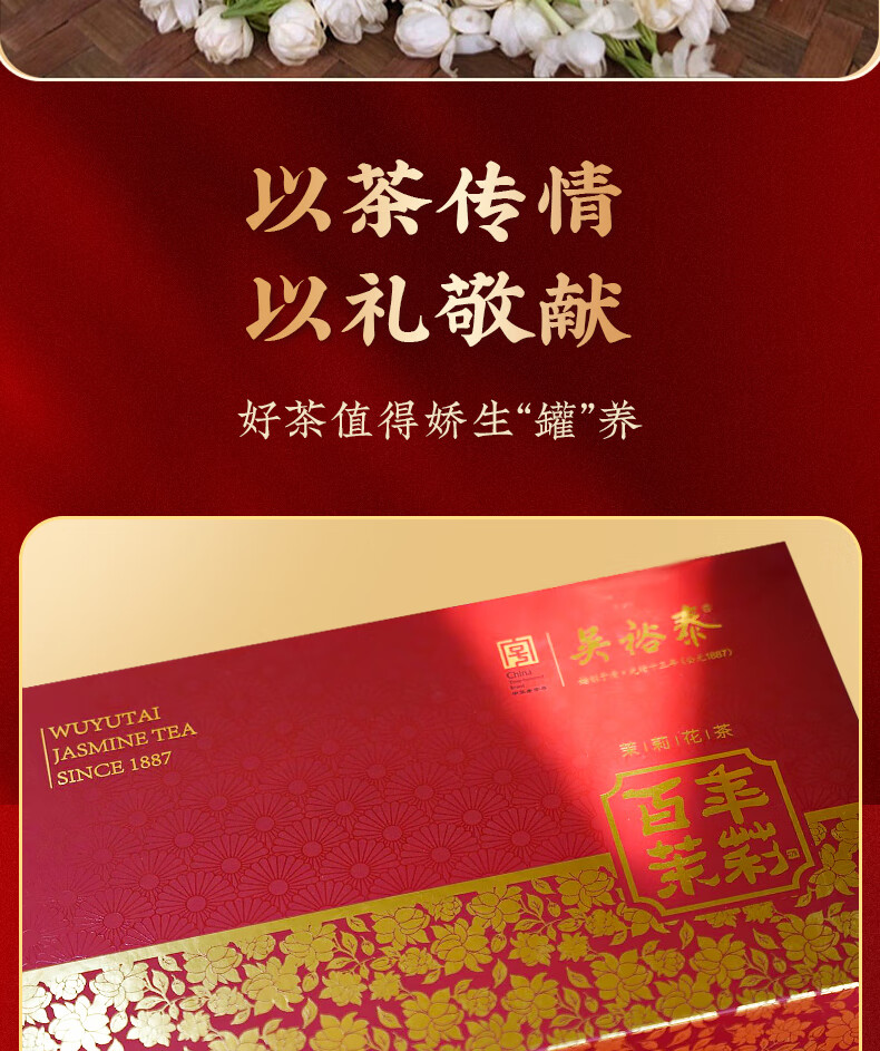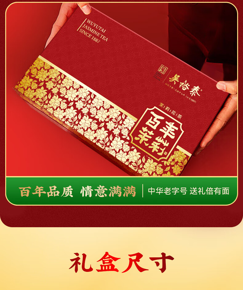 吴裕泰茉莉花茶 百年茉莉 浓香型特种200g六窨含芽鲜爽送礼茶礼盒