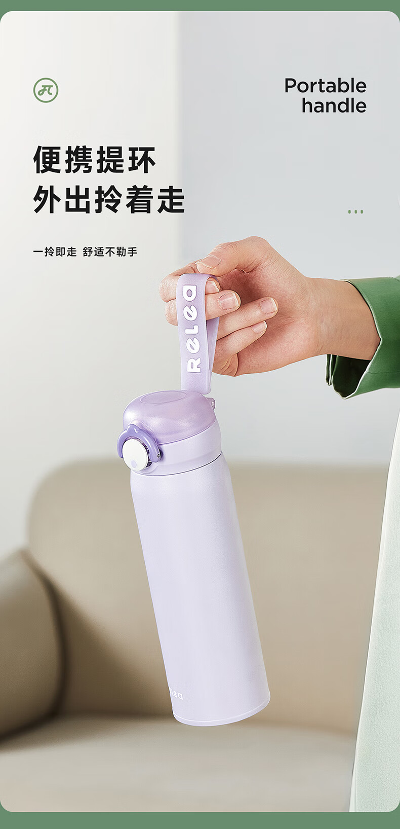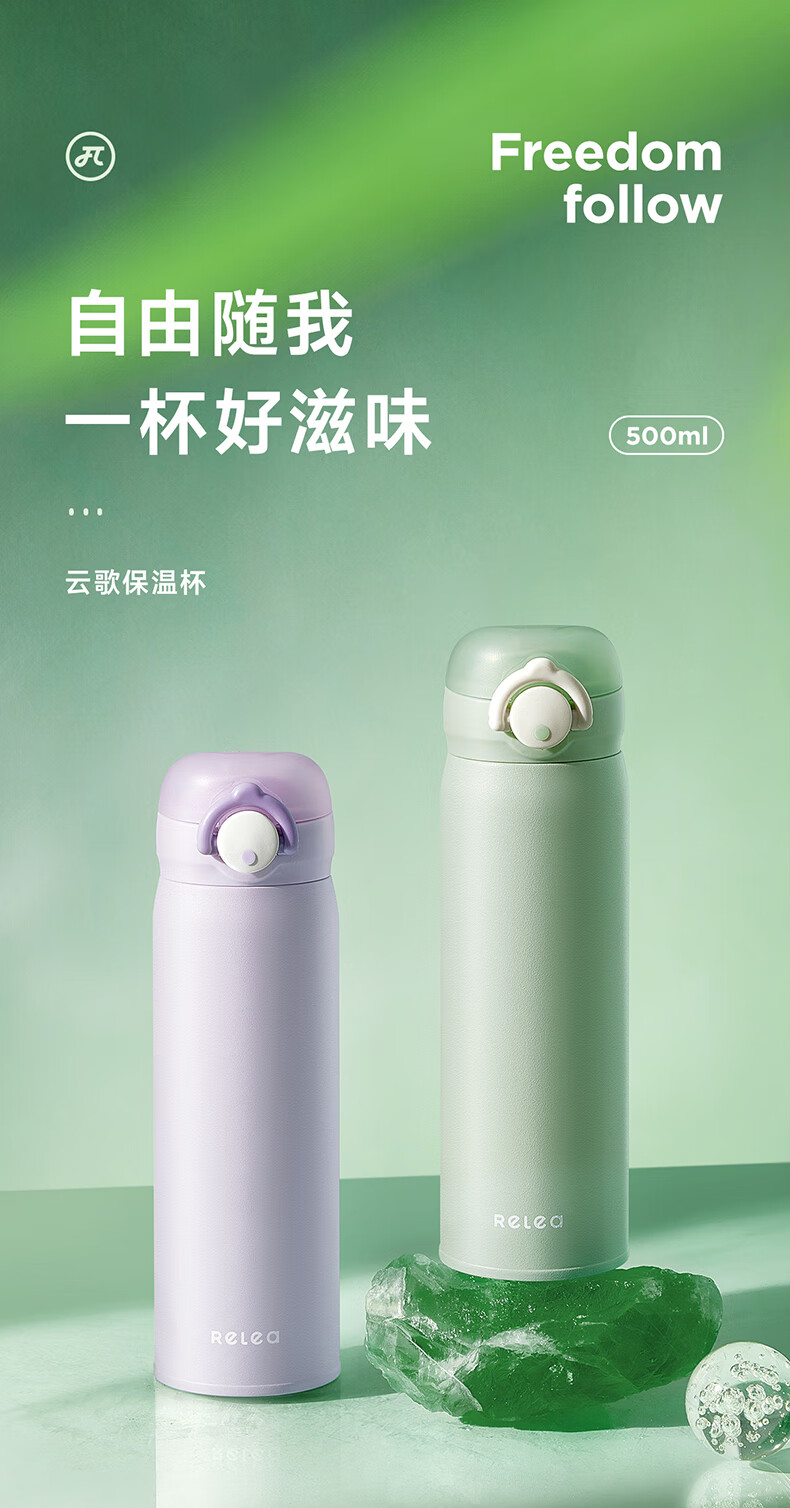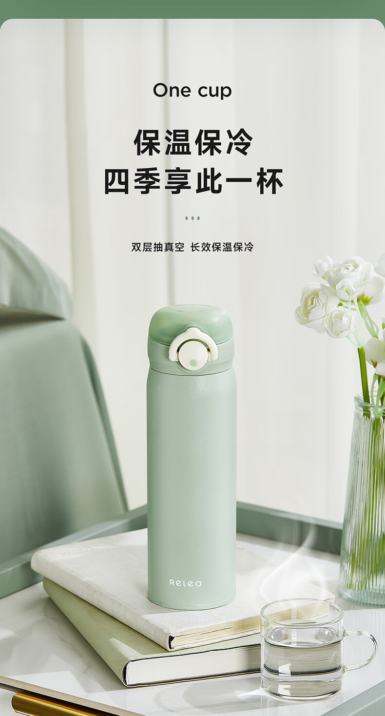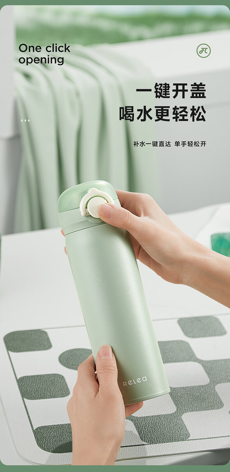物生物(RELEA)保温杯弹跳盖杯子316L不锈钢大容量男女学生保温水杯生日礼物