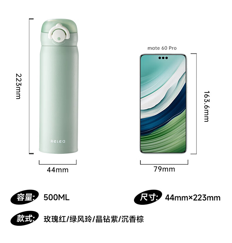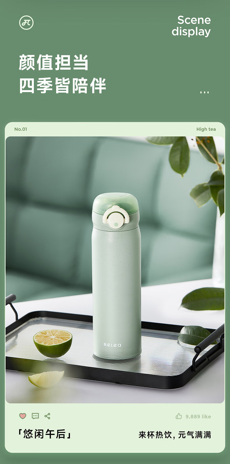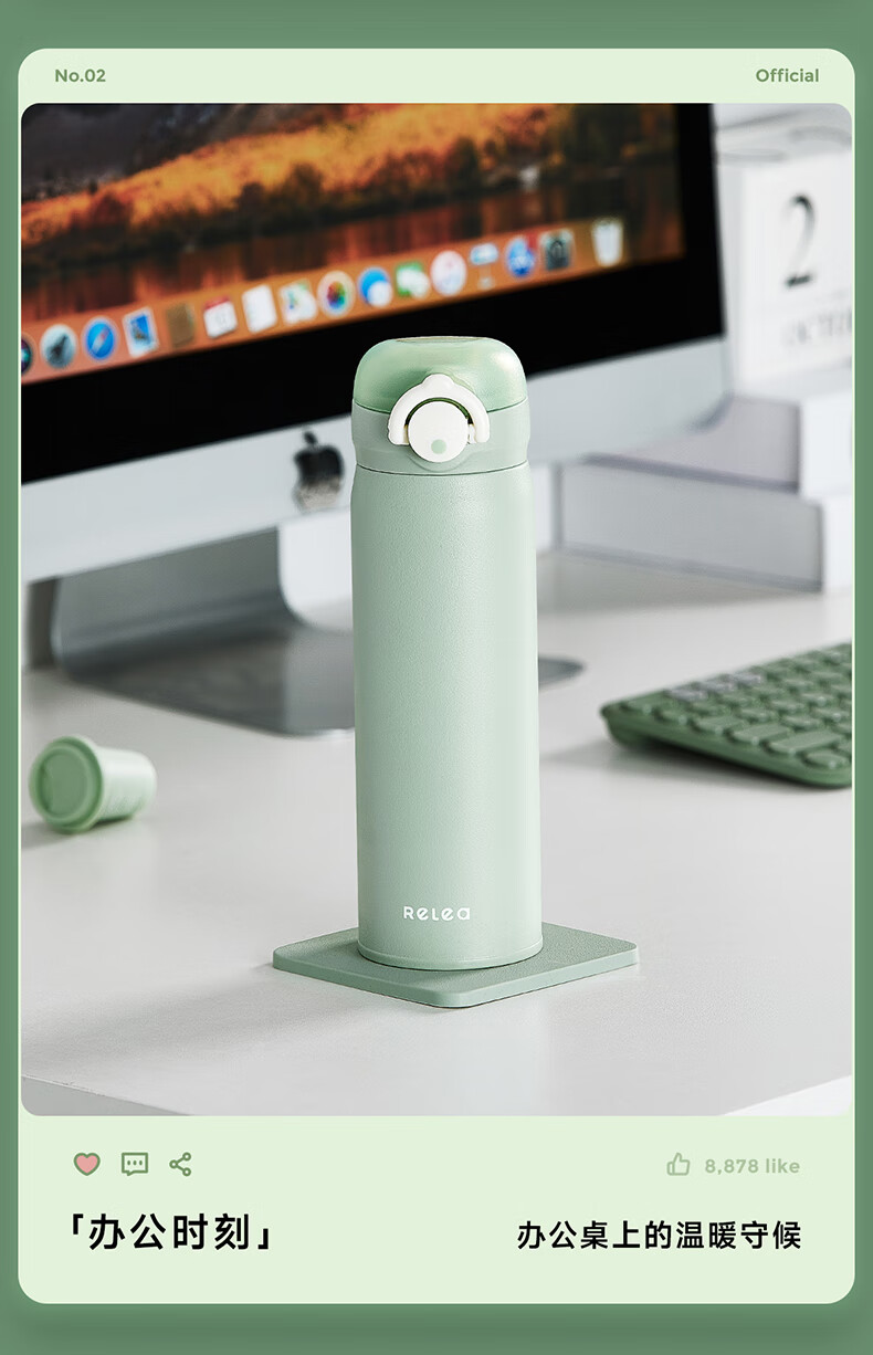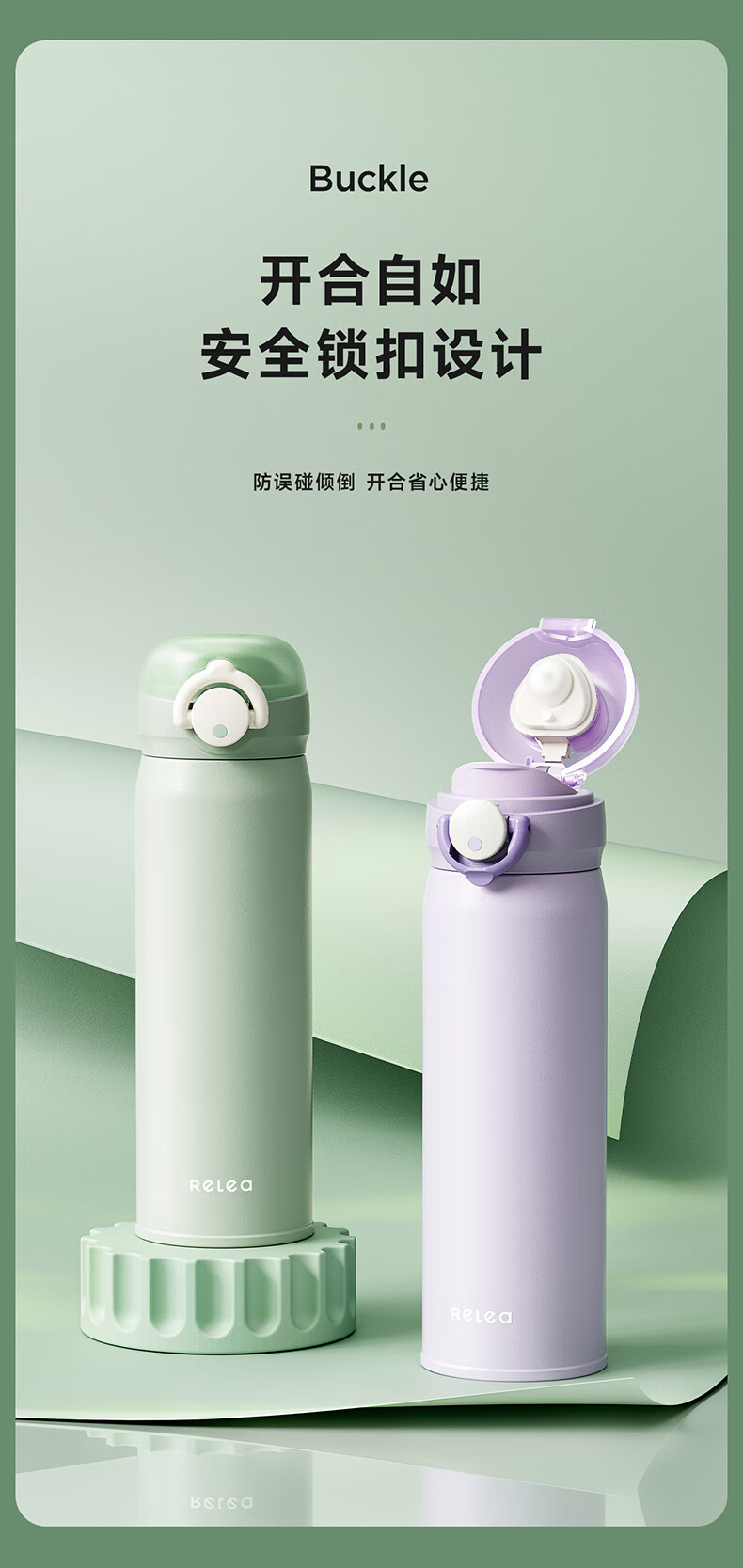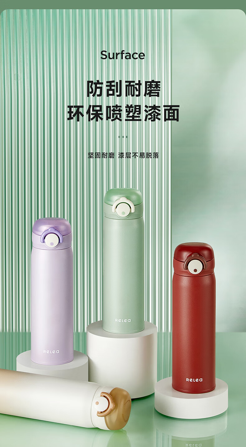 物生物(RELEA)保温杯弹跳盖杯子316L不锈钢大容量男女学生保温水杯生日礼物