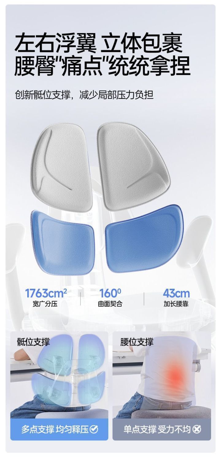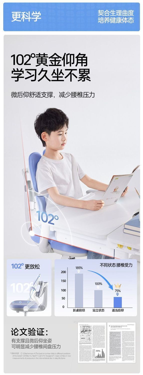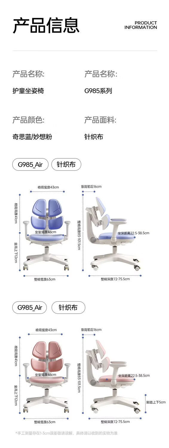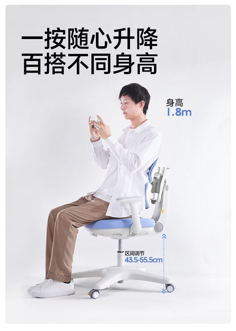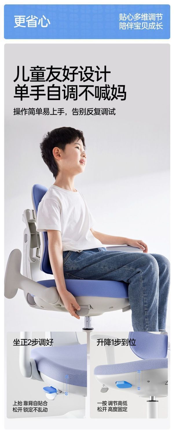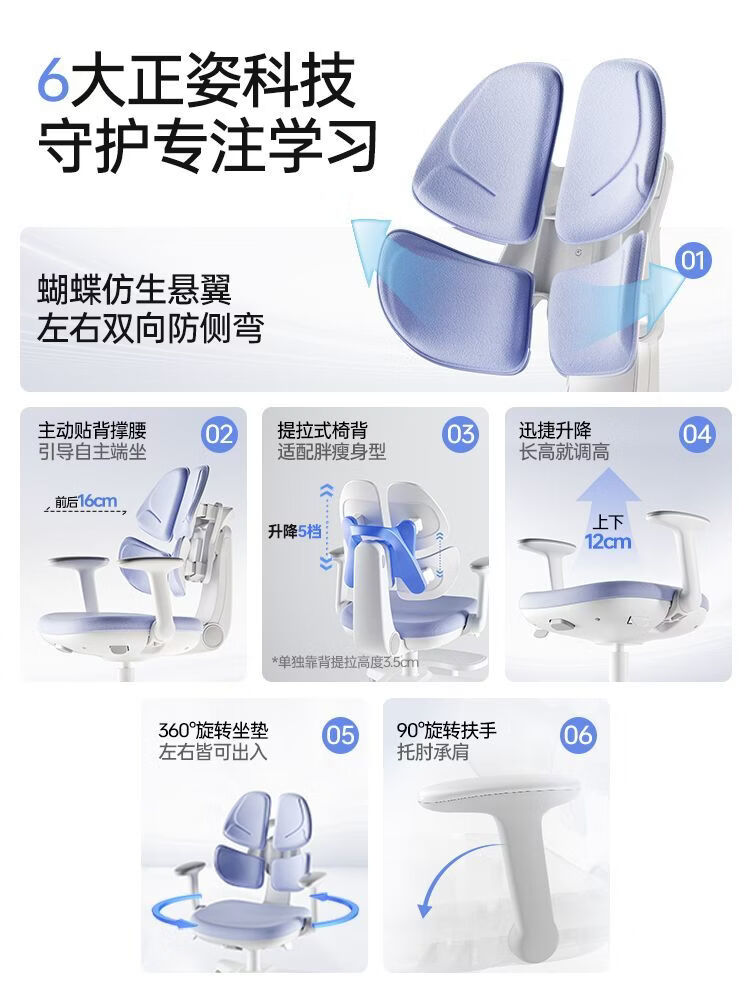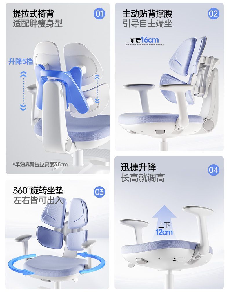 护童(Totguard)儿童学习椅学生写字椅儿童专用6-18岁可调节升降椅子 G985_Air_奇思蓝