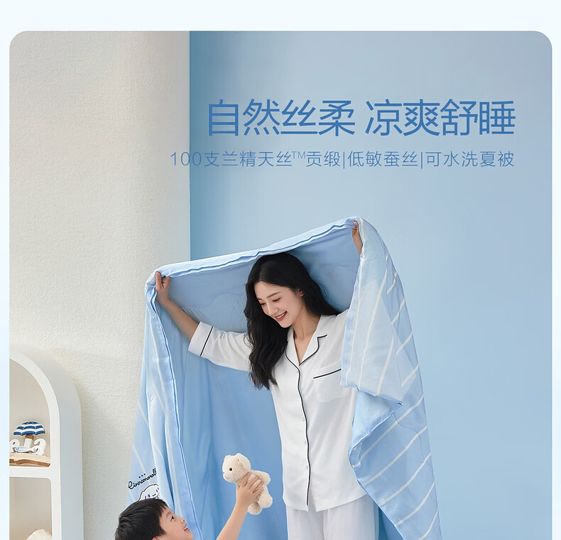 水星家纺软乎乎大耳狗天丝桑蚕丝夏被 软乎乎大耳狗天丝桑蚕丝夏被(海蓝色) 120cm*150cm