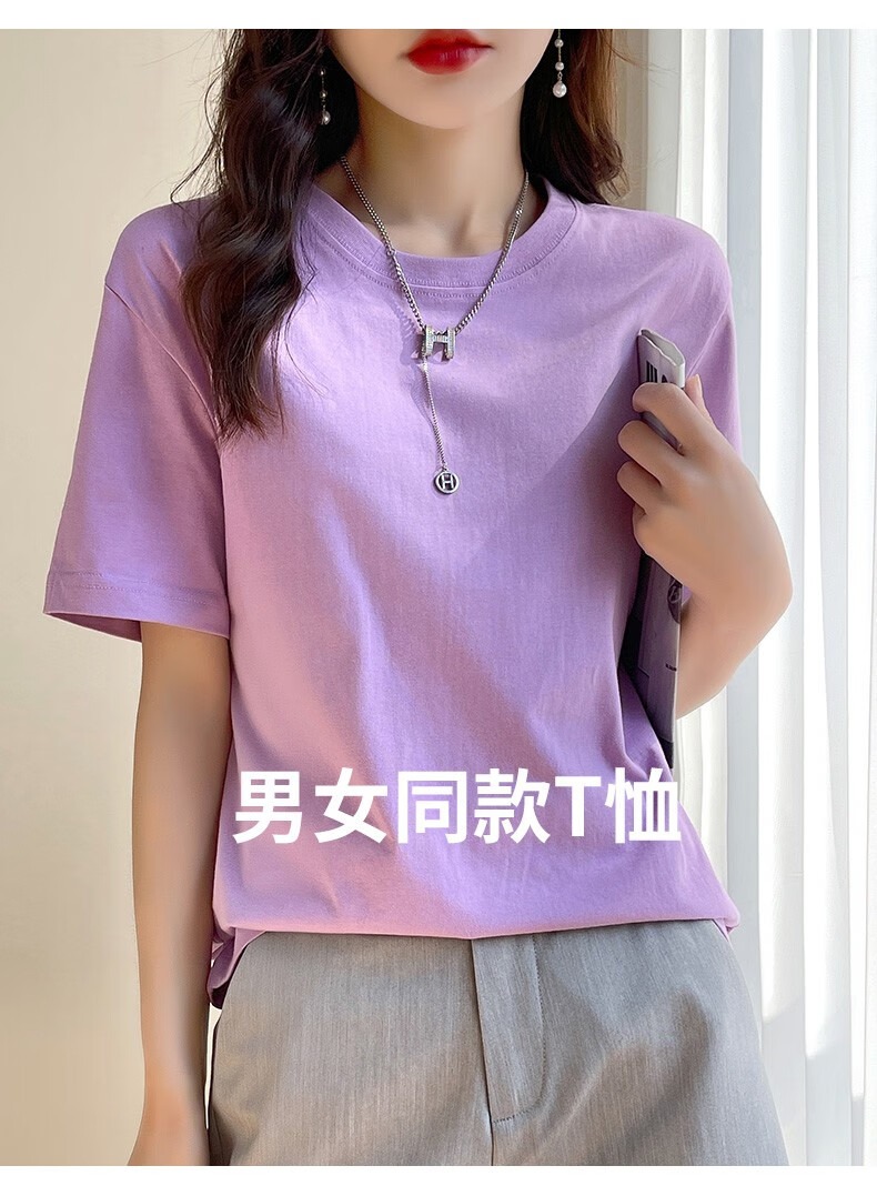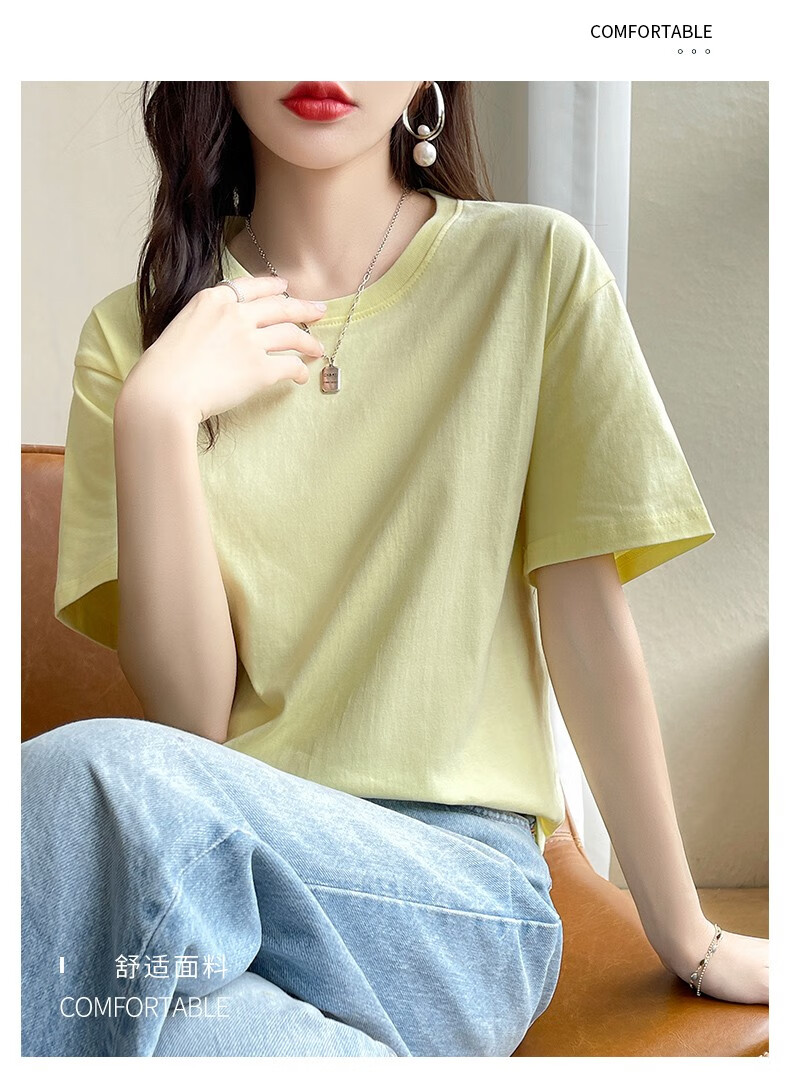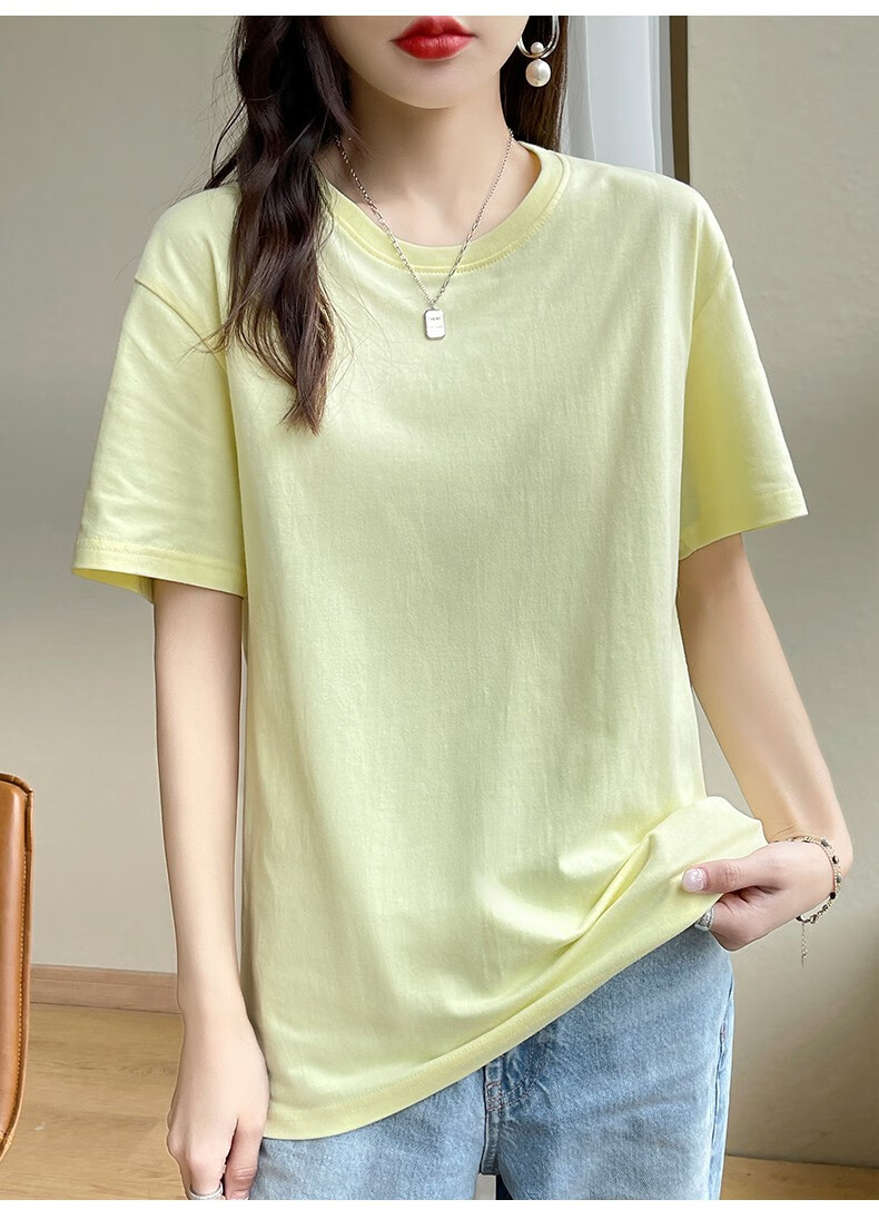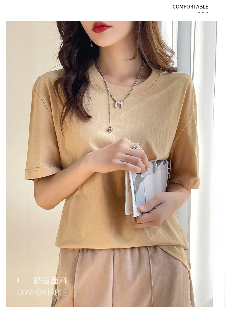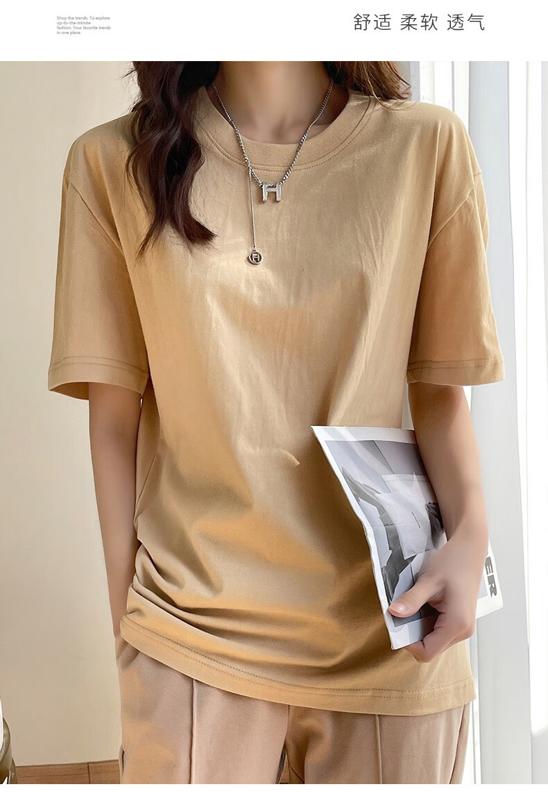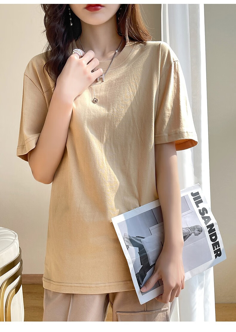 燠阳彩色精梳棉纯棉短袖t恤男女同款时尚宽松显瘦女装舒适情侣装衣服 米杏色 L 【110-125斤】