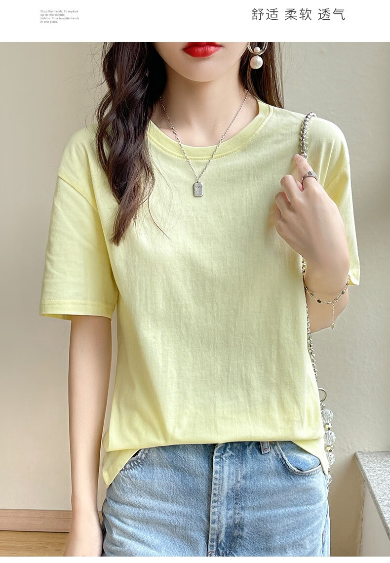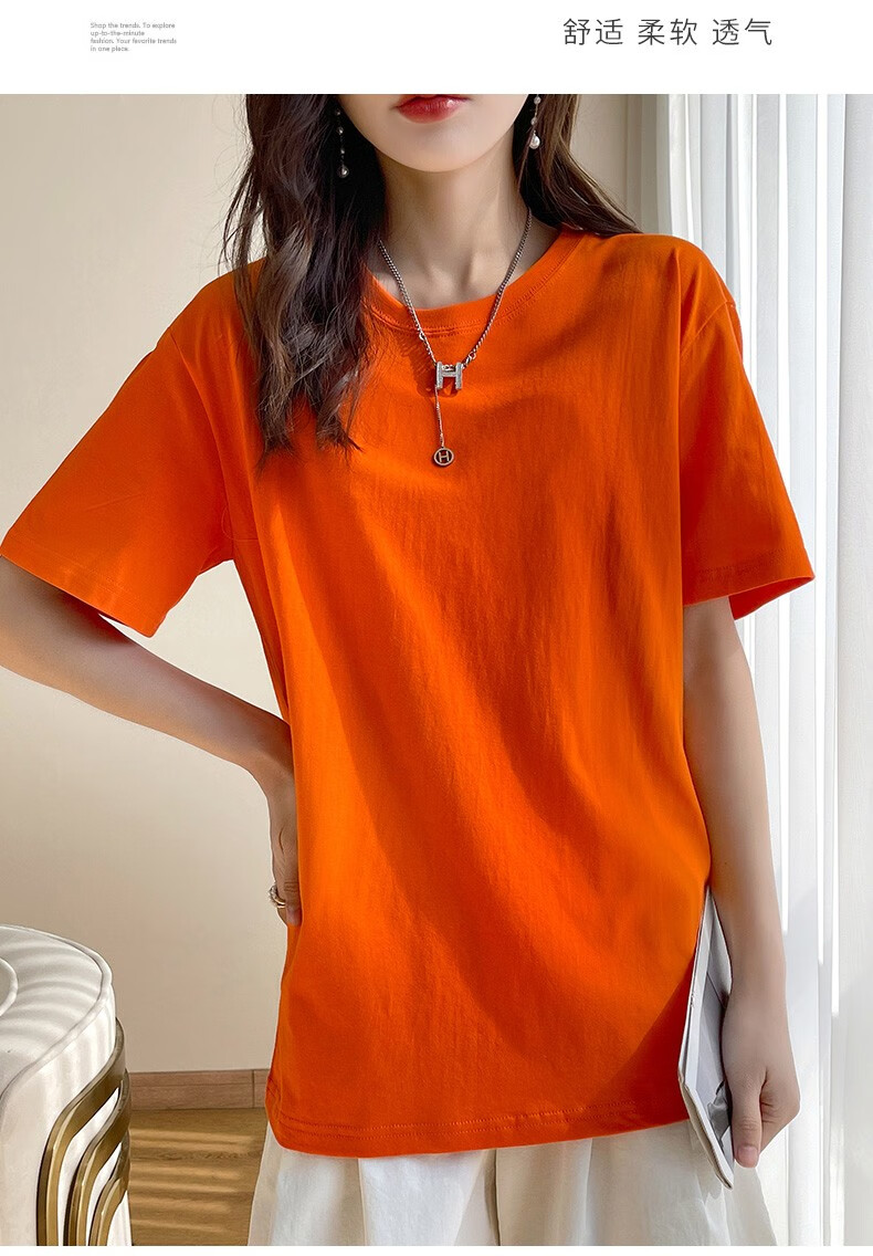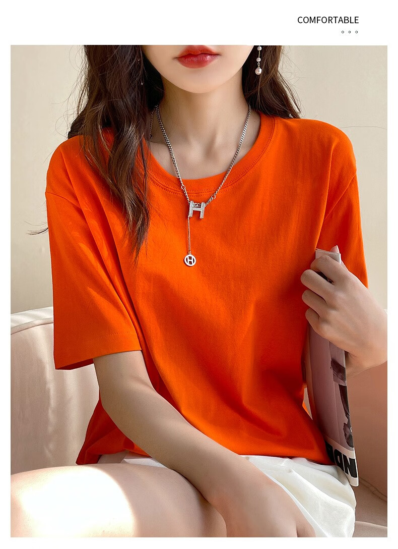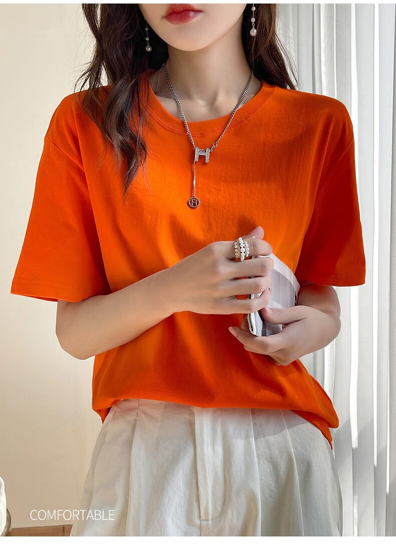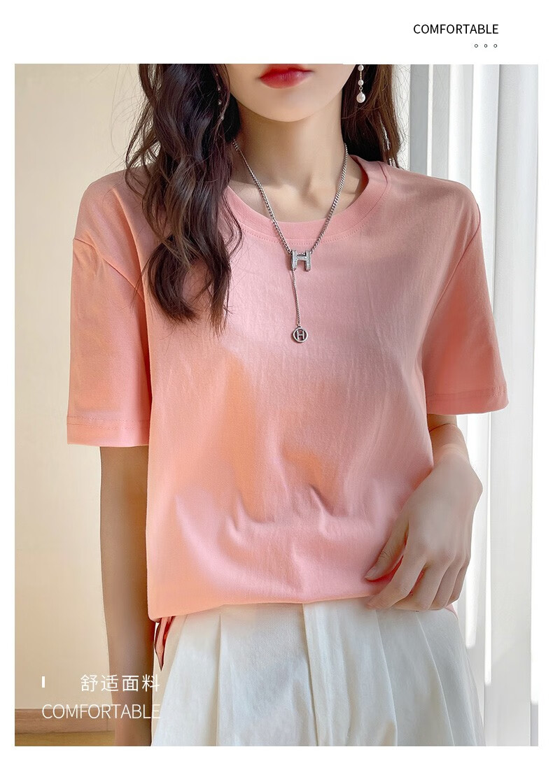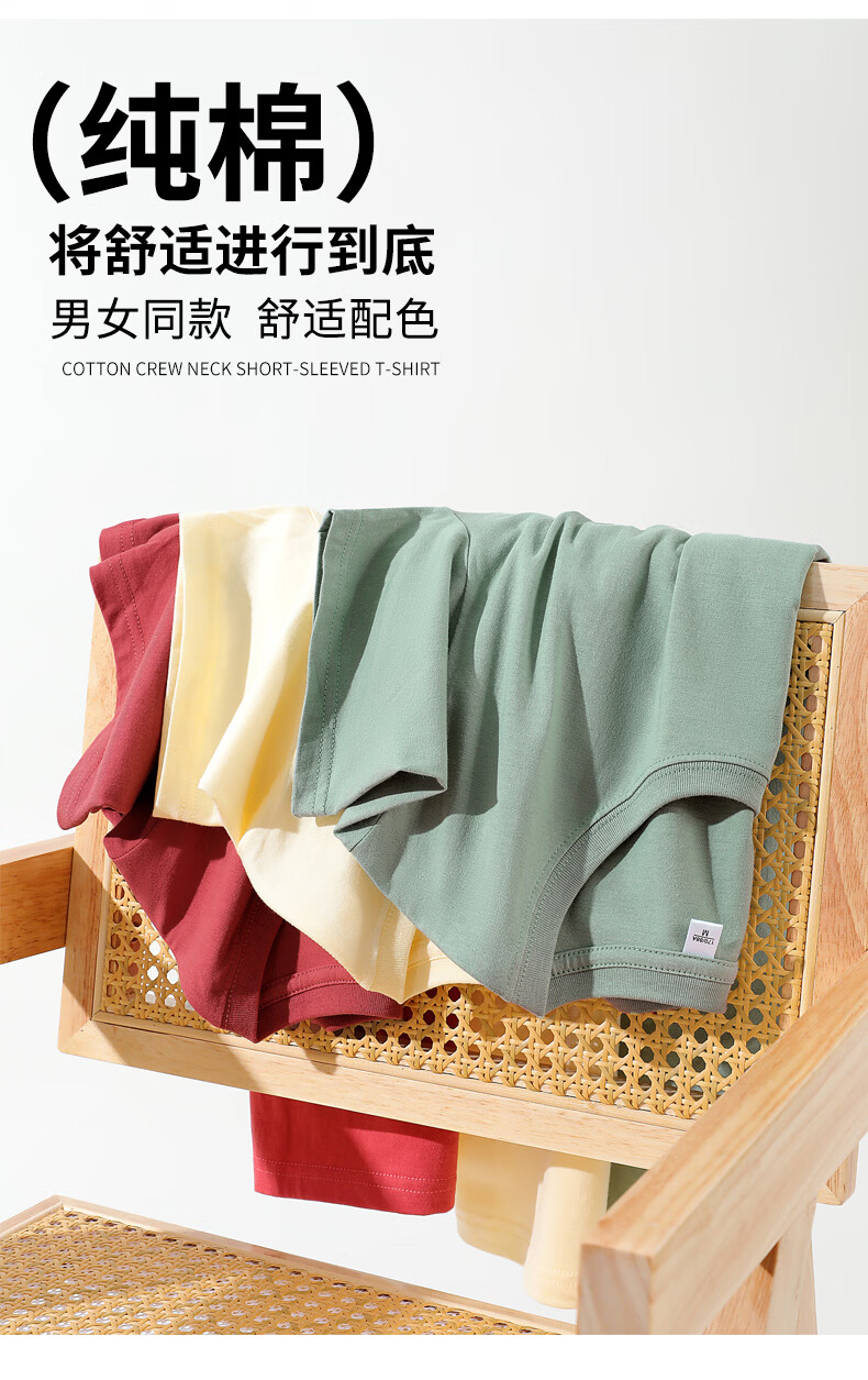 燠阳彩色精梳棉纯棉短袖t恤男女同款时尚宽松显瘦女装舒适情侣装衣服 米杏色 L 【110-125斤】