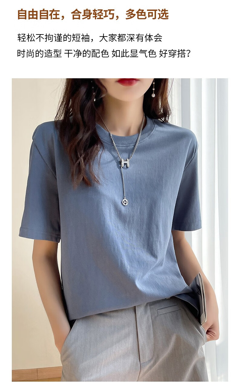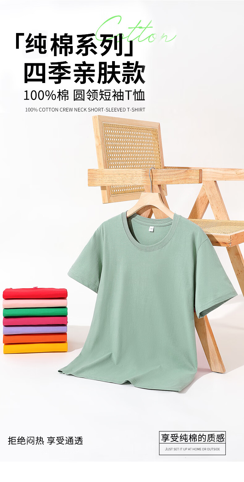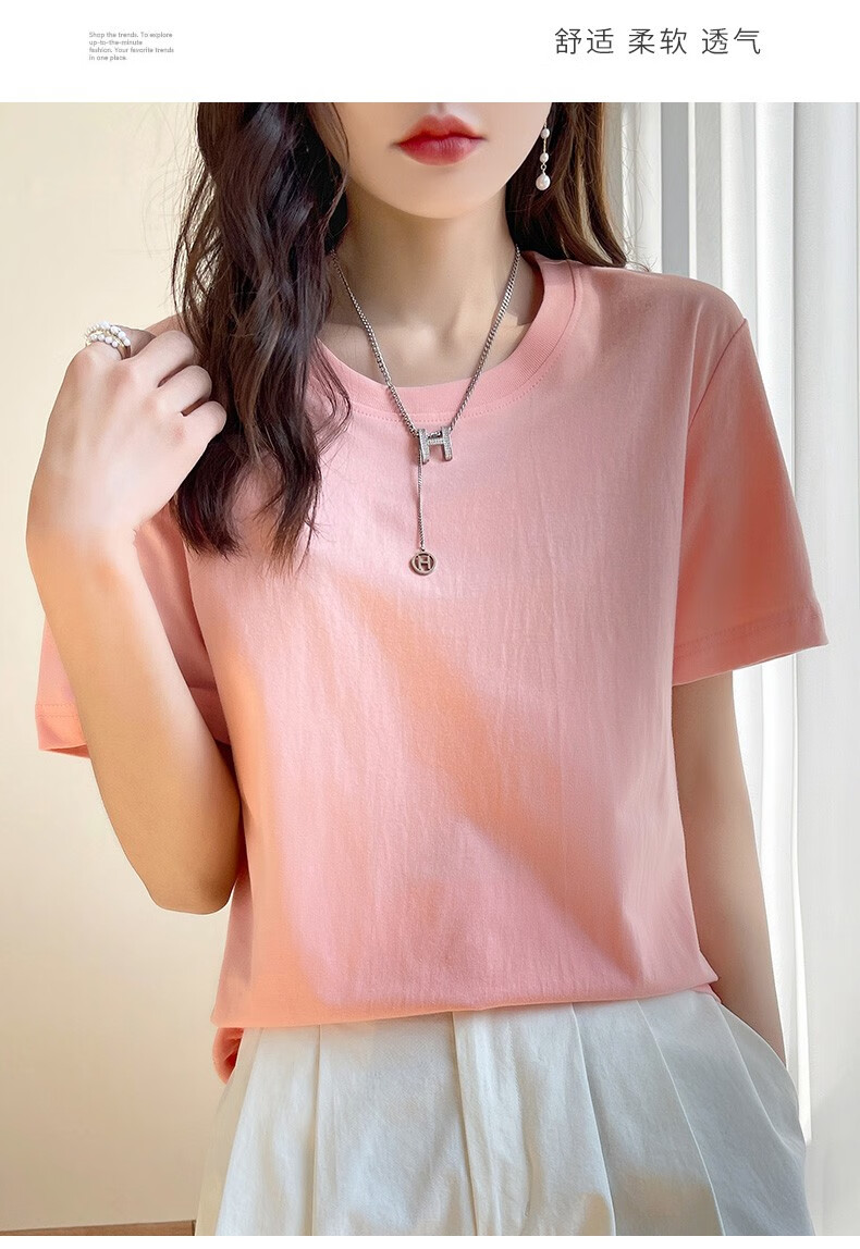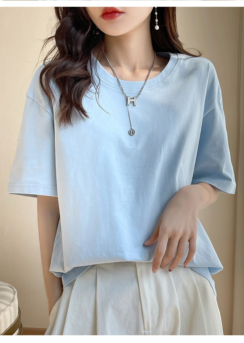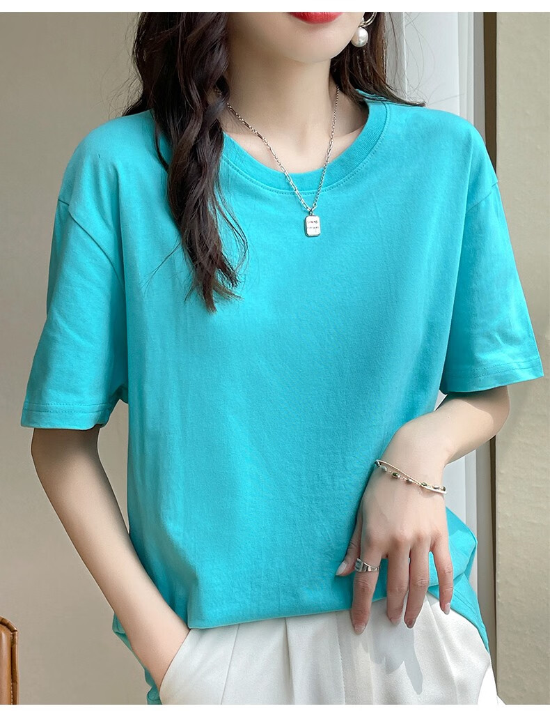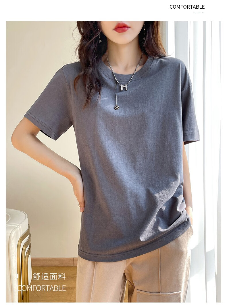 燠阳彩色精梳棉纯棉短袖t恤男女同款时尚宽松显瘦女装舒适情侣装衣服 米杏色 L 【110-125斤】