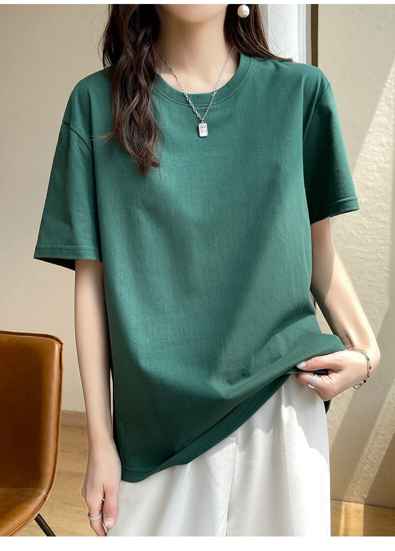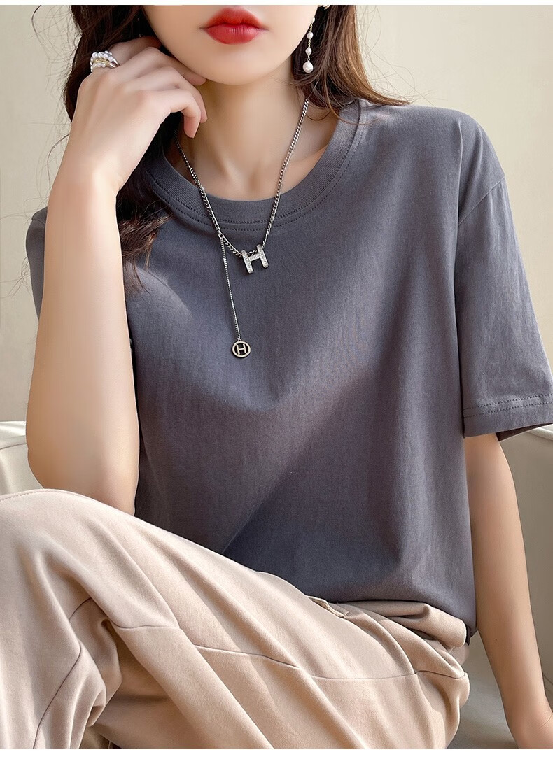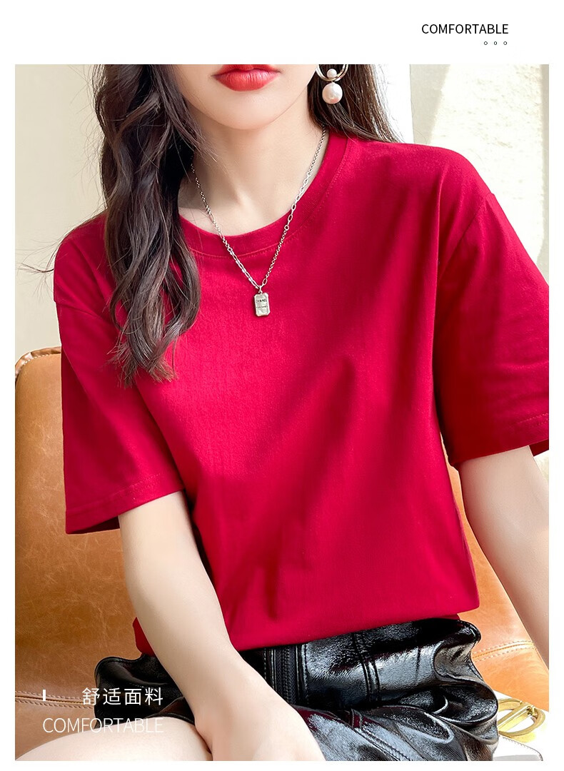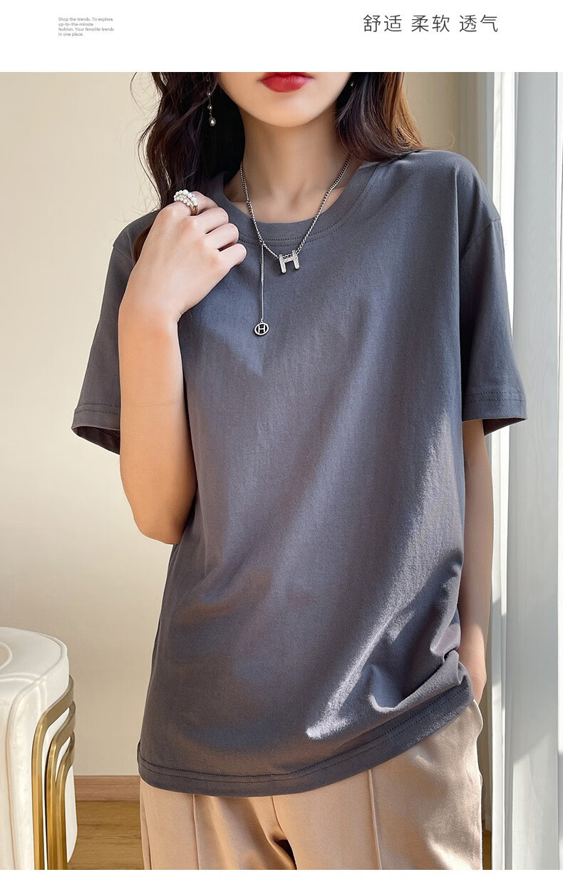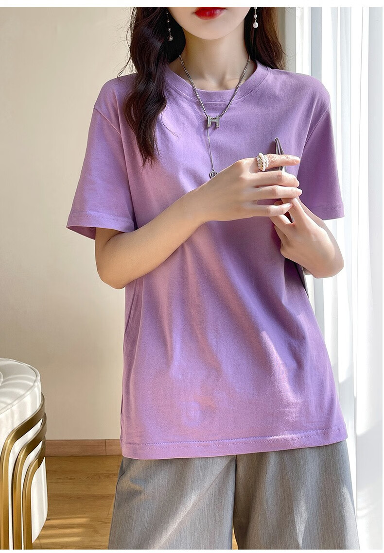 燠阳彩色精梳棉纯棉短袖t恤男女同款时尚宽松显瘦女装舒适情侣装衣服 米杏色 L 【110-125斤】
