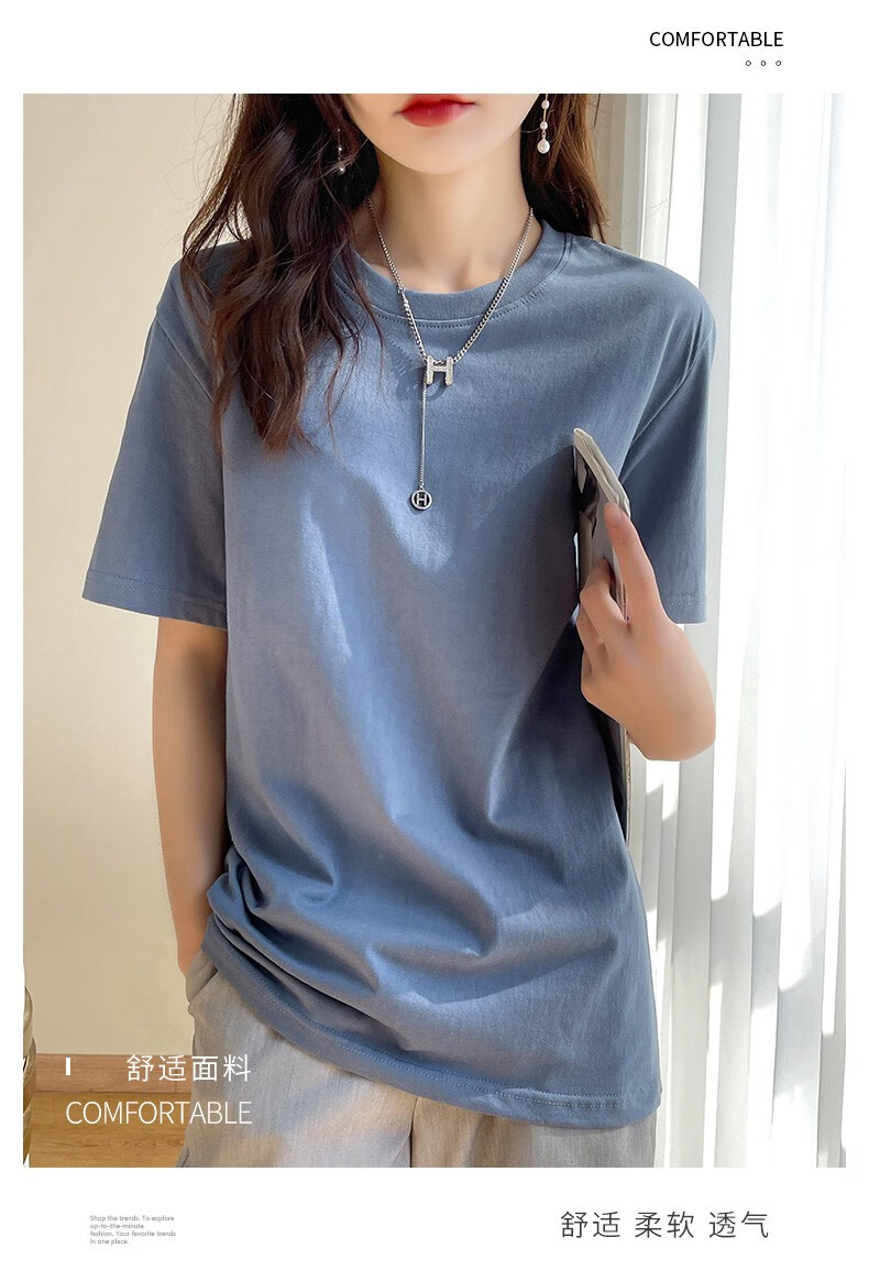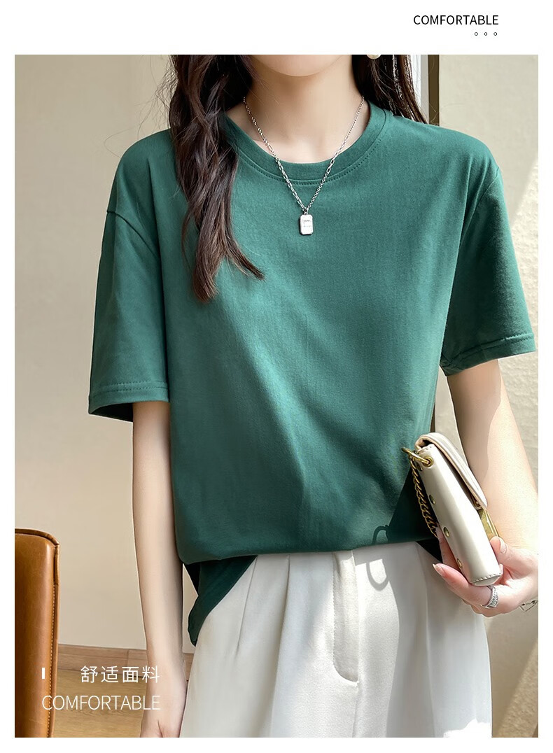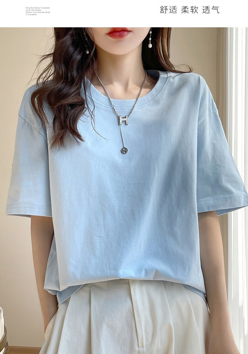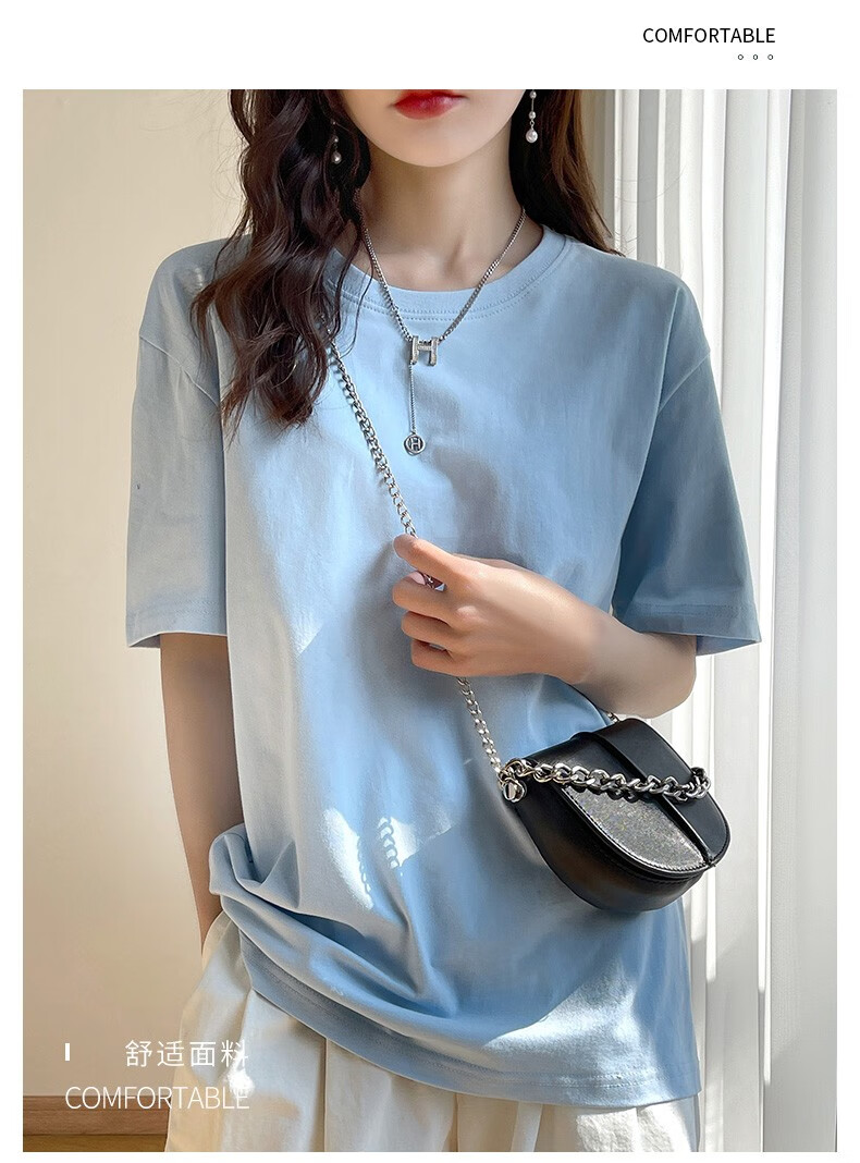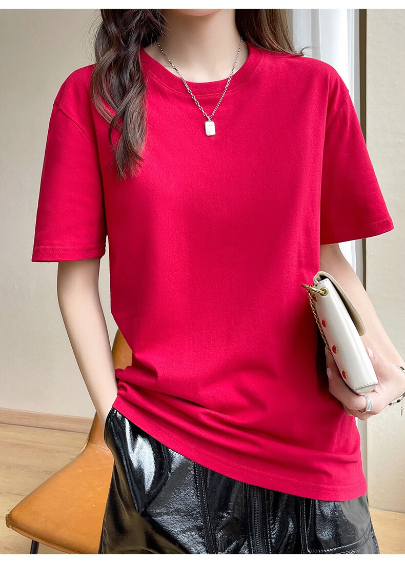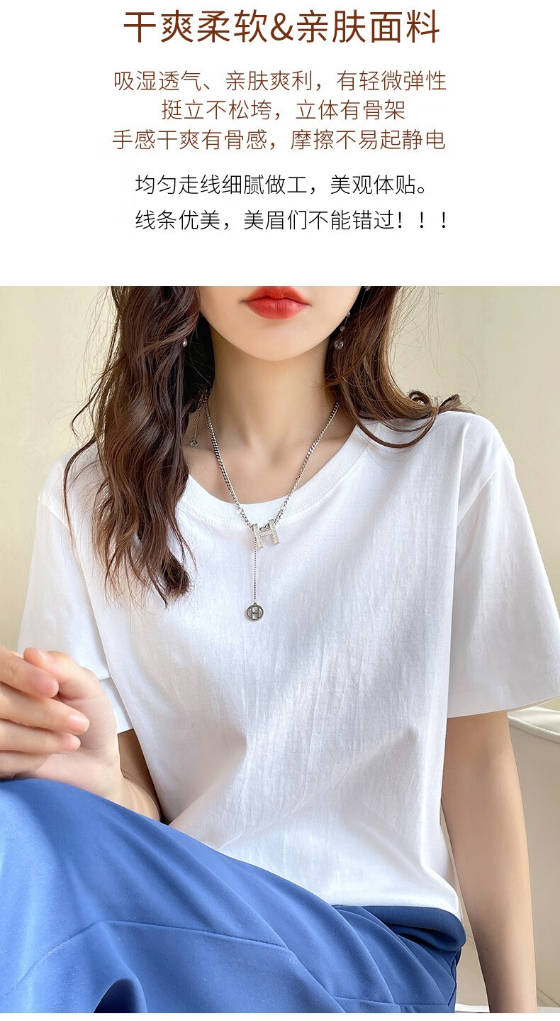燠阳彩色精梳棉纯棉短袖t恤男女同款时尚宽松显瘦女装舒适情侣装衣服 米杏色 L 【110-125斤】