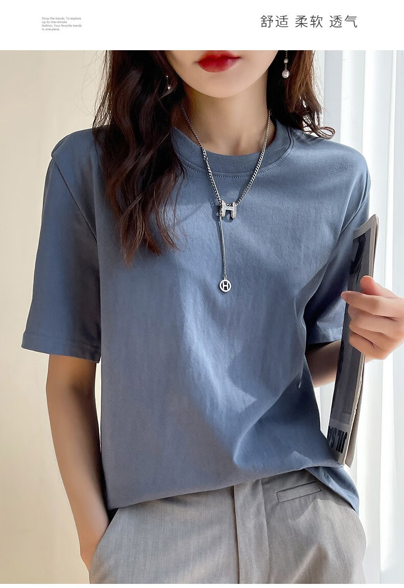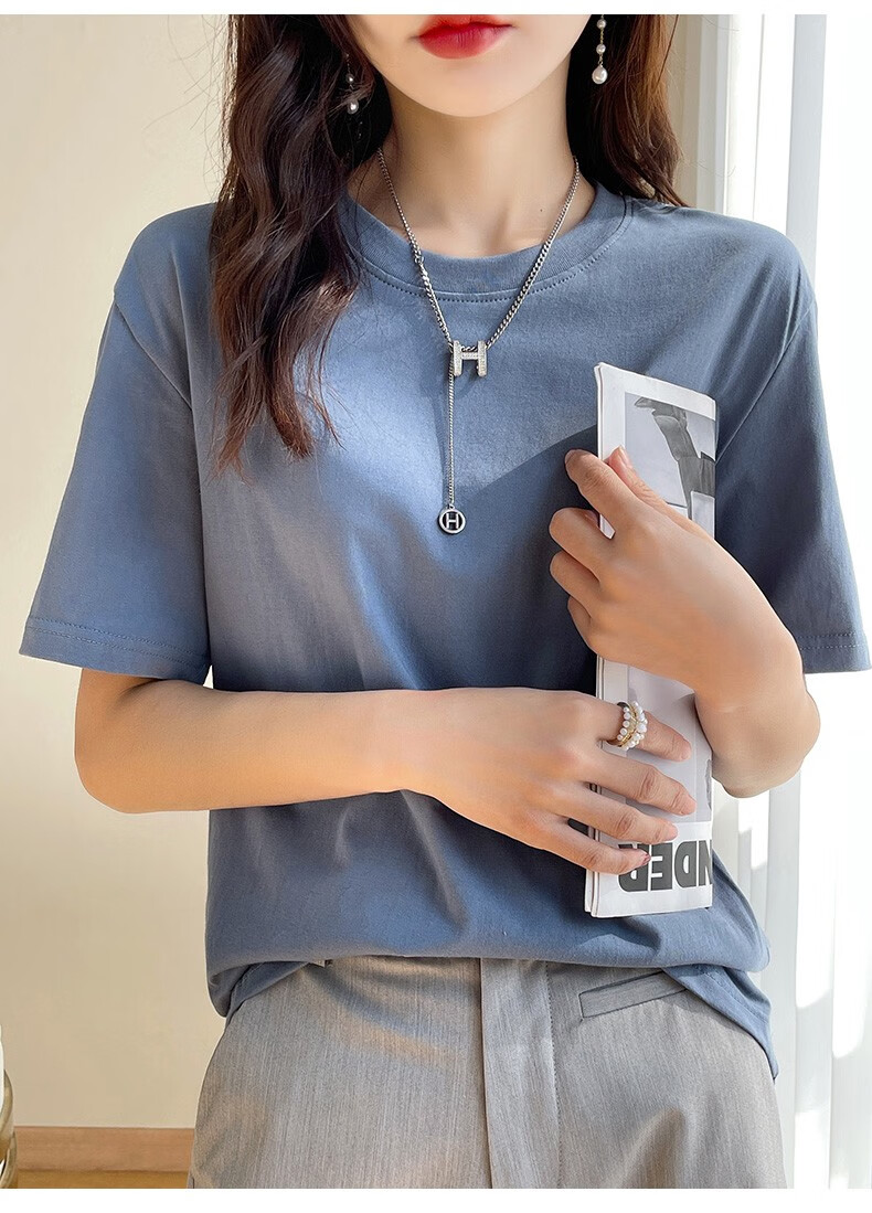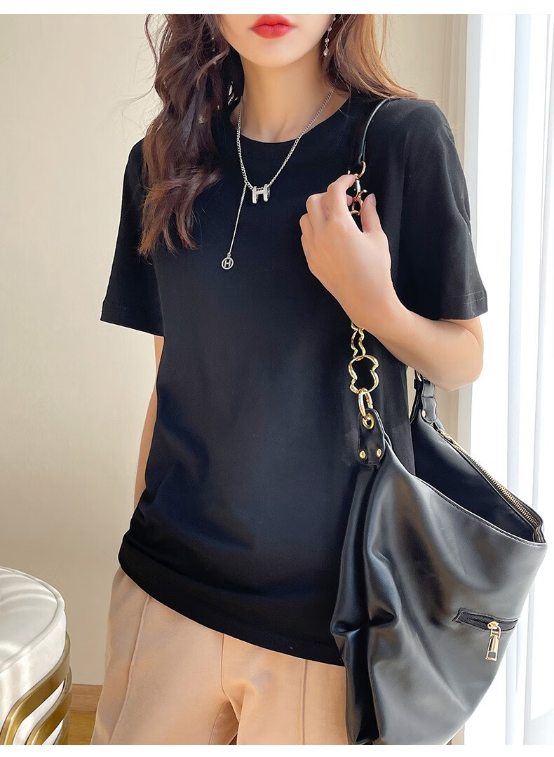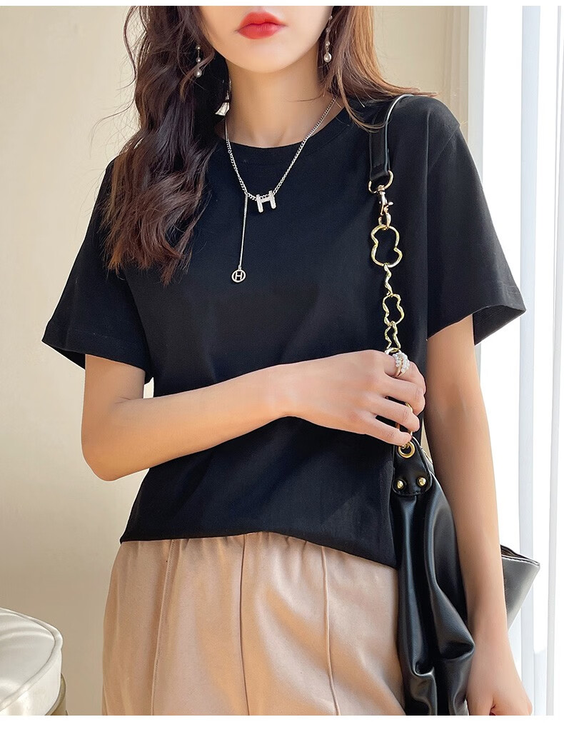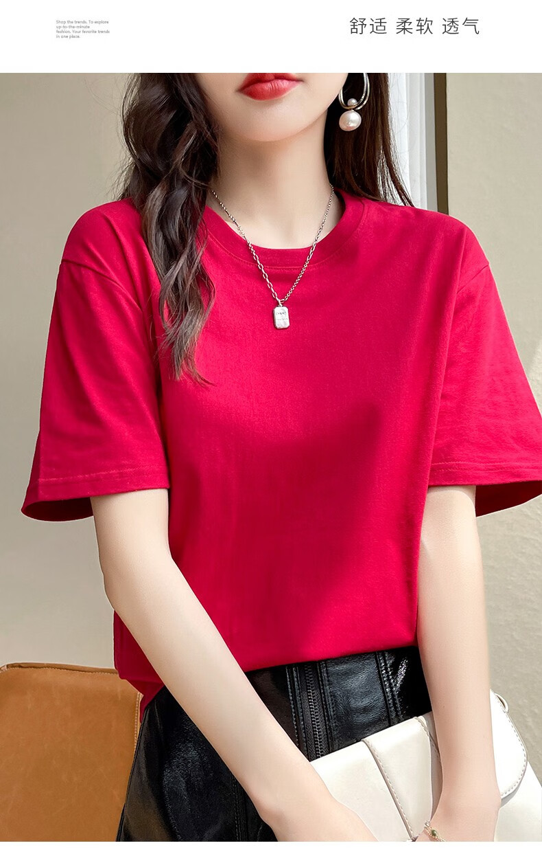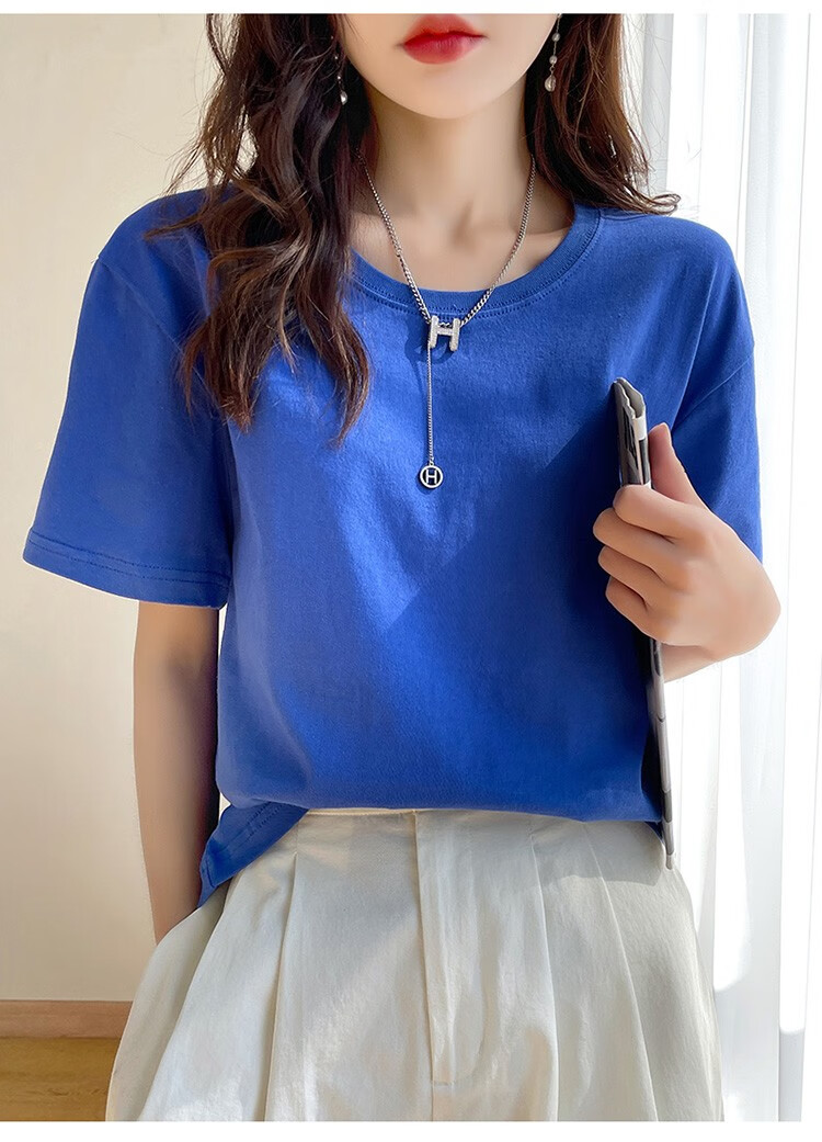 燠阳彩色精梳棉纯棉短袖t恤男女同款时尚宽松显瘦女装舒适情侣装衣服 米杏色 L 【110-125斤】