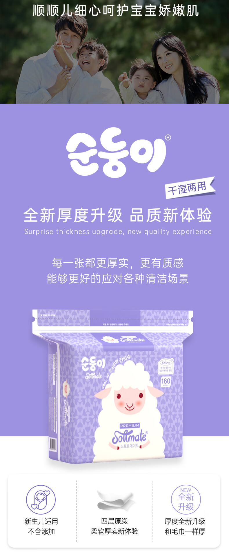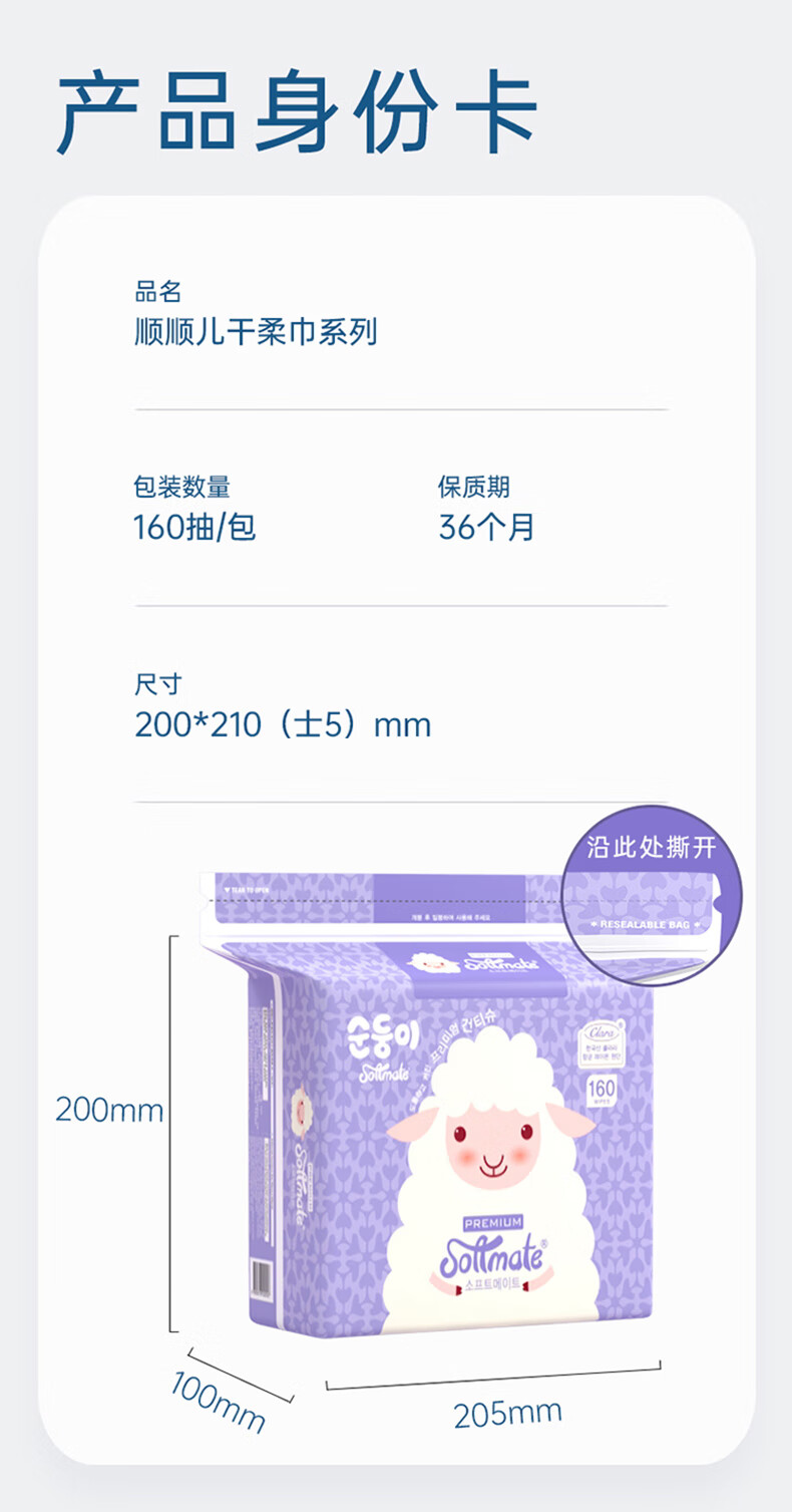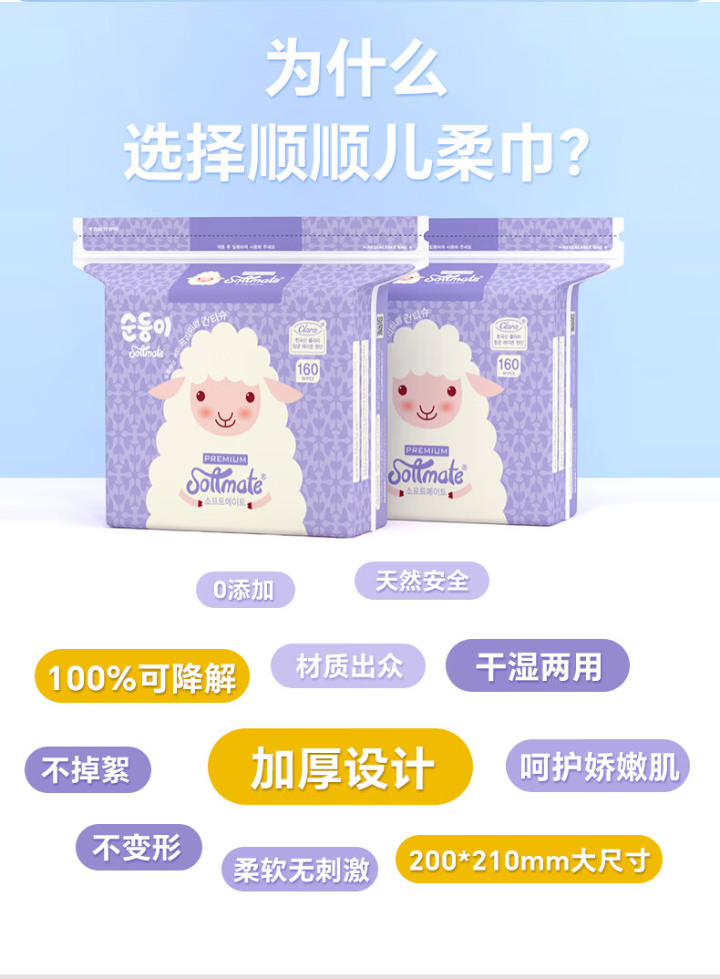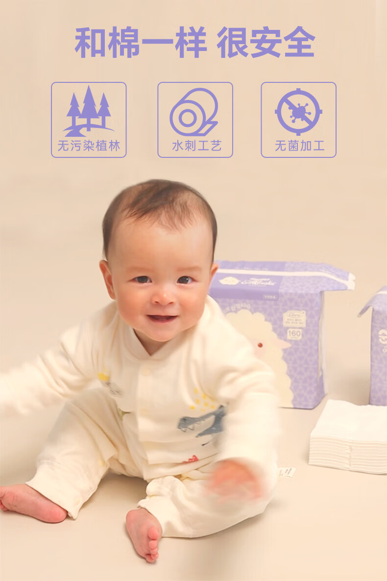 顺顺儿婴儿棉柔巾160片居家装干湿两用加厚擦脸巾宝宝柔巾美容洁面巾 160抽x4包