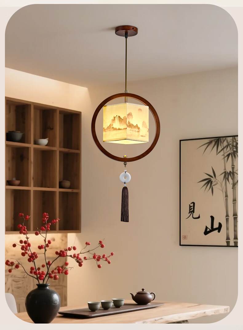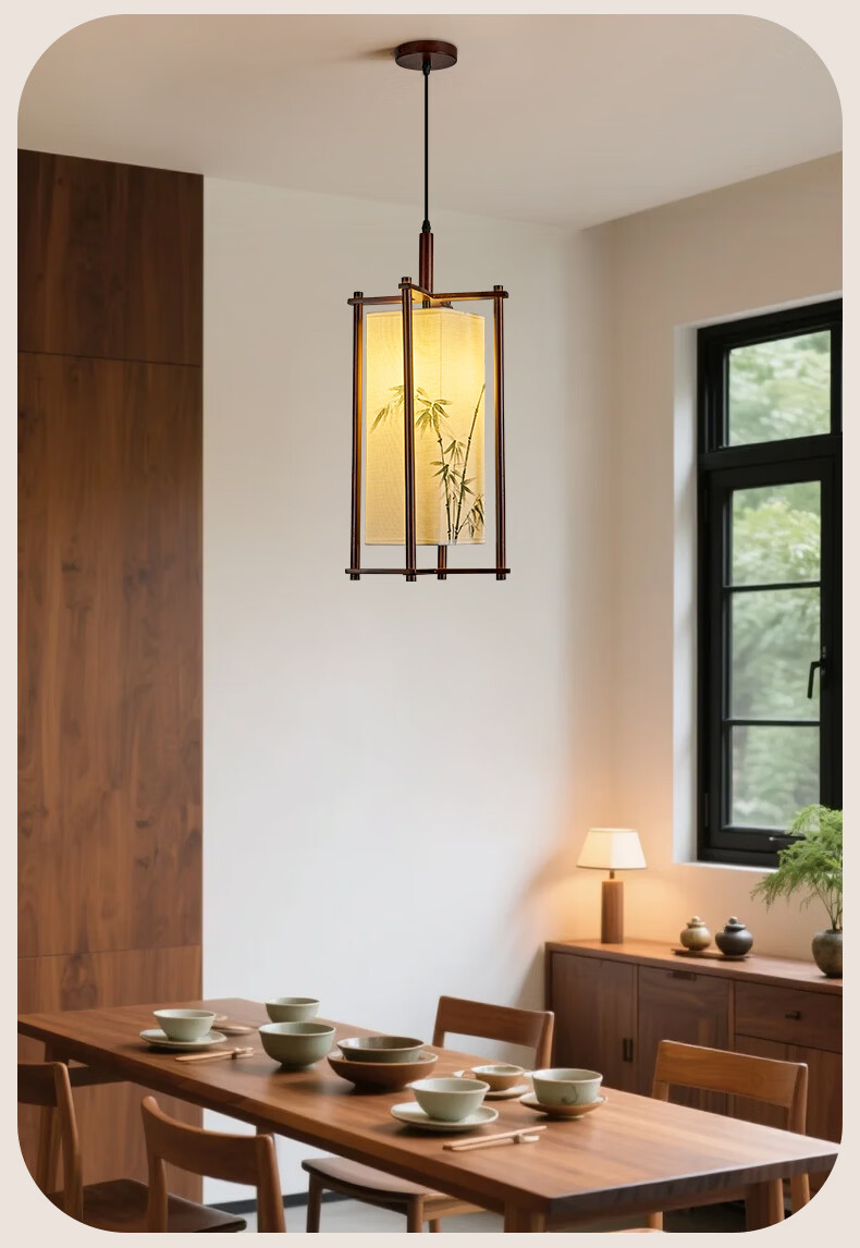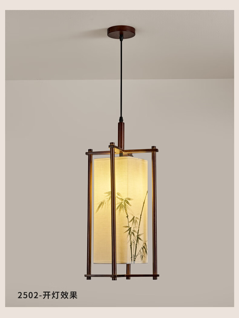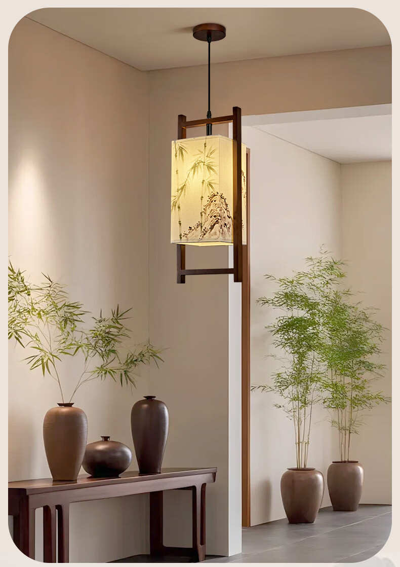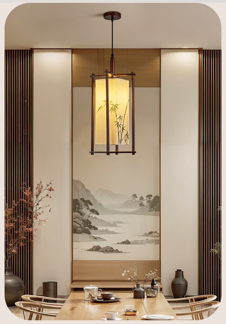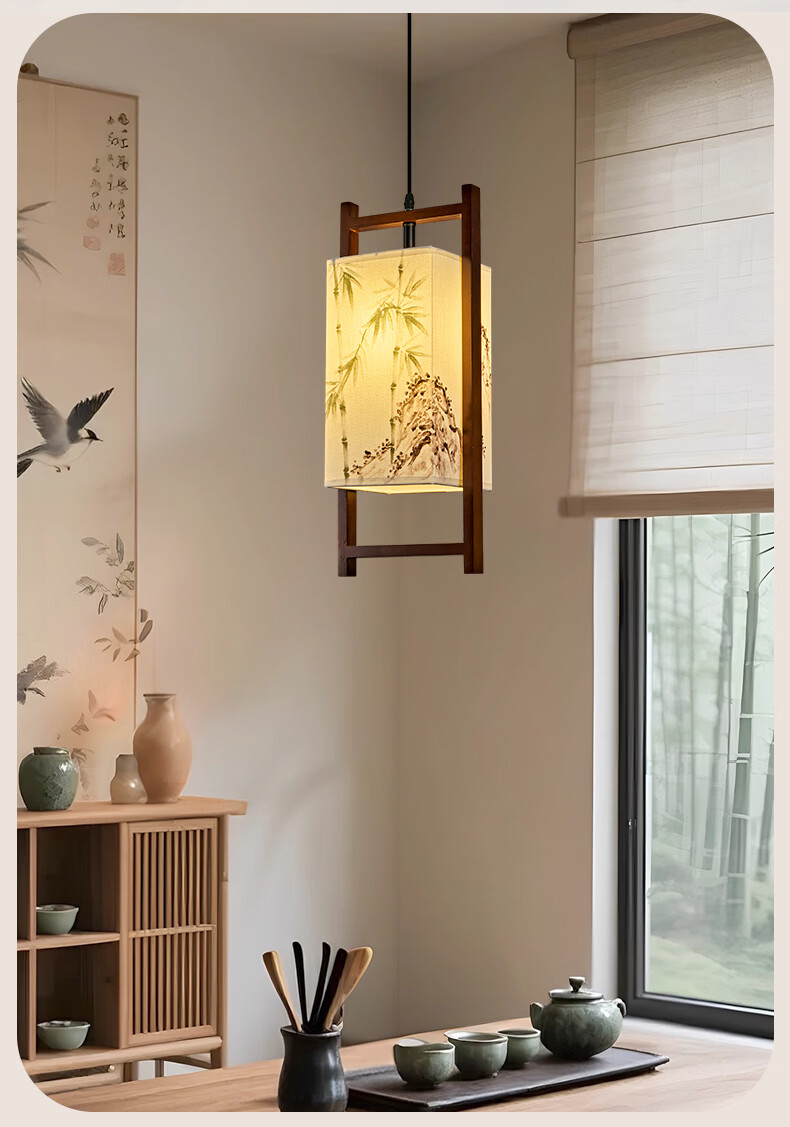 中式宋代美学小吊灯复古实木茶室书房餐厅过道走廊玄关床头吊灯 03-竹送映画【送全光谱护眼光源】 三色变光