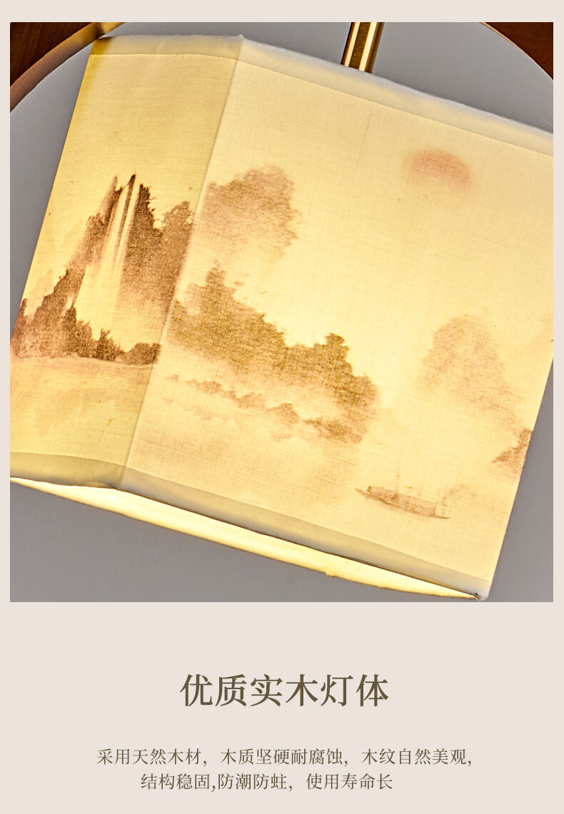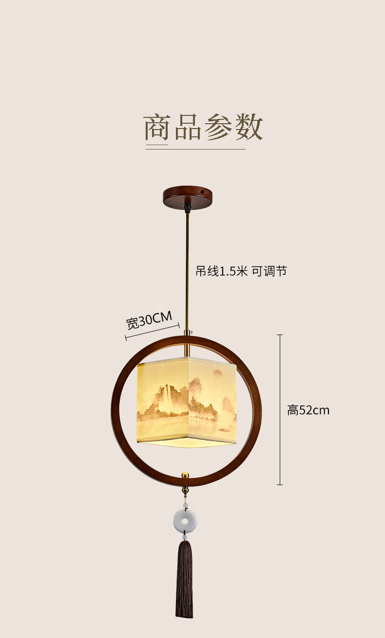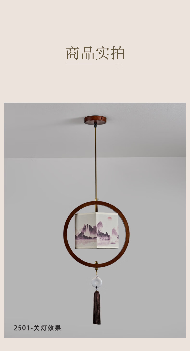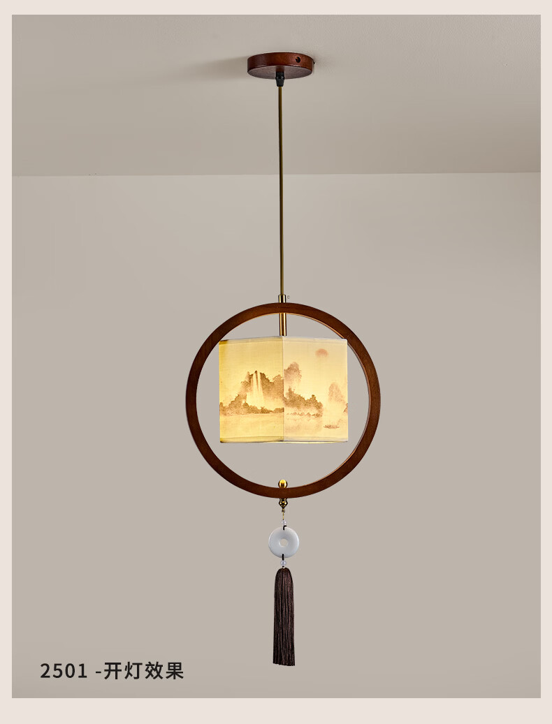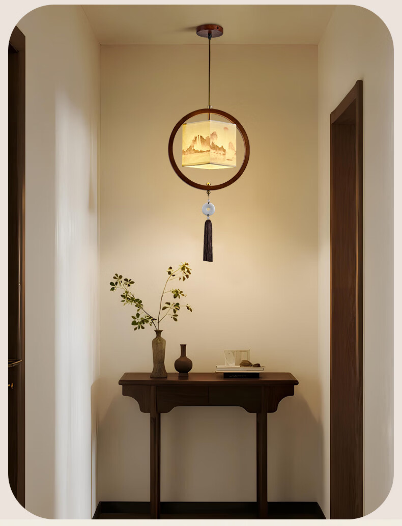 中式宋代美学小吊灯复古实木茶室书房餐厅过道走廊玄关床头吊灯 03-竹送映画【送全光谱护眼光源】 三色变光