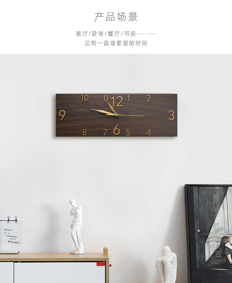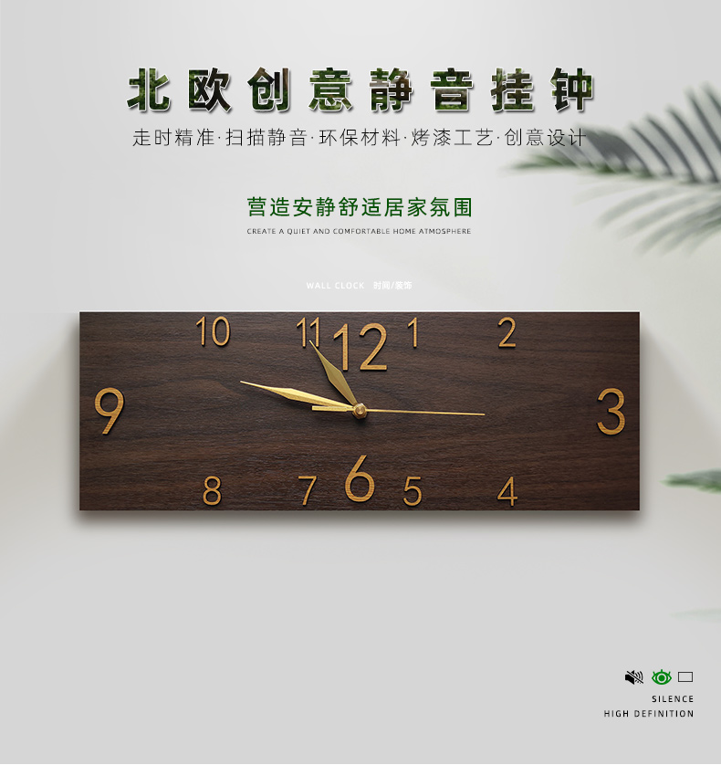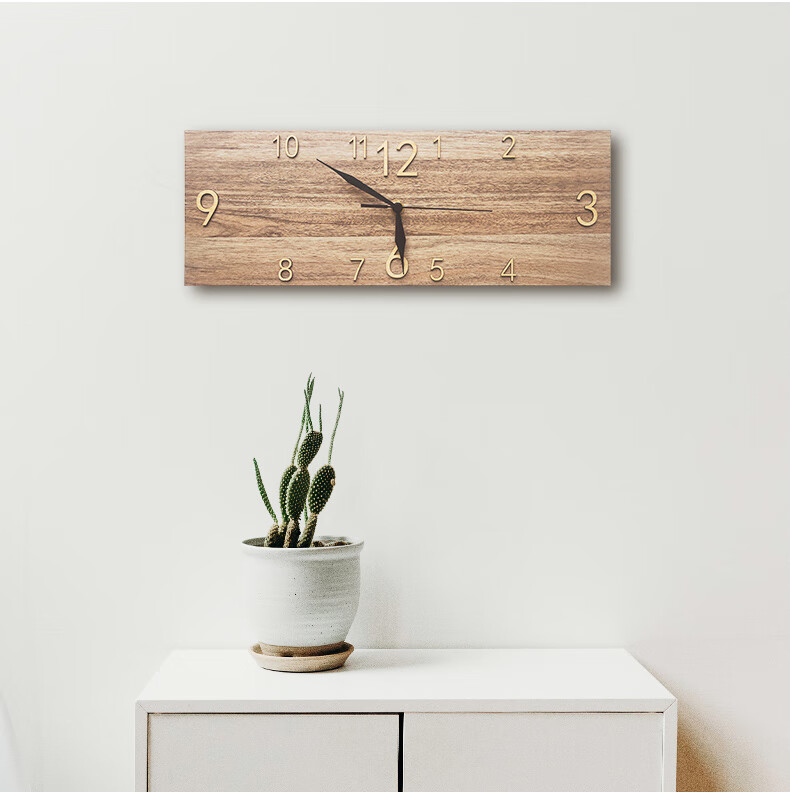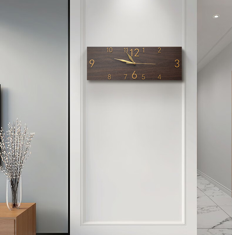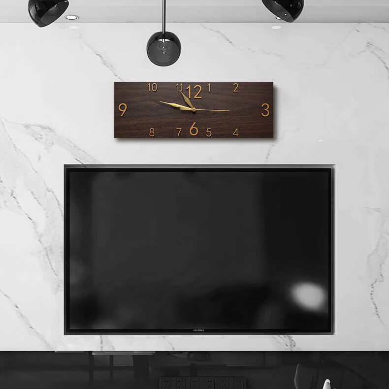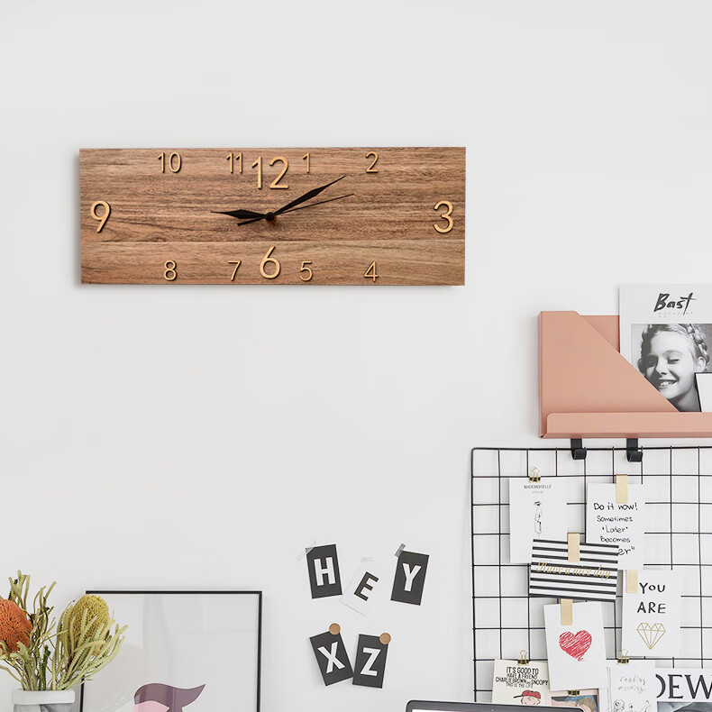 KOLYMAX会议室挂墙表胡桃木纹办公室长方形挂钟客厅石英钟家用电表箱时钟 浅色 大号 75*25CM 长方形