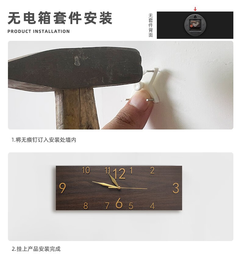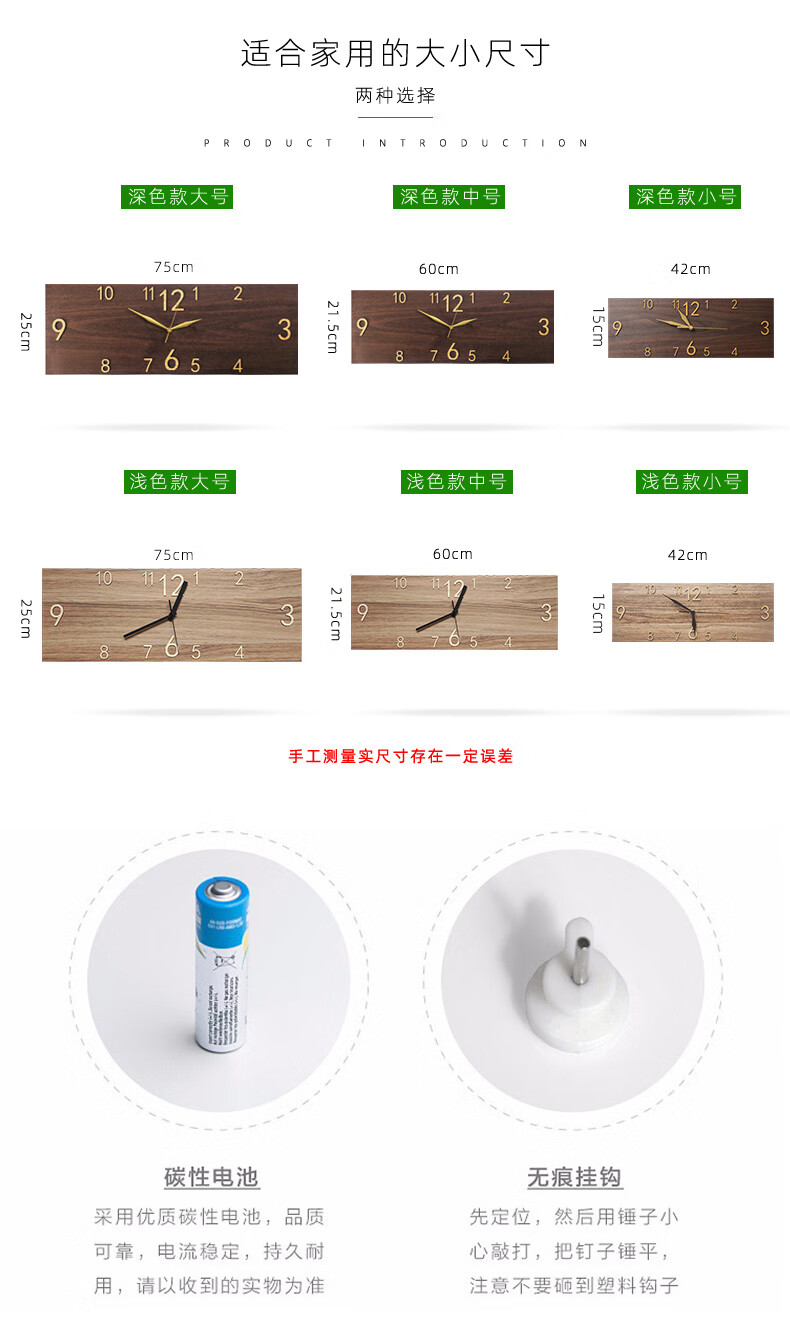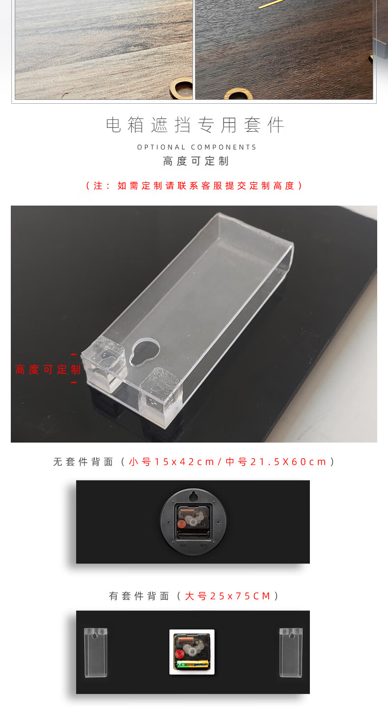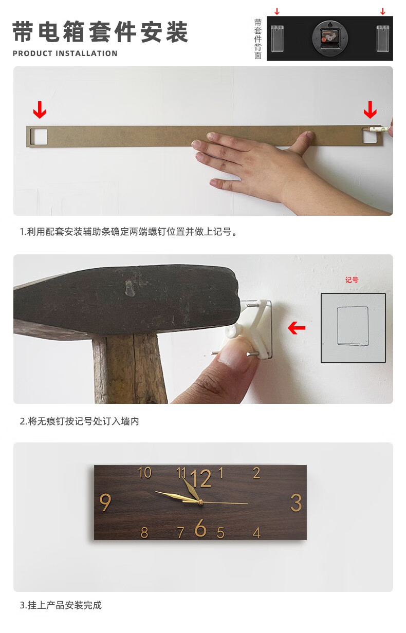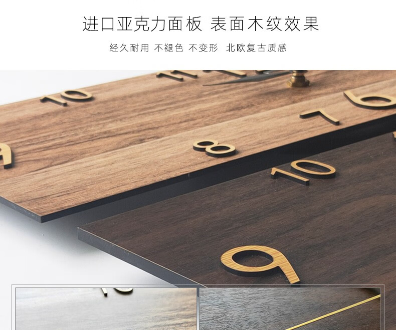 KOLYMAX会议室挂墙表胡桃木纹办公室长方形挂钟客厅石英钟家用电表箱时钟 浅色 大号 75*25CM 长方形