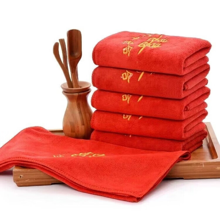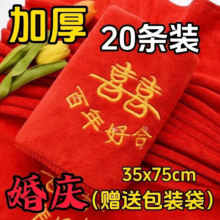 BEYZK婚庆结婚毛巾批发加厚非纯棉红色礼盒百年好合喜双条回礼喜事毛巾 35*75cm加厚红毛巾【赠送包装袋】 素红-加厚百年好合喜毛巾【50条装】