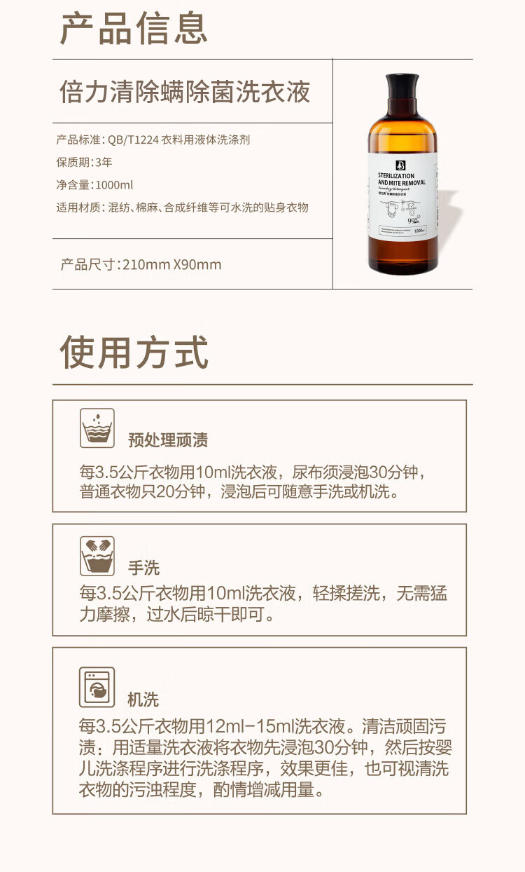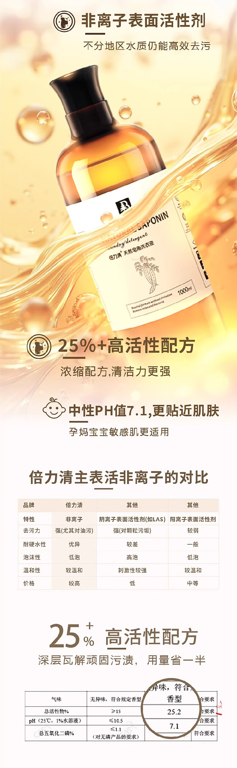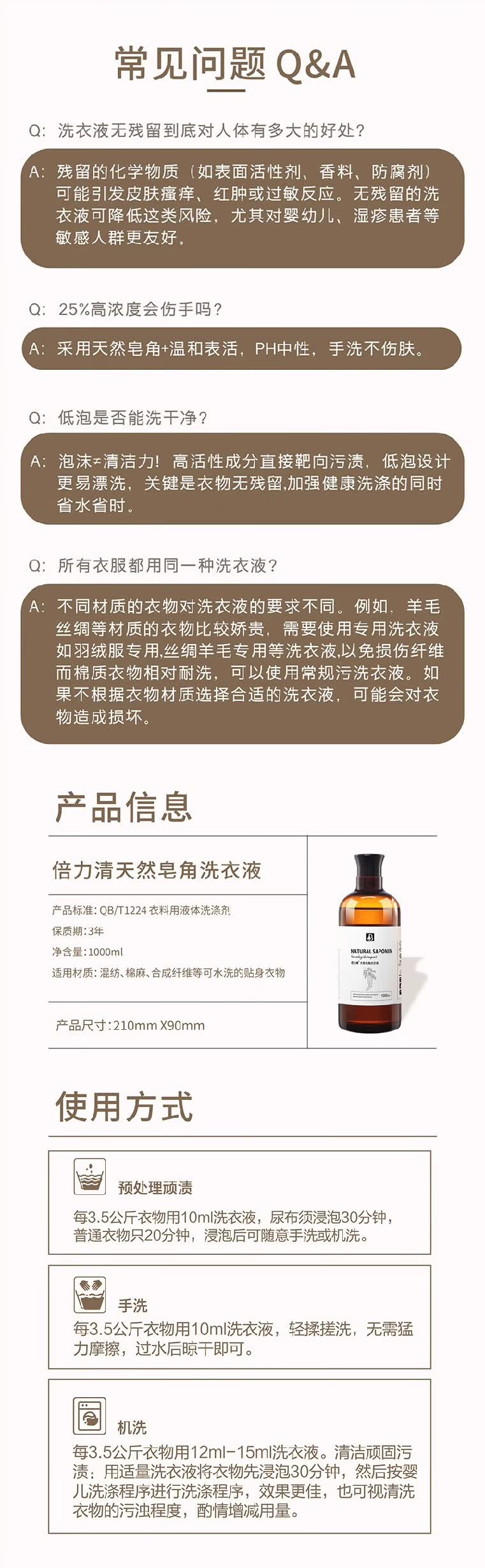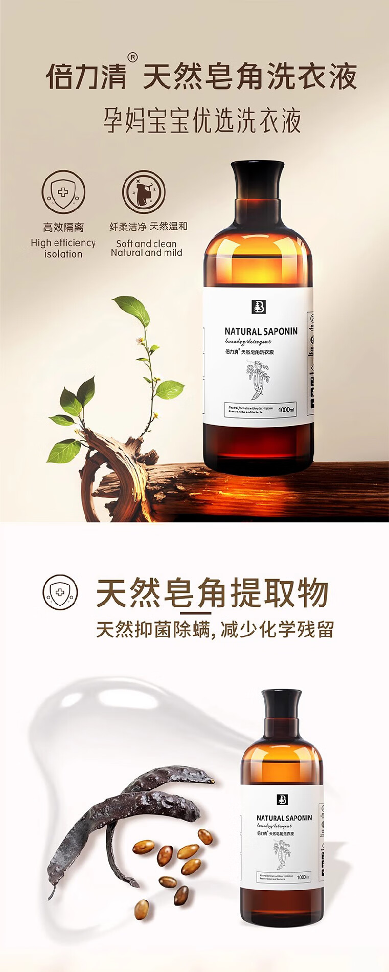 倍力清浓缩高表活洗衣液家用顽渍净除菌除螨持久留香中性婴童孕妇敏感肌 【除螨除菌1瓶+天然皂角2瓶】
