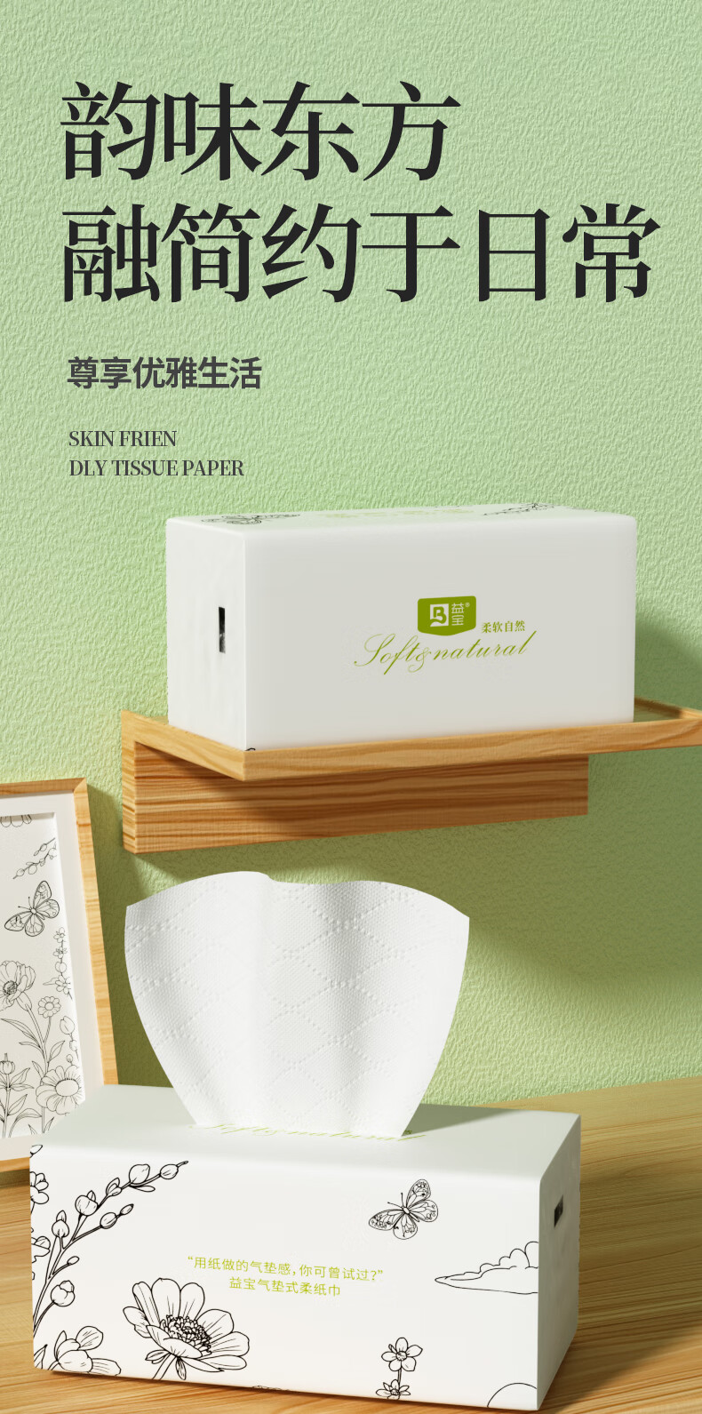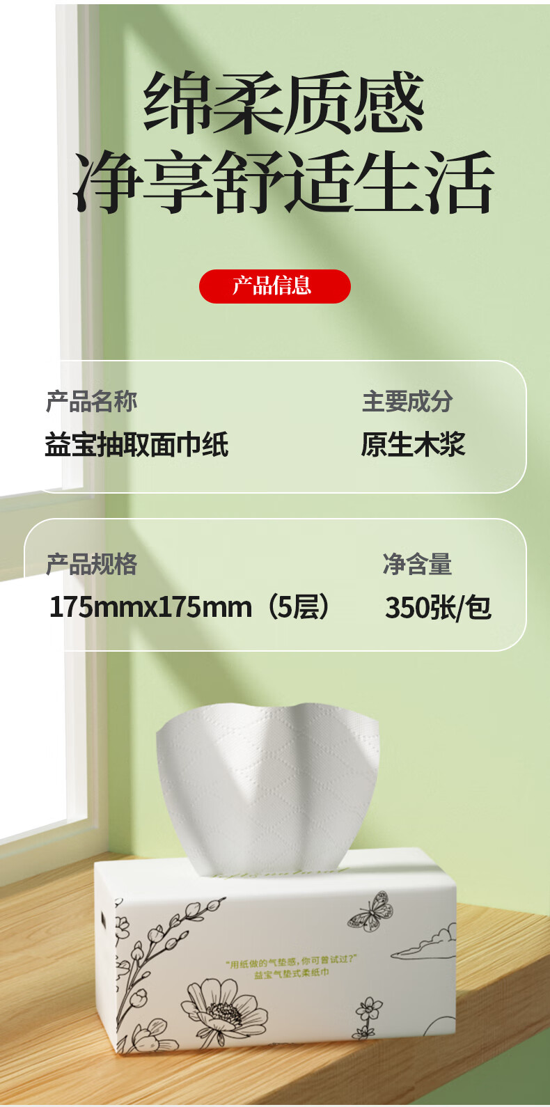 YIBAO益宝大包大尺寸纸巾整箱常规原生木浆擦手纸纸品纸巾餐桌纸卷纸 90%用户选它【 原生木浆】高回购 5层 350张*24包 整箱装