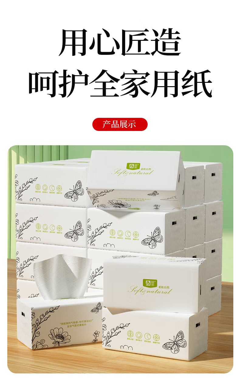 天微【厂家直发】加量家用面巾纸原木便携抽取式纸巾抽纸卫生纸 4层32抽1包