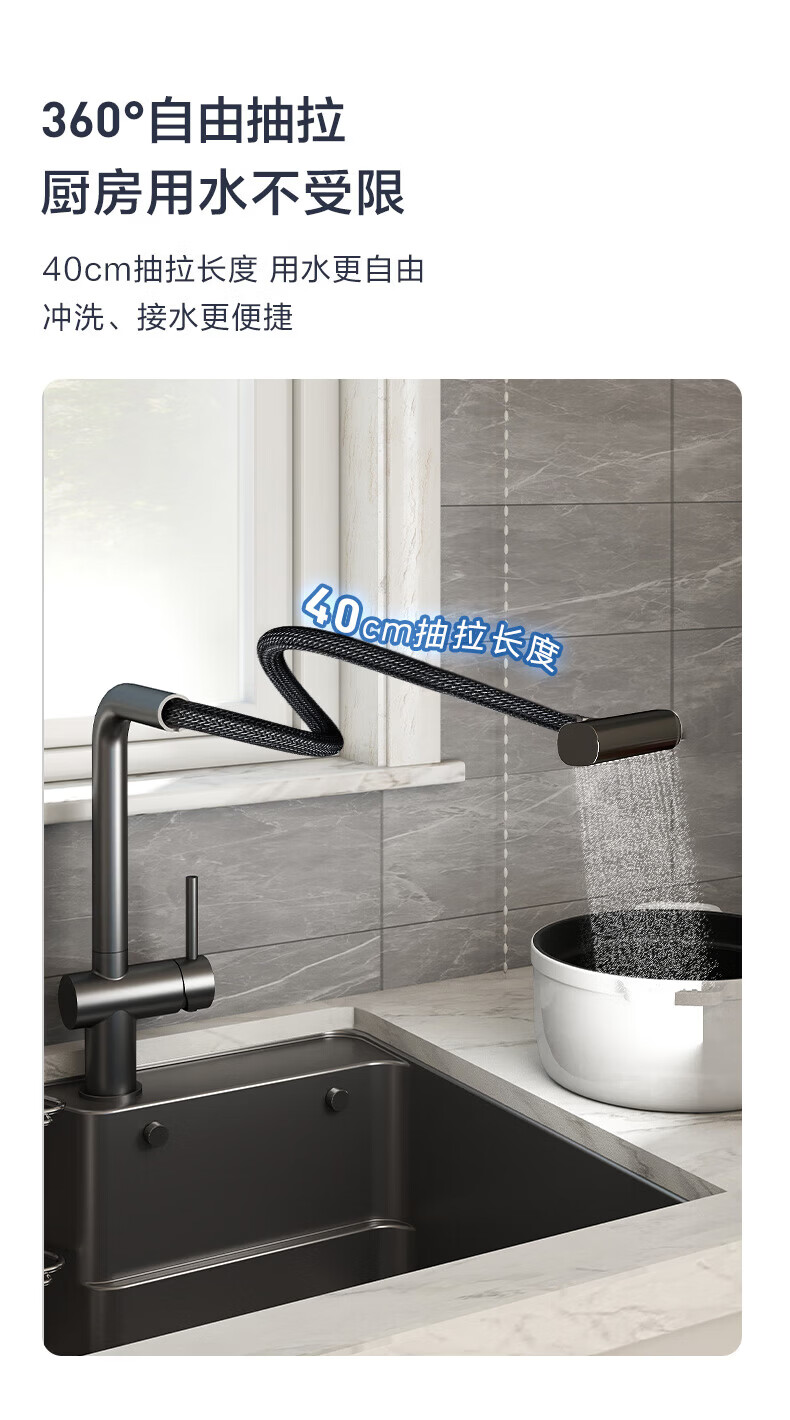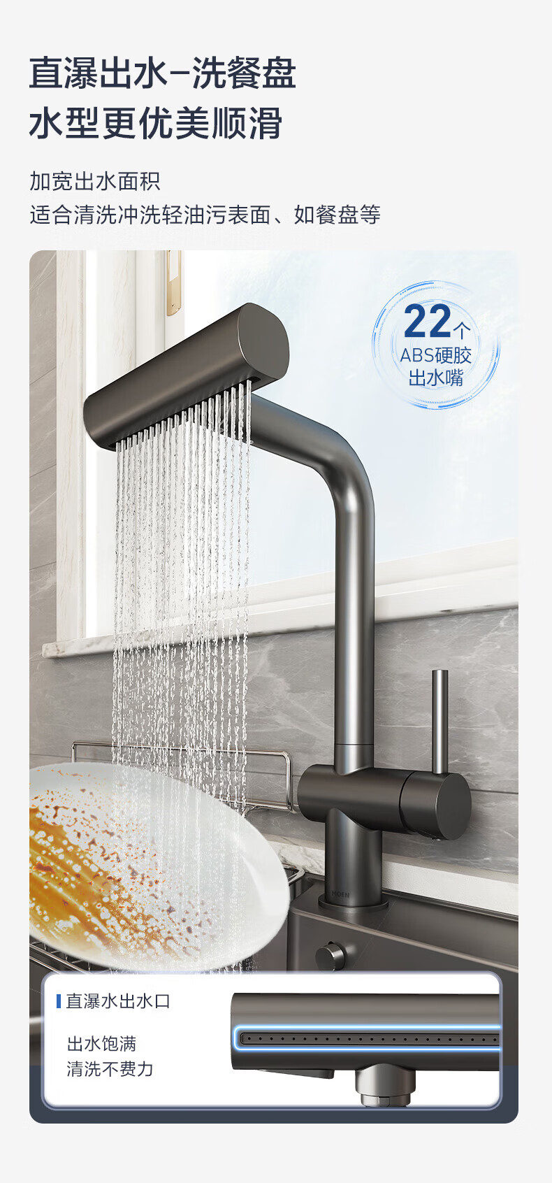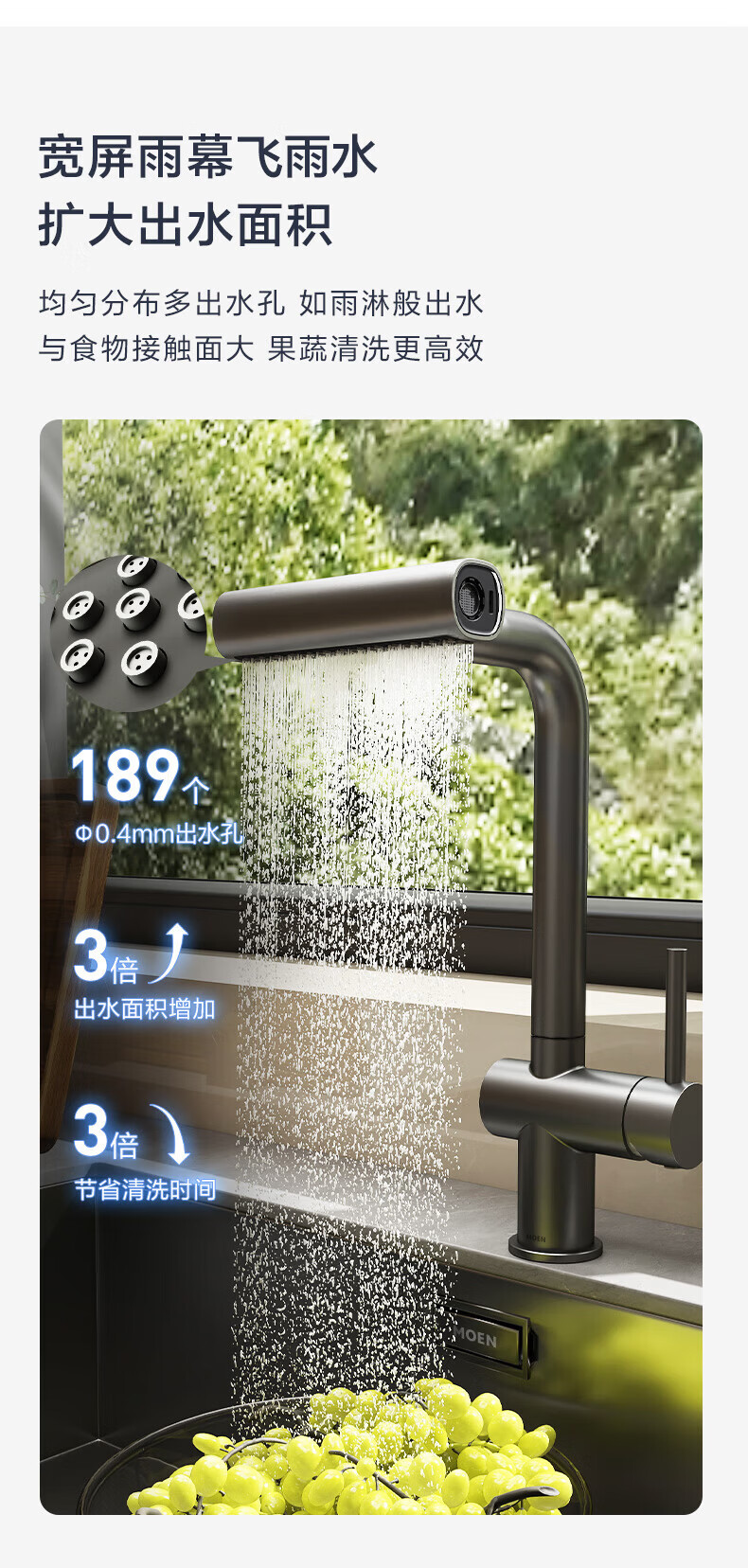 摩恩水龙头厨房冷热水龙头不锈钢抽拉式飞雨多功能水槽洗菜盆龙头 飞雨-不锈钢4出水抽拉龙头