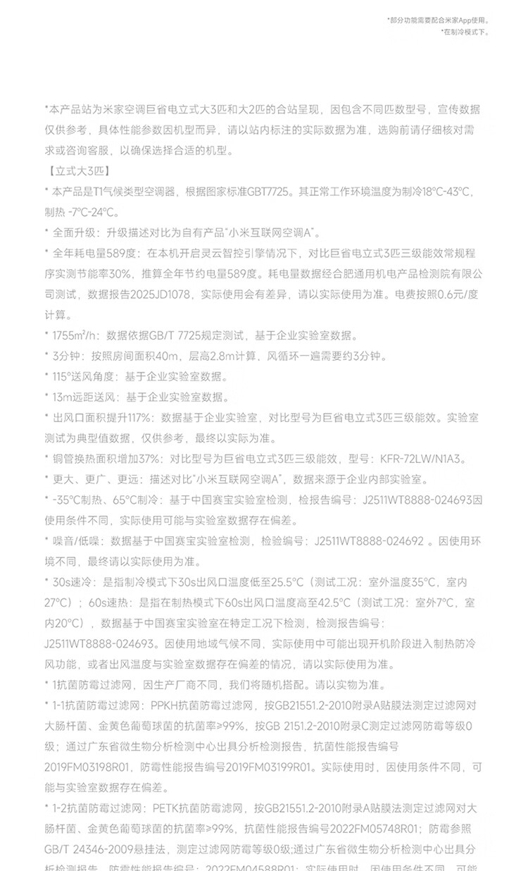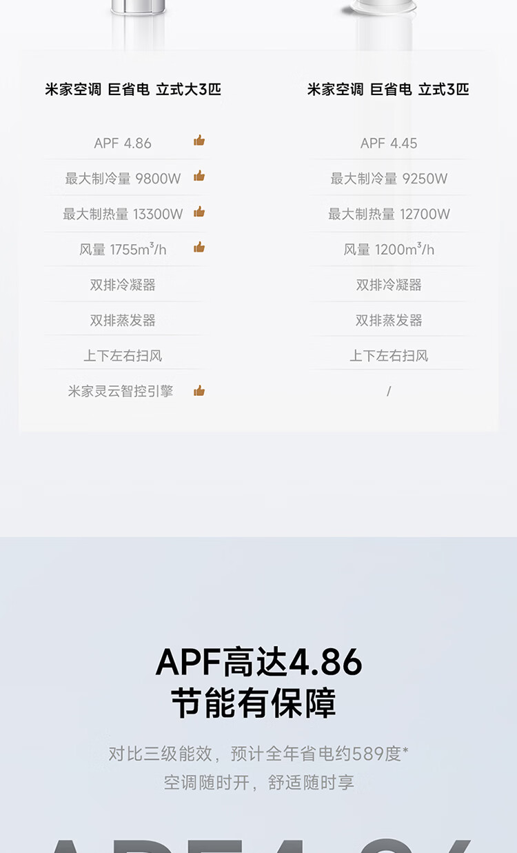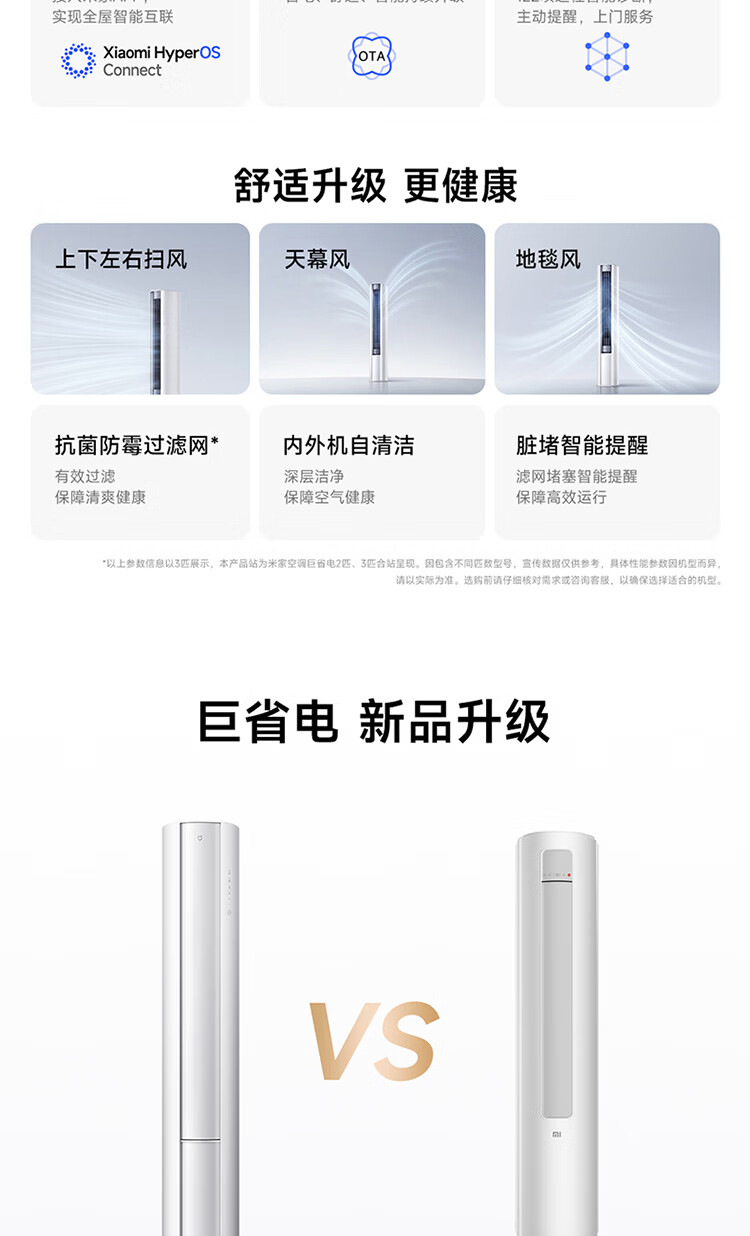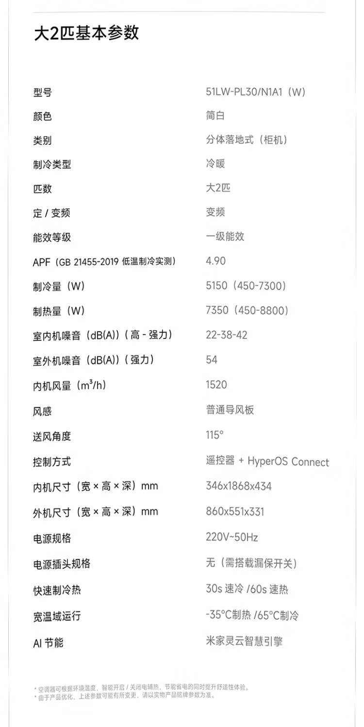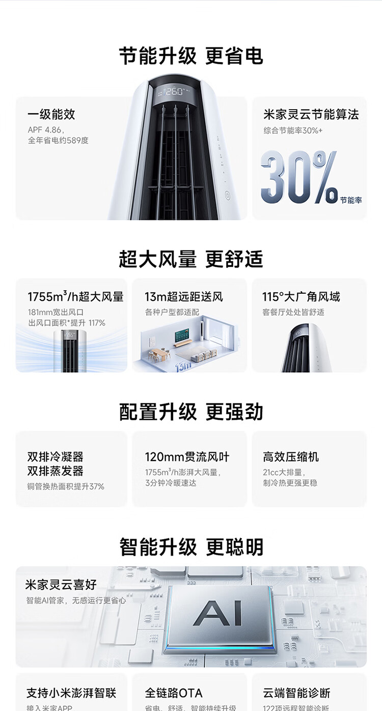 小米(MI)米家空调 巨省电 立式3匹新一级能效72LW-PL30/N1A1(W) 巨省电 新一级能效 大3匹 巨省电 3匹