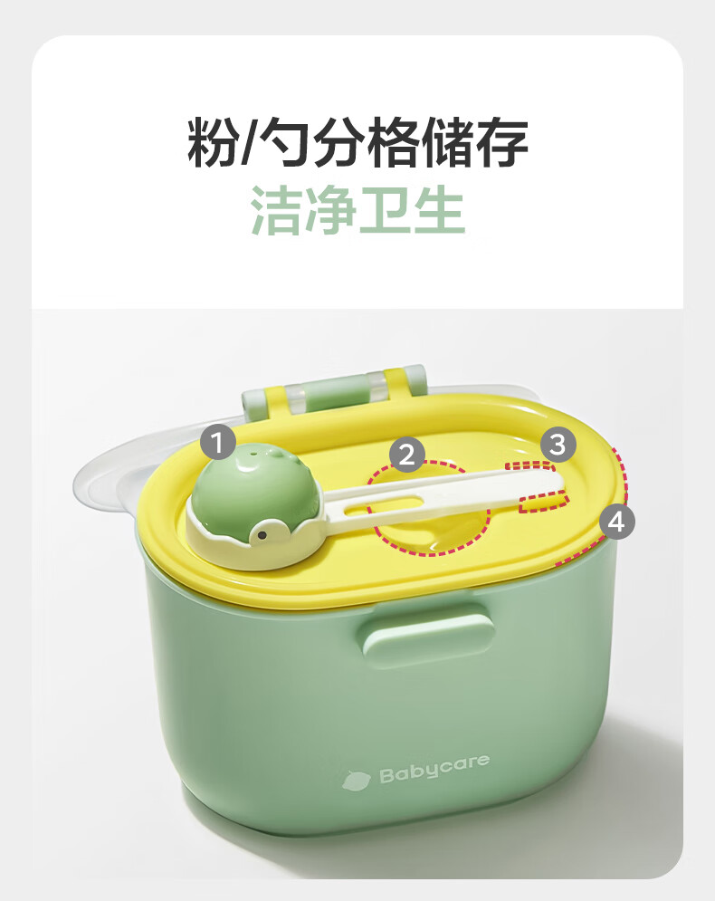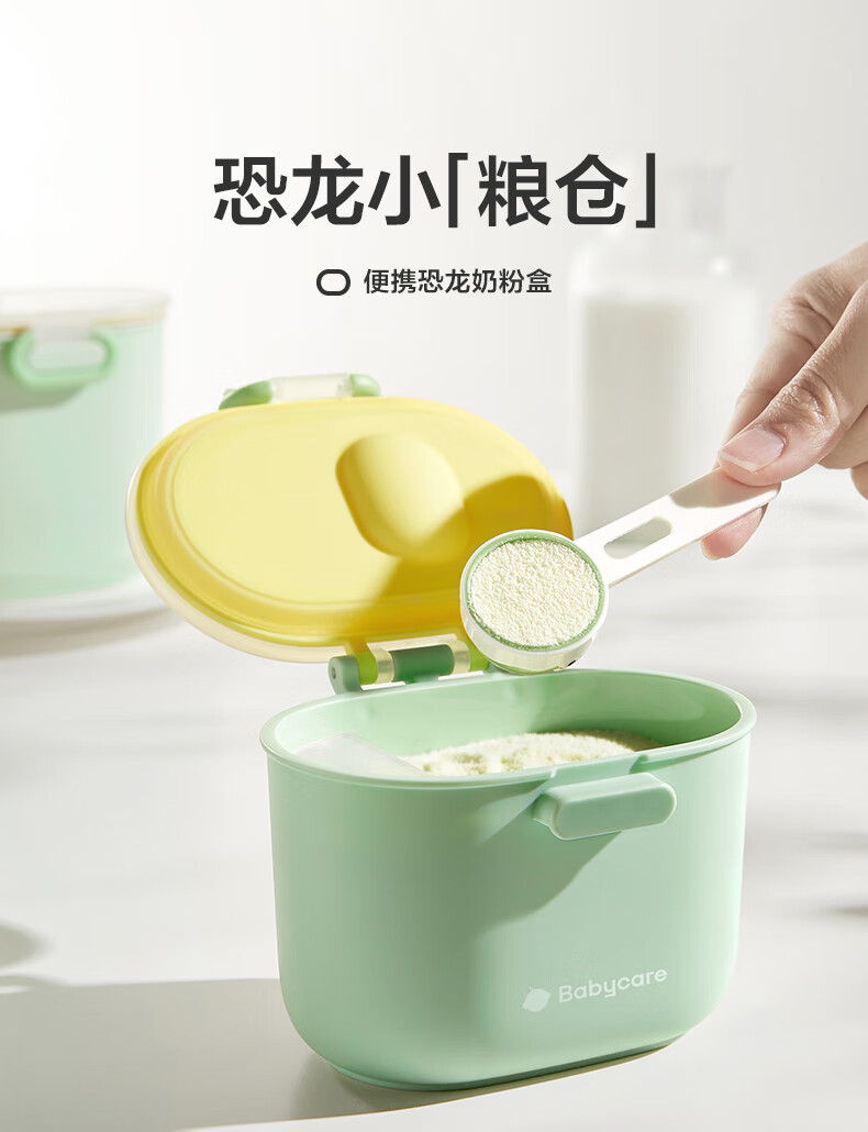 babycare婴儿奶粉盒宝宝便携奶粉辅食储存盒大容量恐龙奶粉盒 奶油黄380ml
