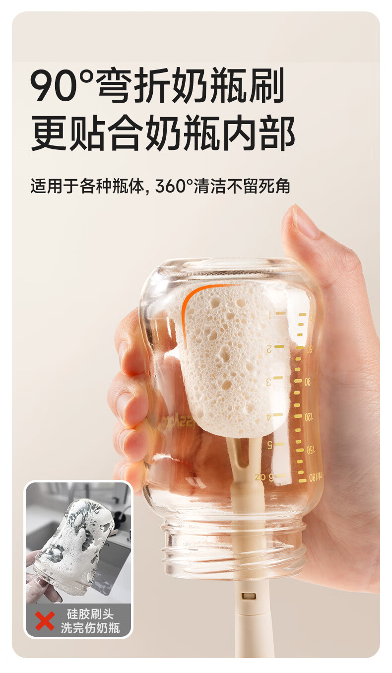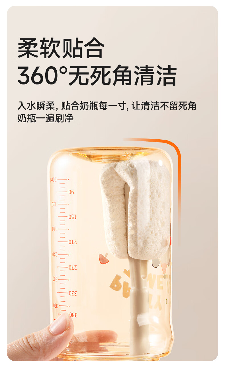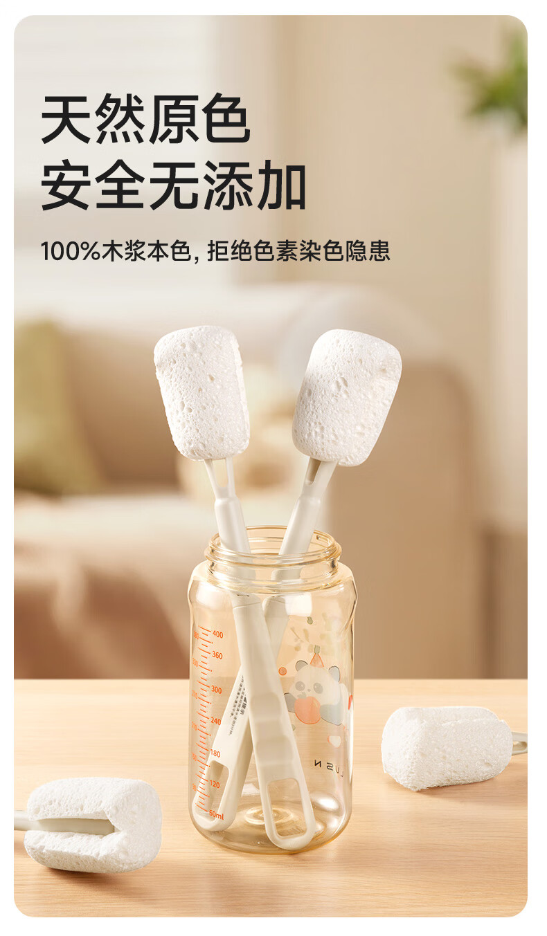 如山木浆棉清洁刷新生婴儿专用清洗奶瓶刷杯刷神器套装替换头刷子