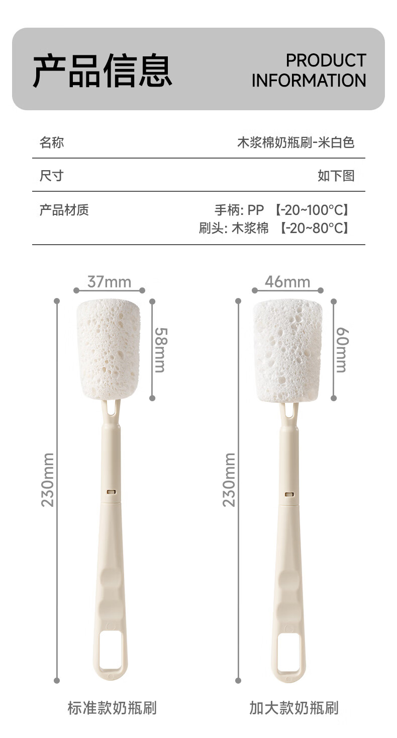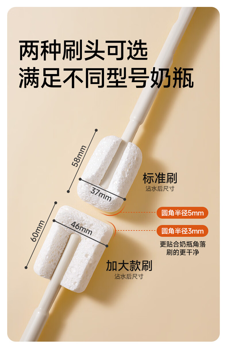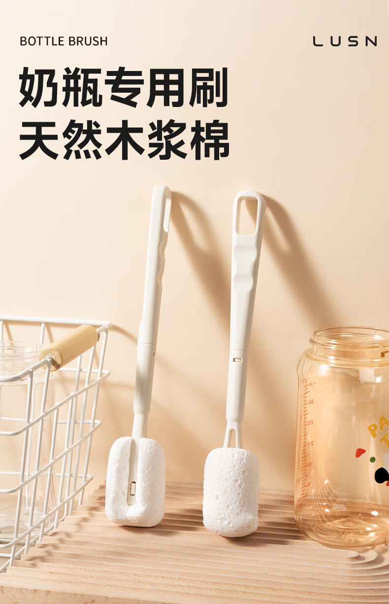 如山木浆棉清洁刷新生婴儿专用清洗奶瓶刷杯刷神器套装替换头刷子