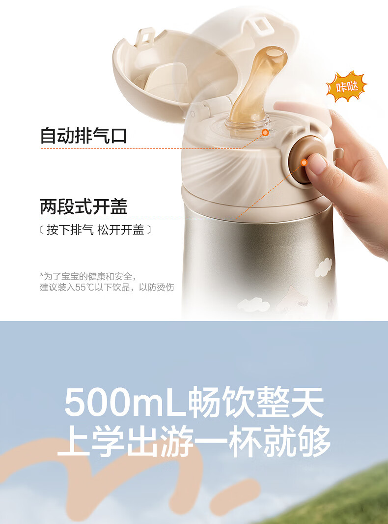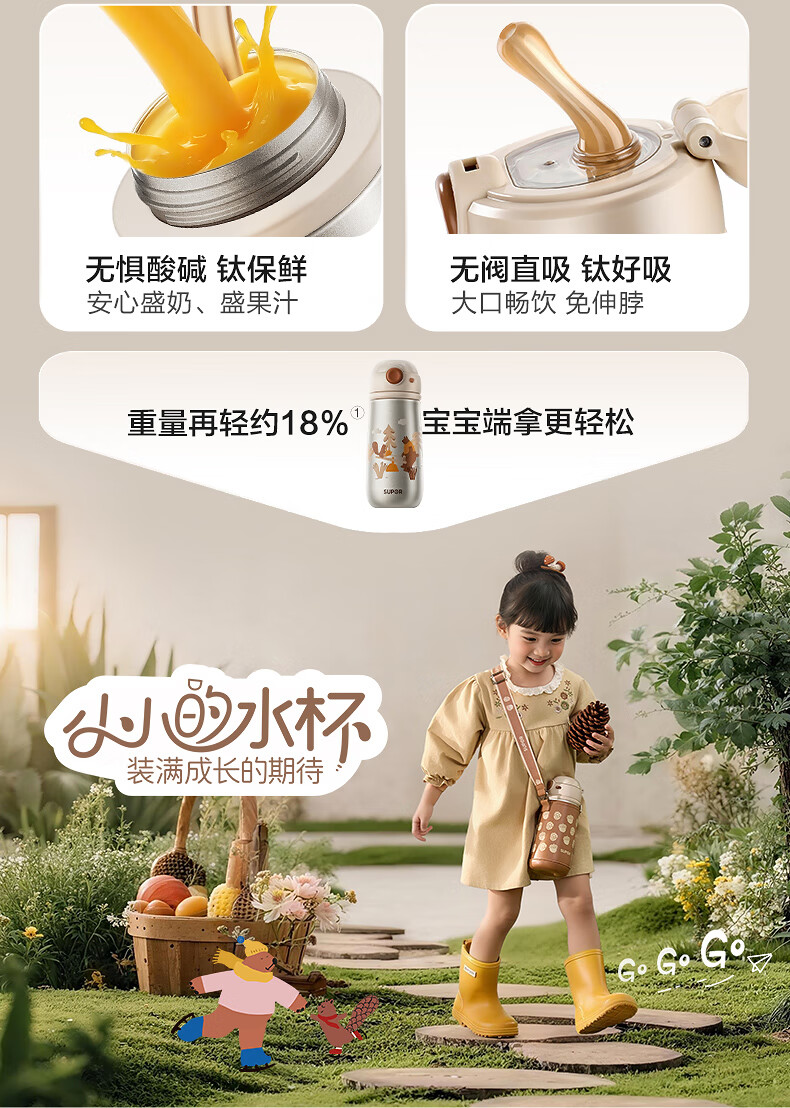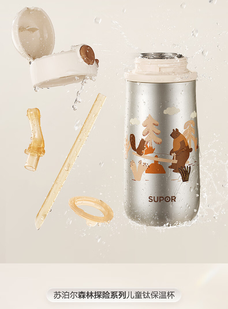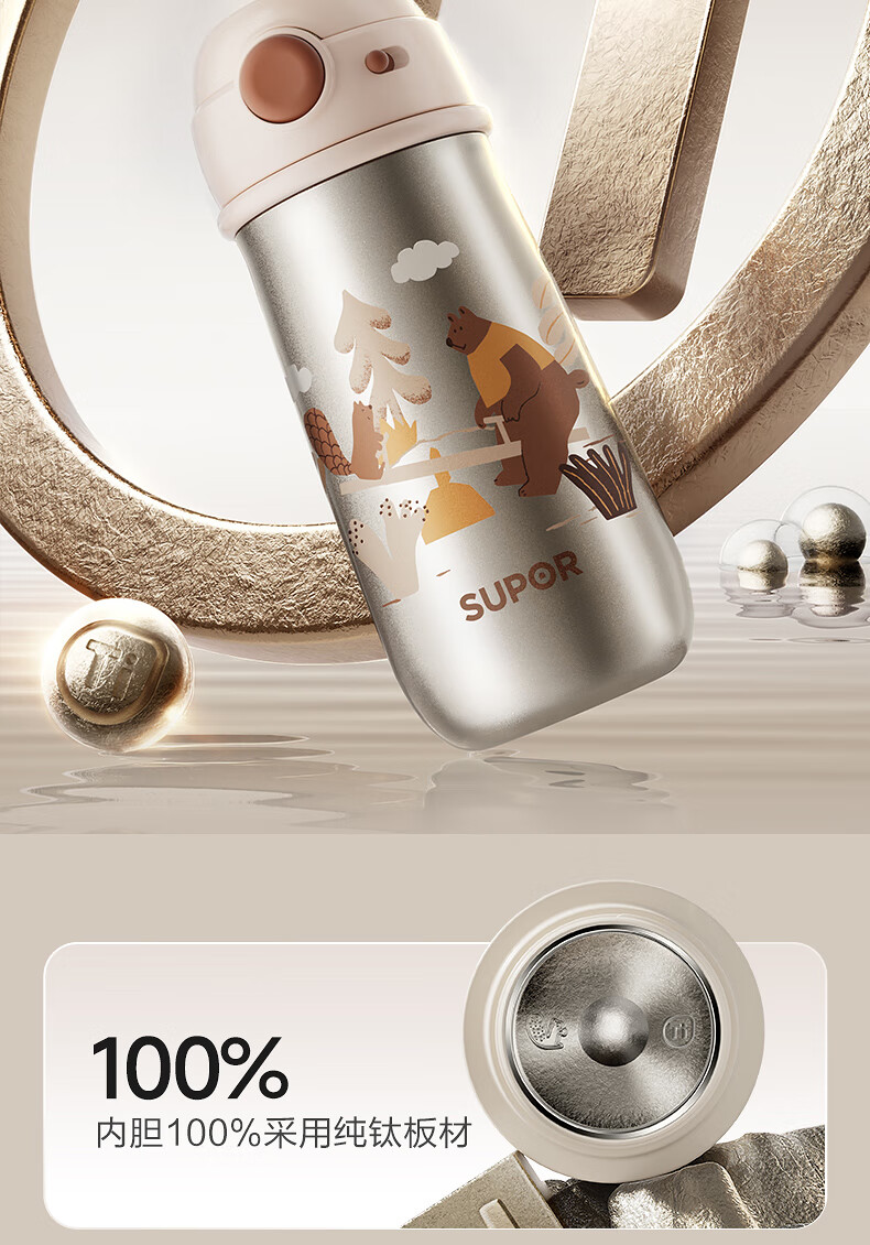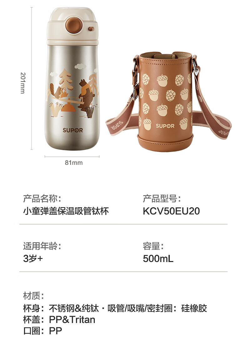 苏泊尔(SUPOR)儿童保温杯吸管杯 幼儿园上学水杯 宝宝弹盖1-3岁钛学饮杯500ml