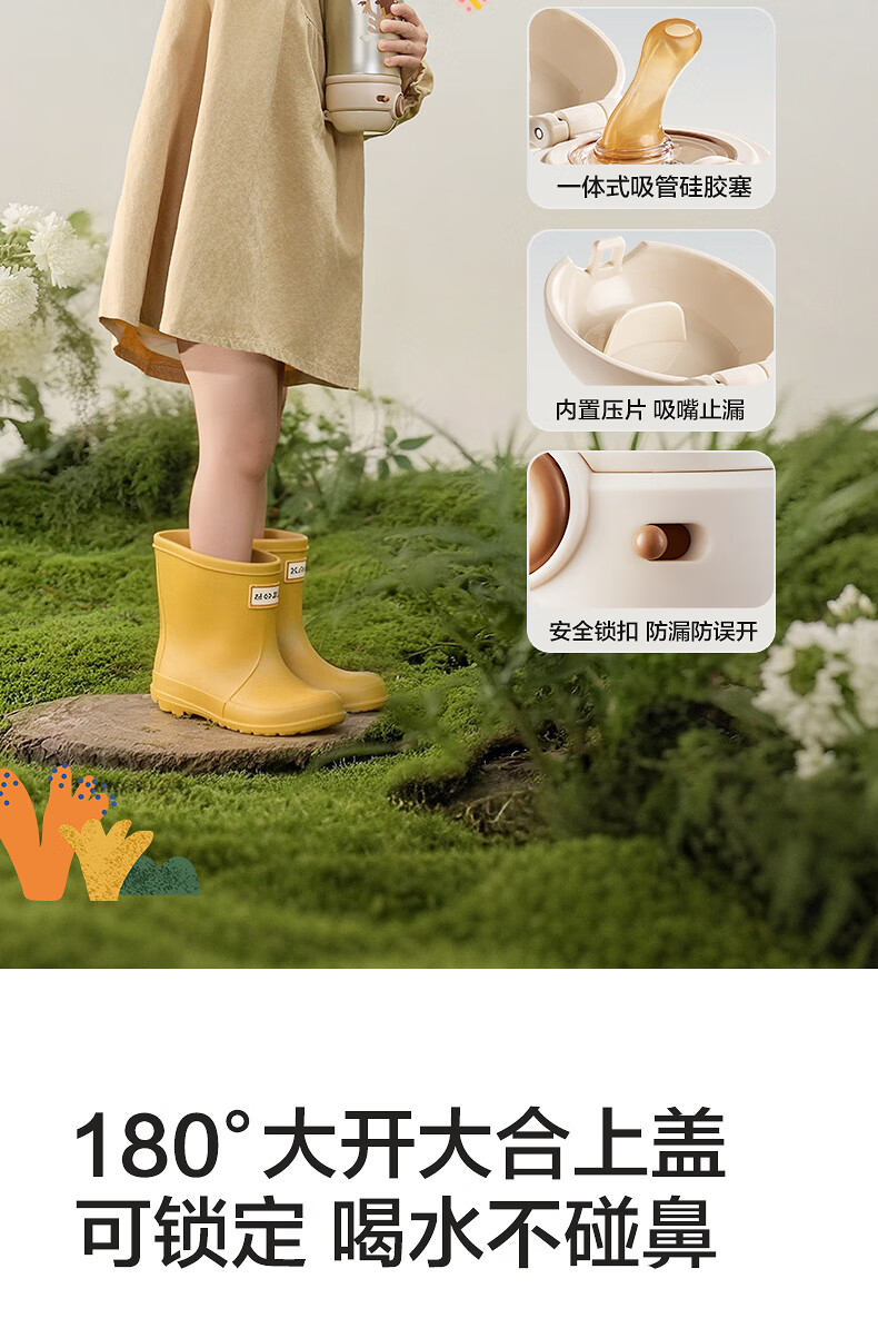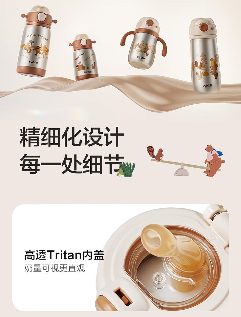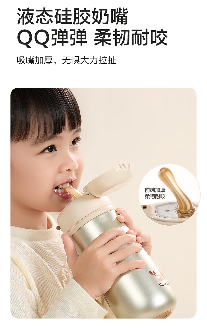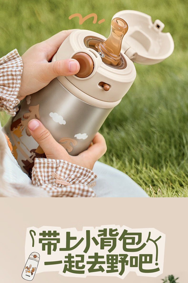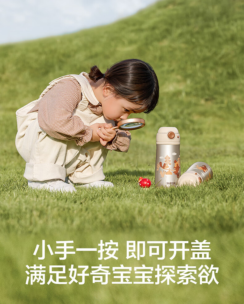 苏泊尔(SUPOR)儿童保温杯吸管杯 幼儿园上学水杯 宝宝弹盖1-3岁钛学饮杯500ml