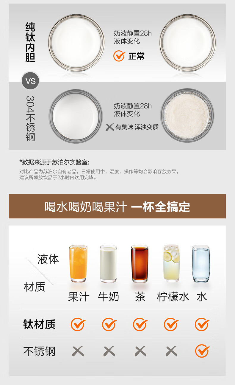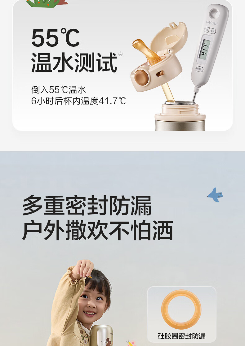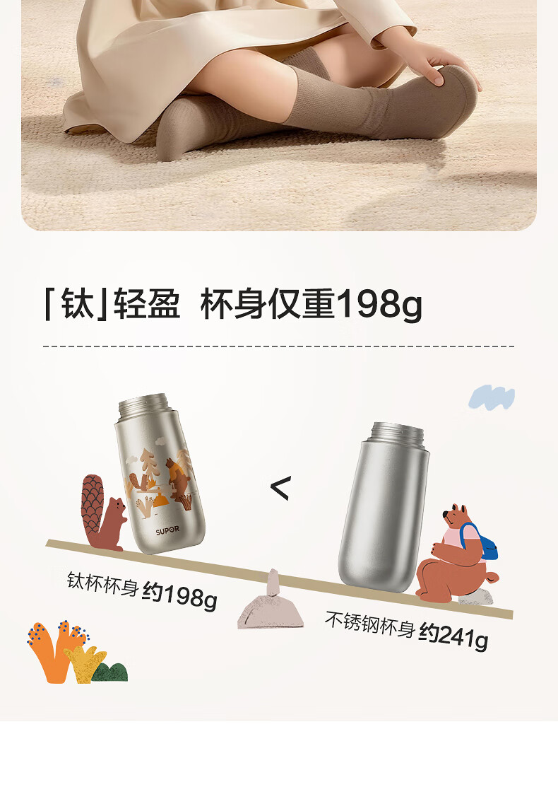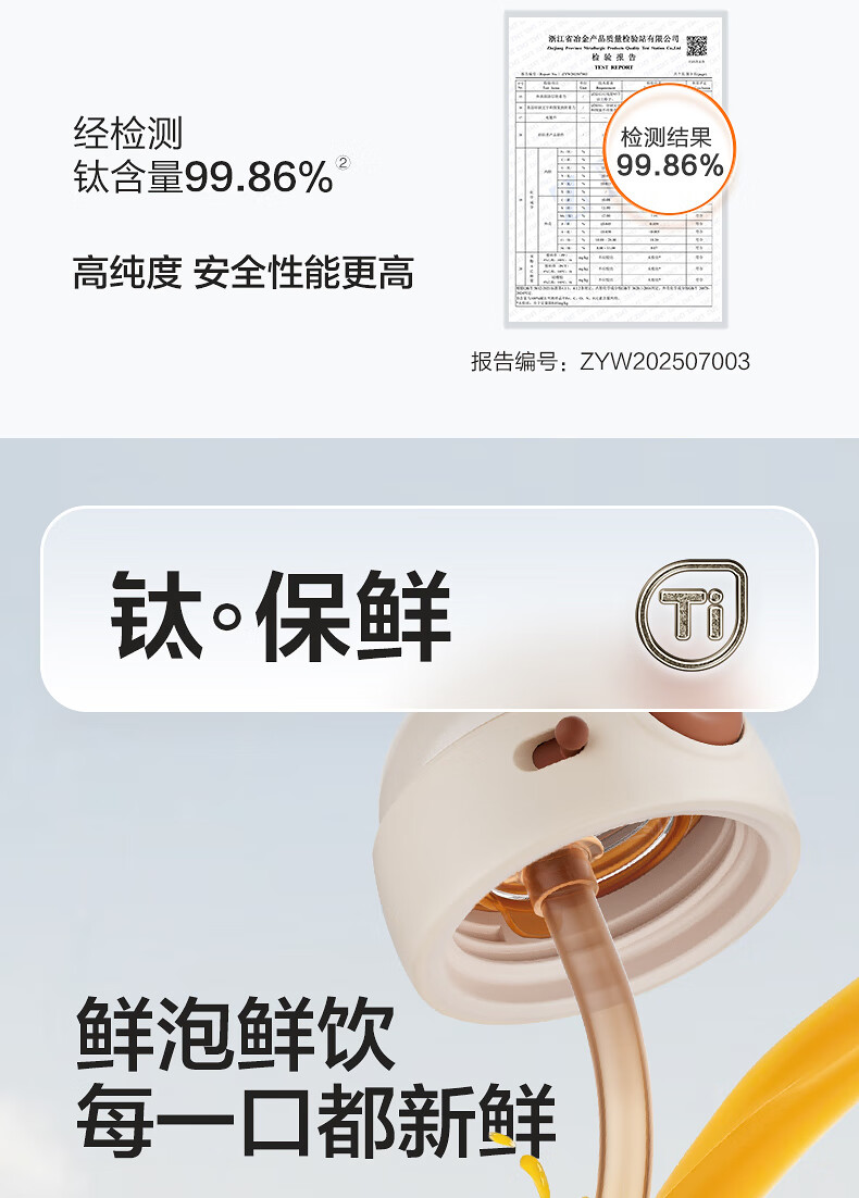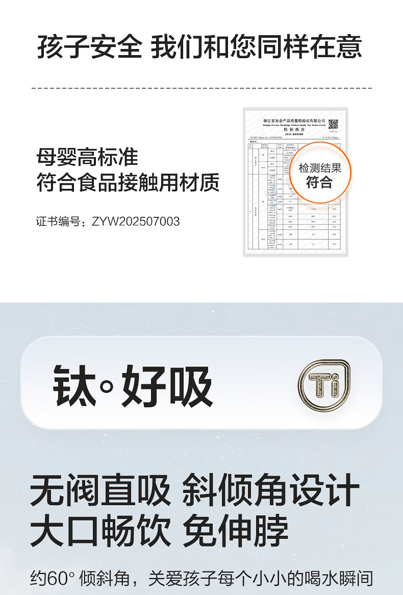 苏泊尔(SUPOR)儿童保温杯吸管杯 幼儿园上学水杯 宝宝弹盖1-3岁钛学饮杯500ml