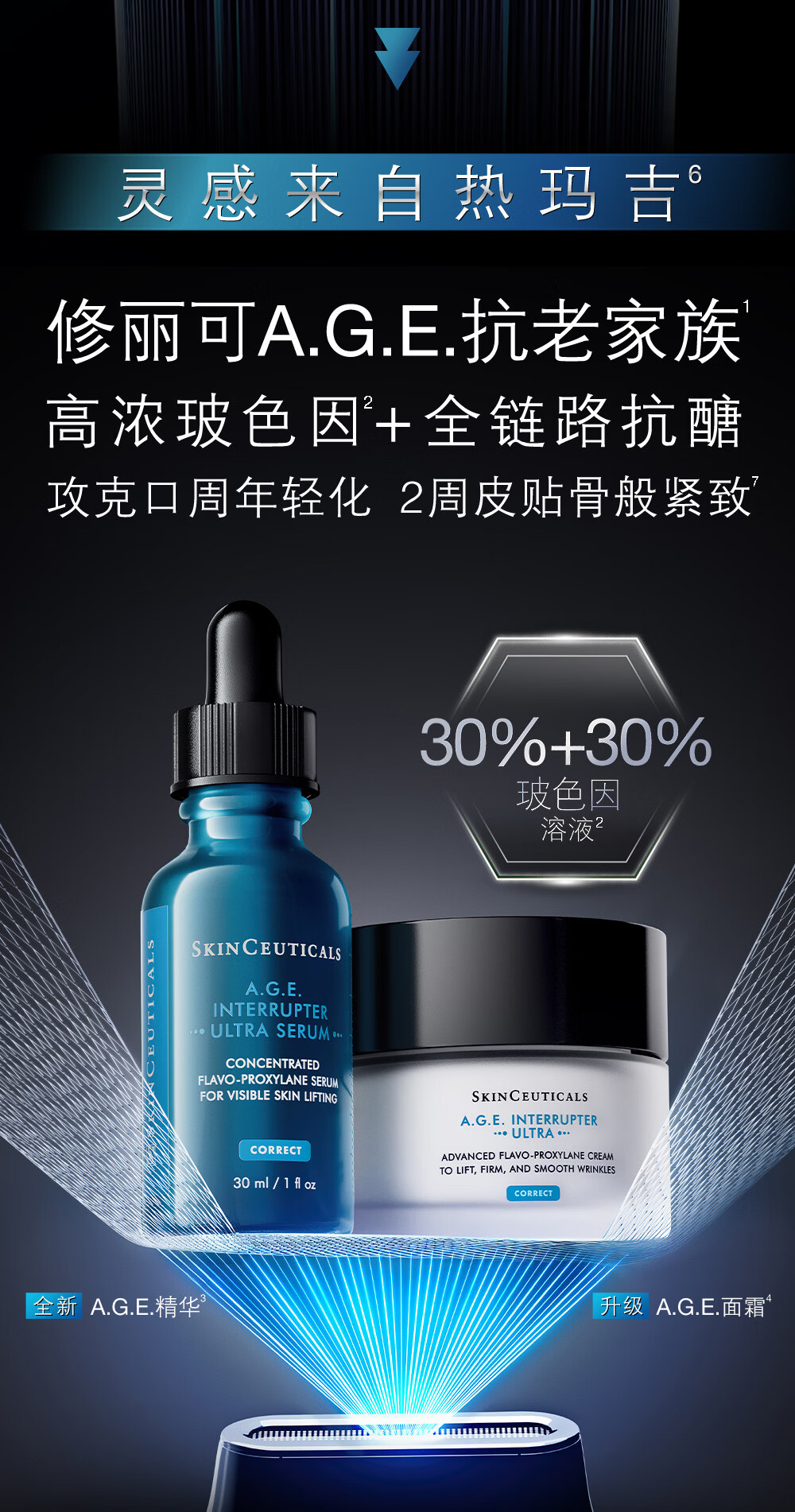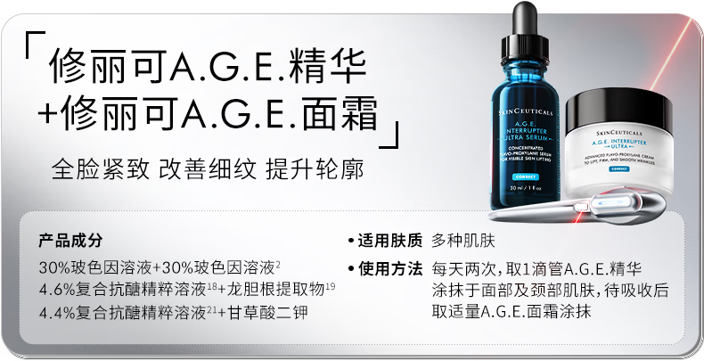 修丽可AGE精华30ml+AGE面霜48ml抗老套装护肤品30%玻色因紧致生日礼物