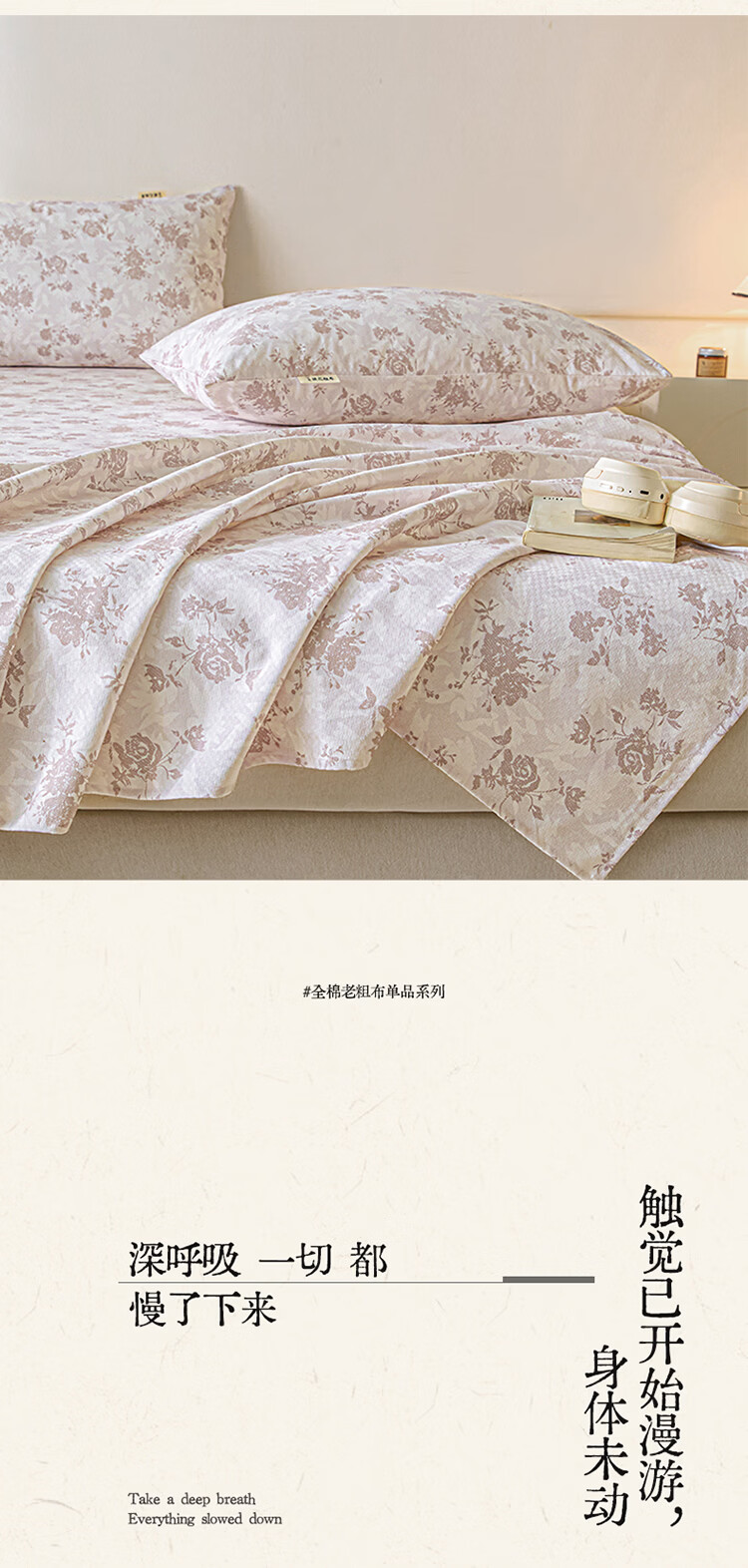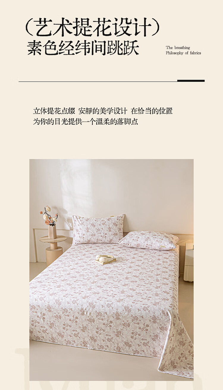 无印良品全棉床品四件套纯棉100%小清新花卉风单双人四季通用可裸睡三件套 苏屿【全棉面料 清新印花】 1.8m 床单款 被套200*230cm