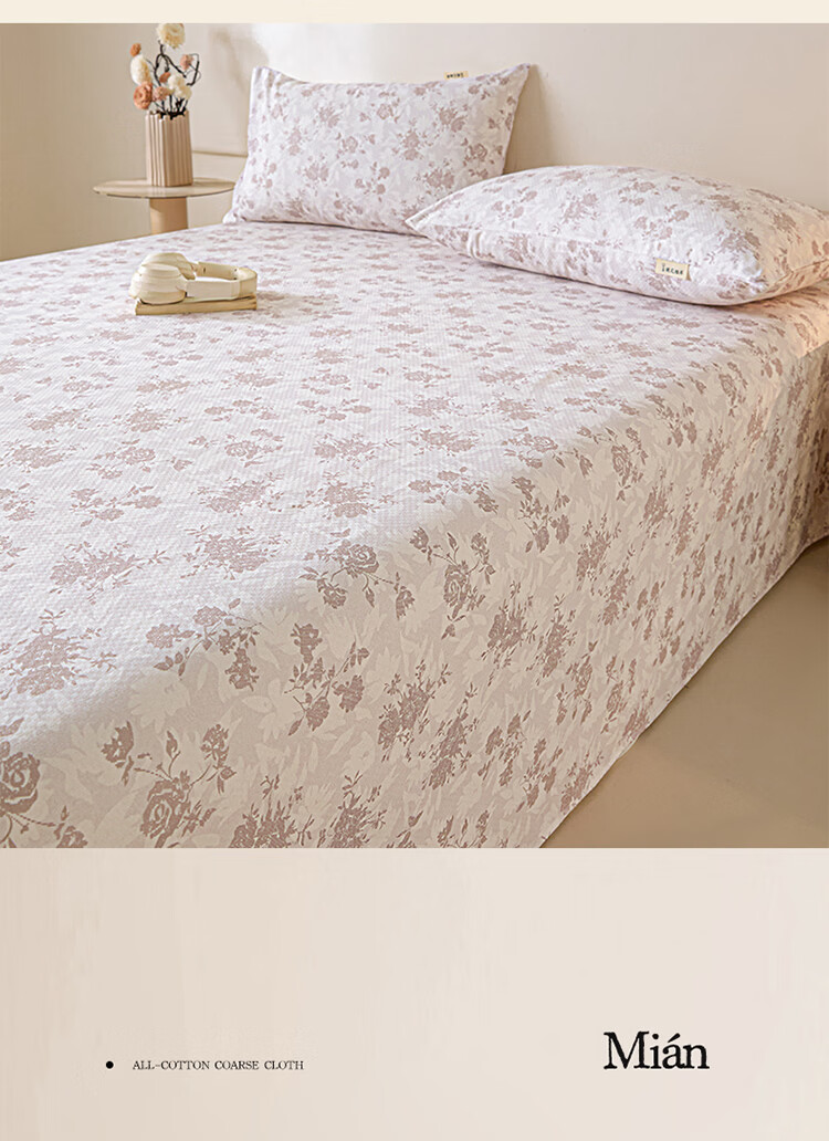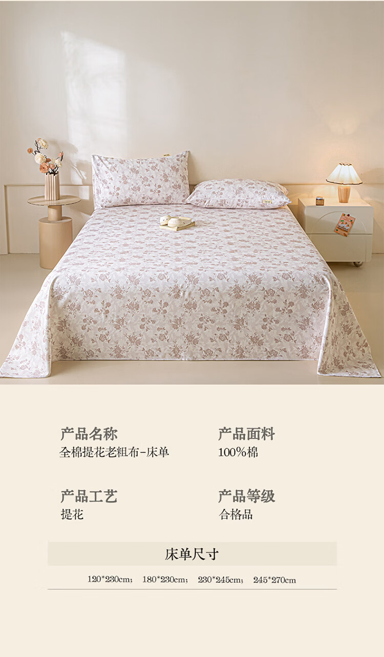 无印良品小清新全棉老粗布床单1.8x2米床纯棉被单单件双人家用床上三件套 床单-桔趣【全棉老粗布】 单床单 245cm*250cm