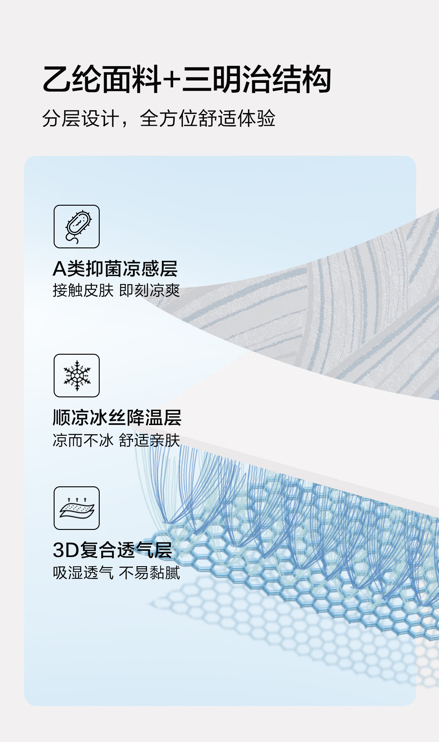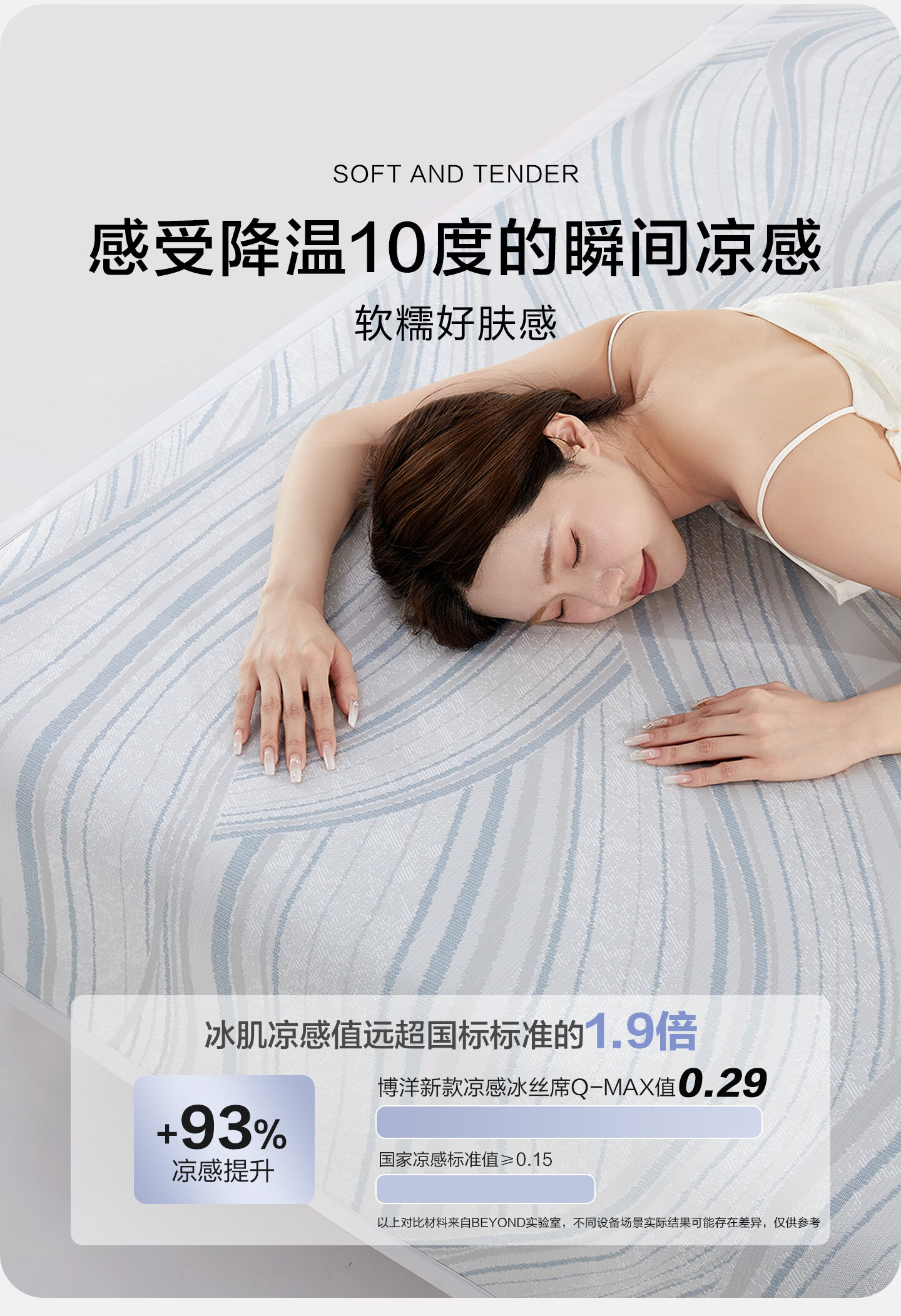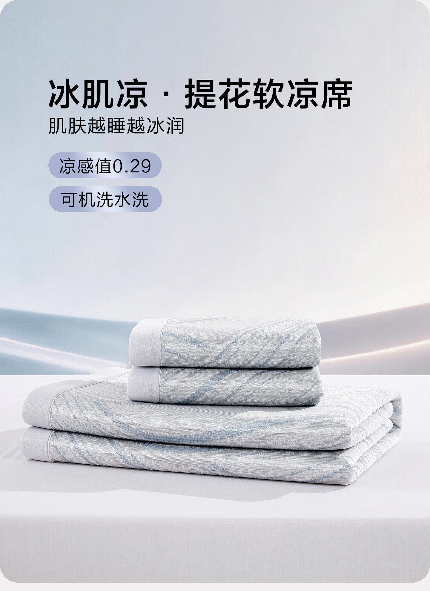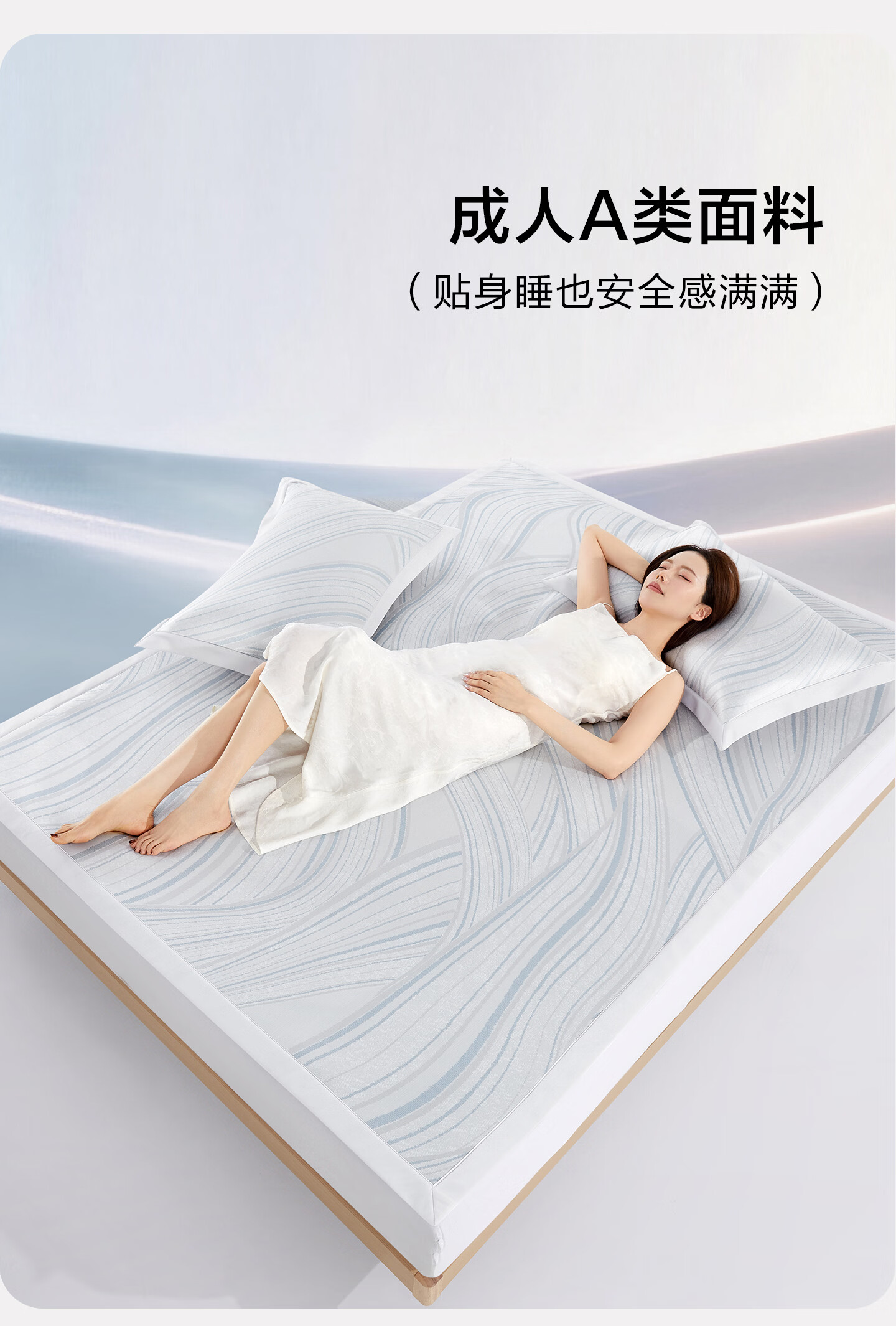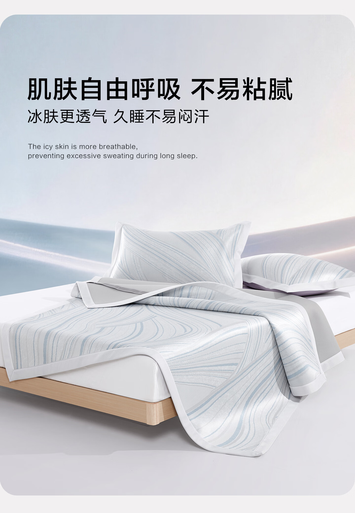 博洋(BEYOND)博洋家纺80PE凉感席二三件套夏季提花冰丝席家用单双人可水洗凉席 【A类抑菌+可水洗】清漾蓝韵 90*200cm