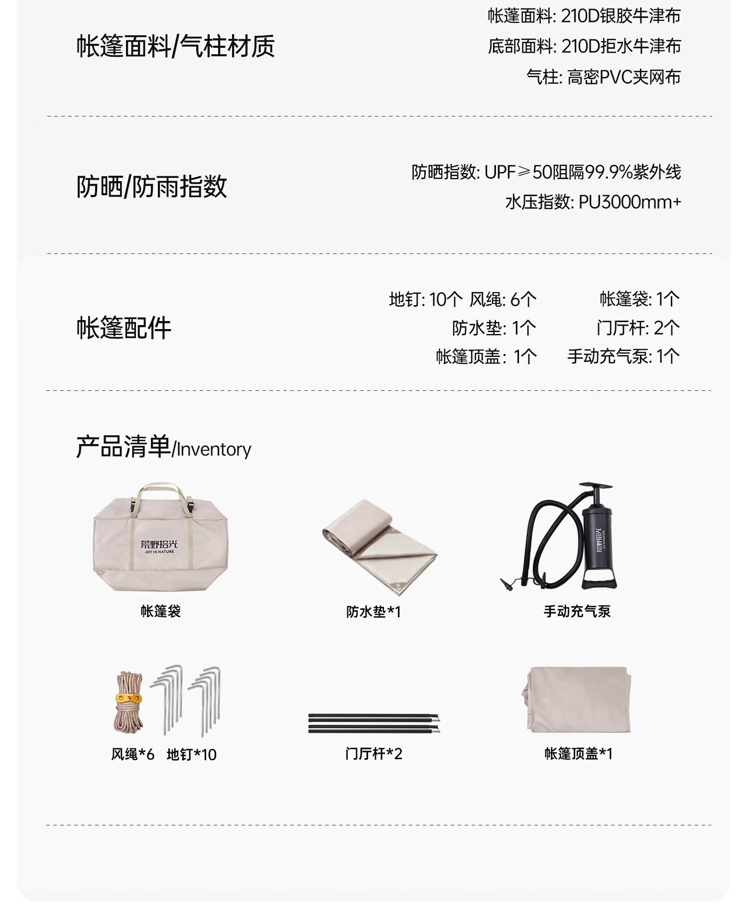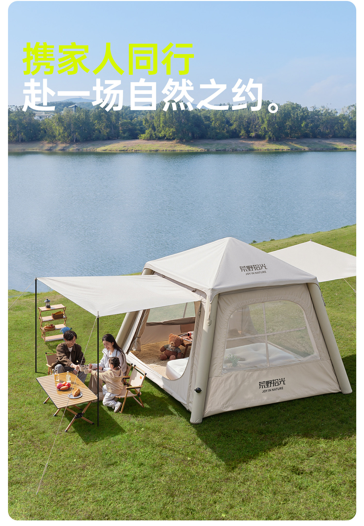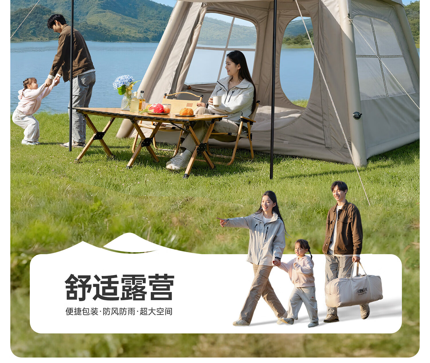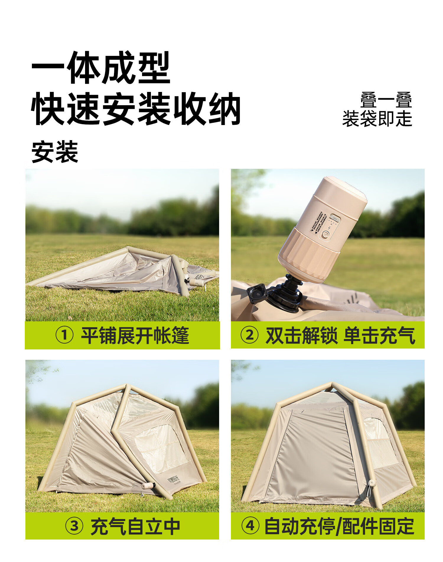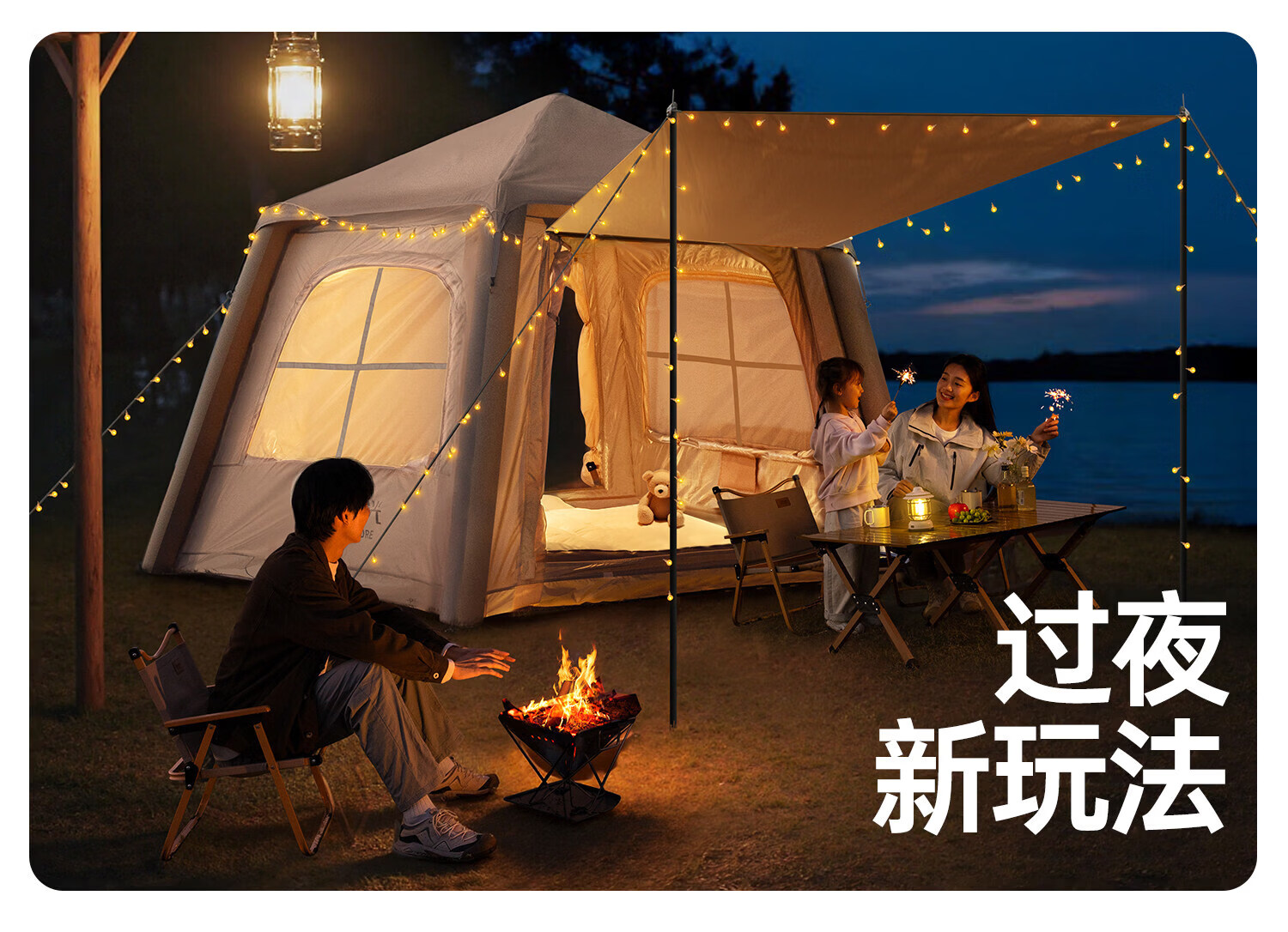 荒野拾光自动充气帐篷户外露营便携式折叠野营过夜加厚防暴雨装备全套新款 【全自动充/放气(Pro款)充气床+桌椅套装】可坐可躺卧