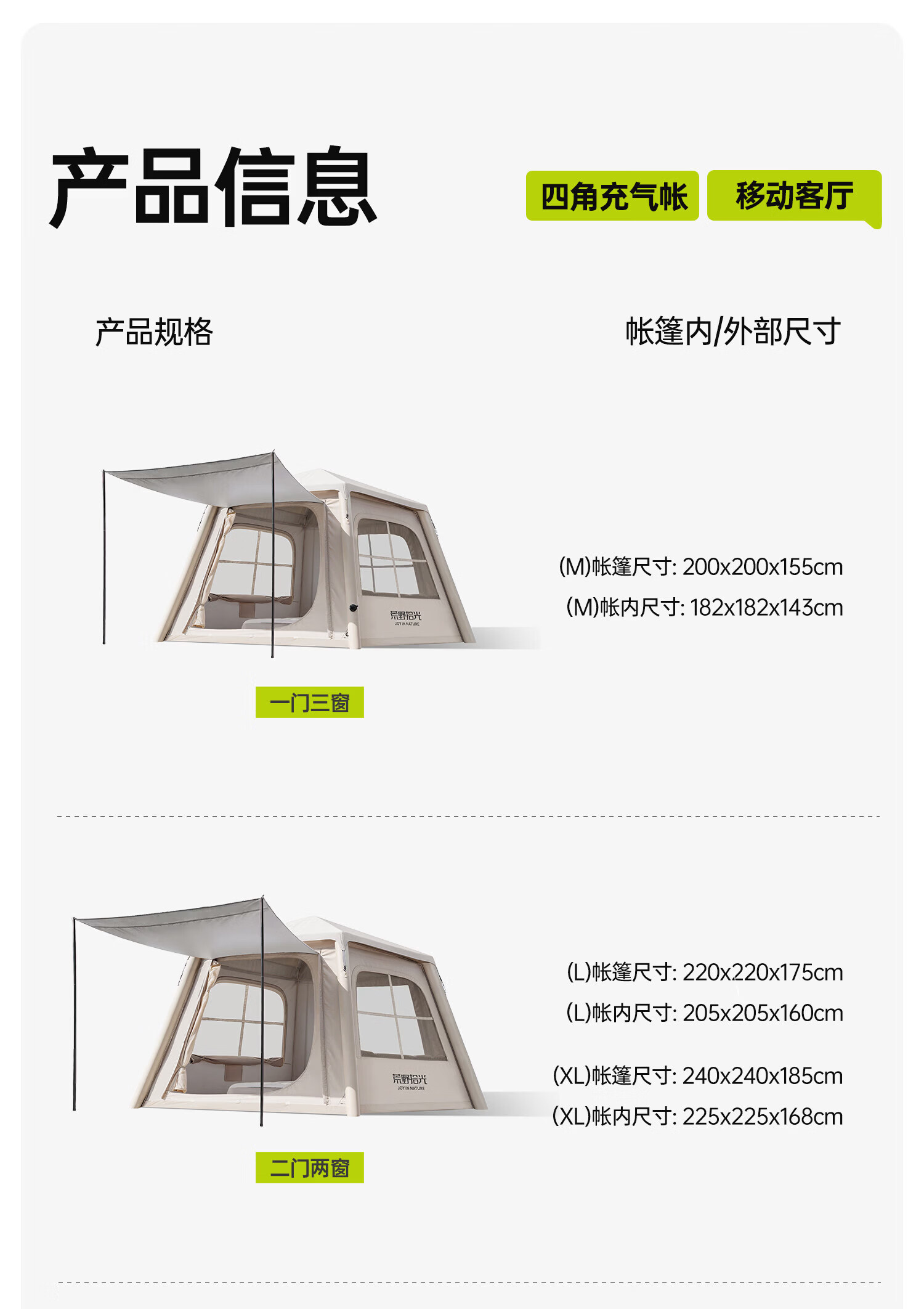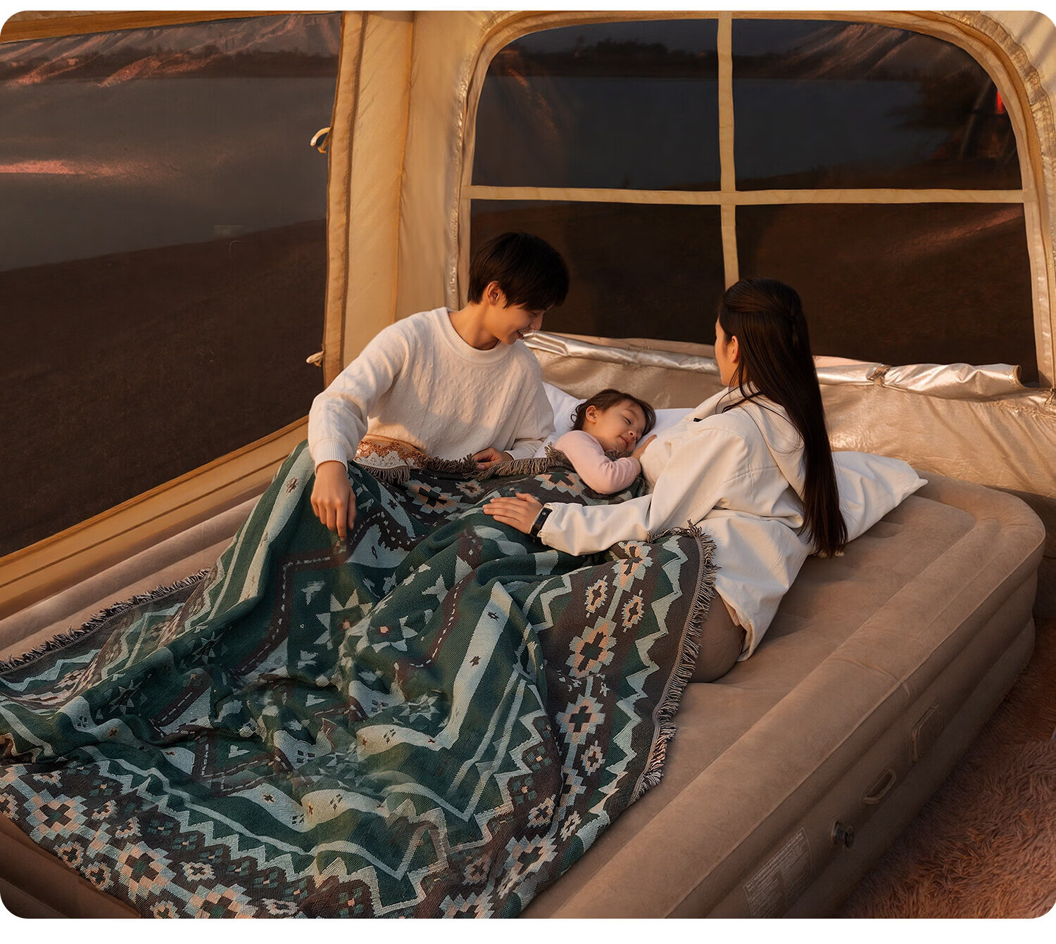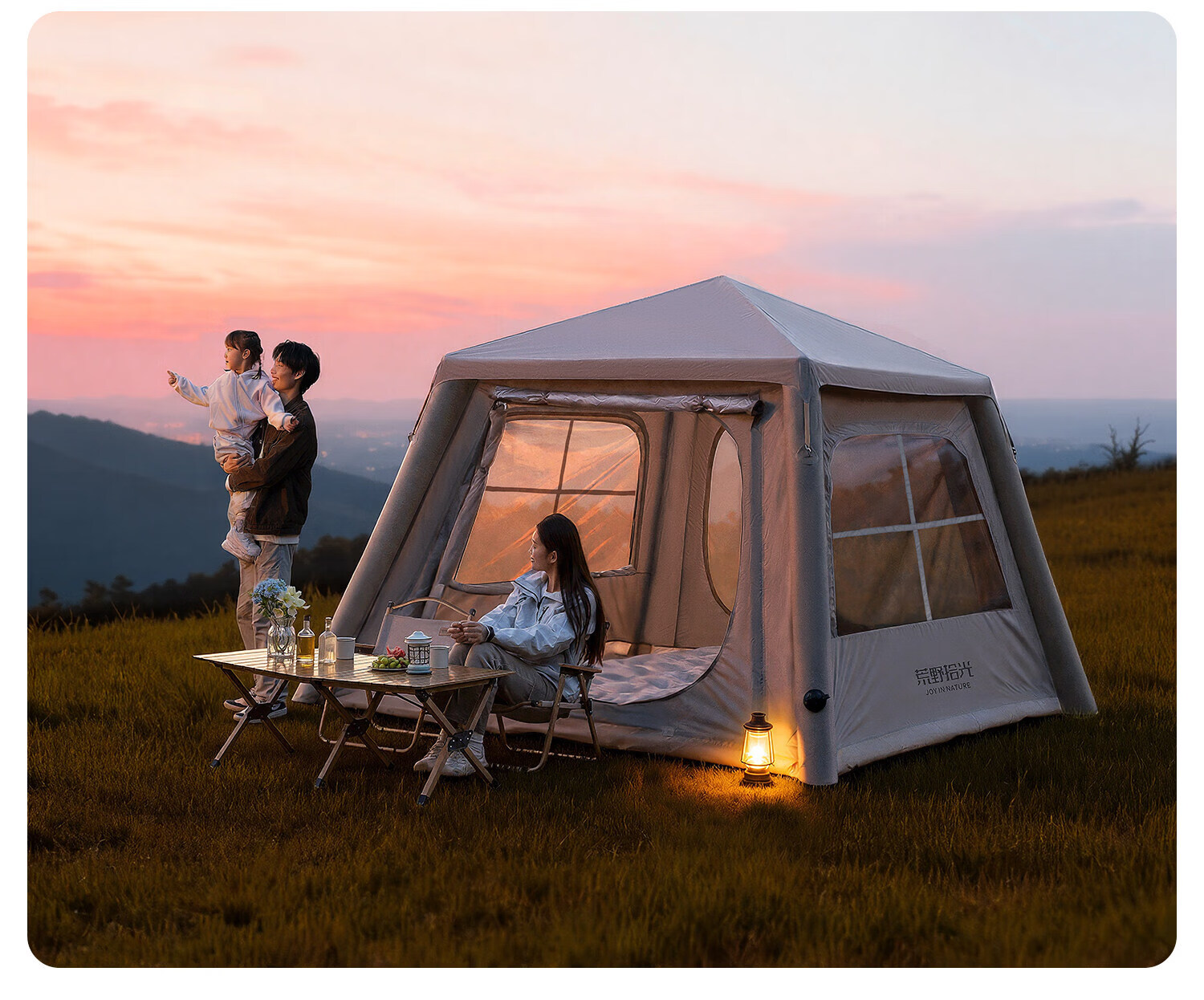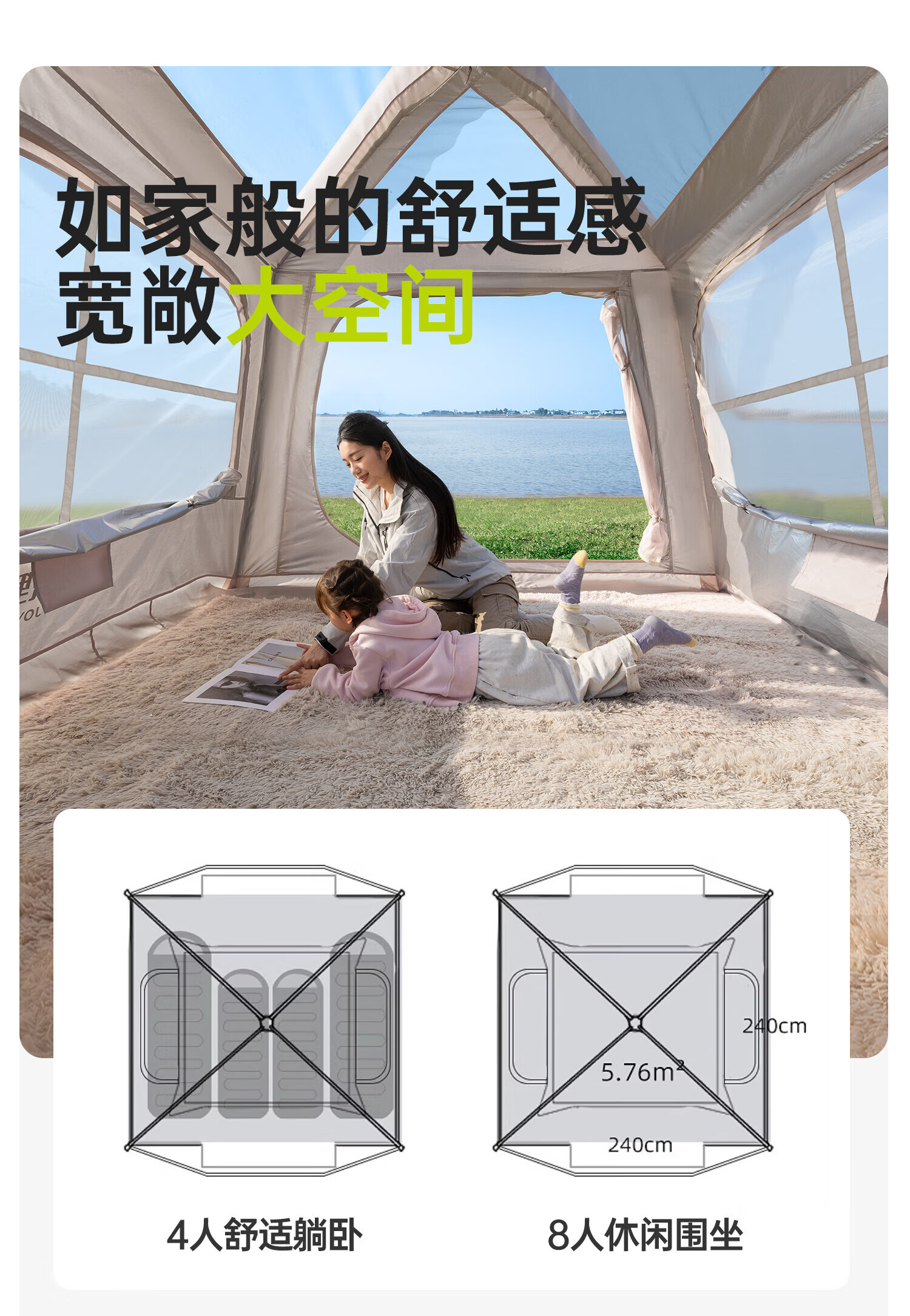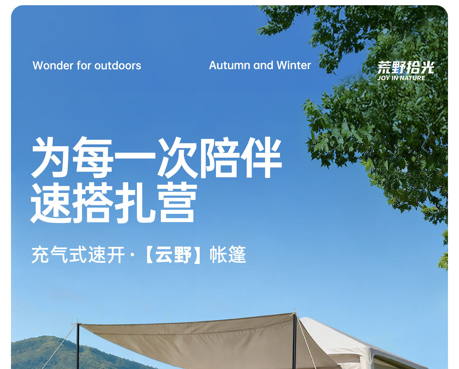 荒野拾光自动充气帐篷户外露营便携式折叠野营过夜加厚防暴雨装备全套新款 【全自动充/放气(Pro款)充气床+桌椅套装】可坐可躺卧