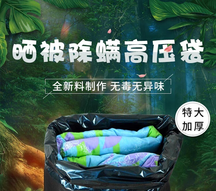 超大黑色塑料袋晒被子除螨虫加厚特大号胶袋高压pe平口袋搬家袋子纤雅洁 5只超值价 65x100cm(双面8丝)