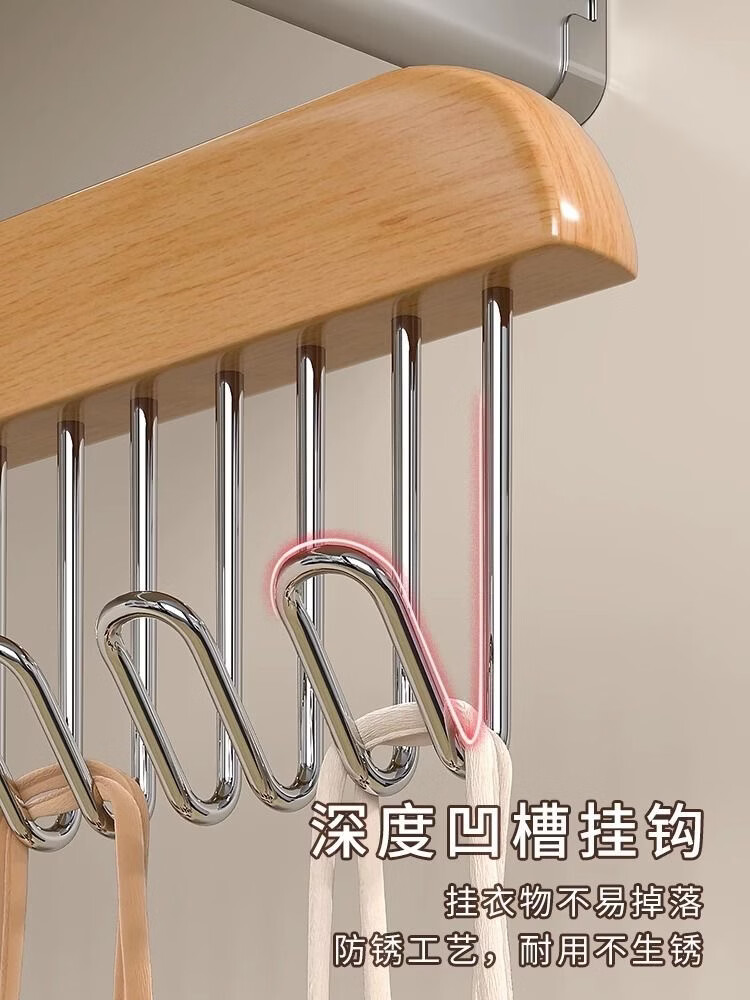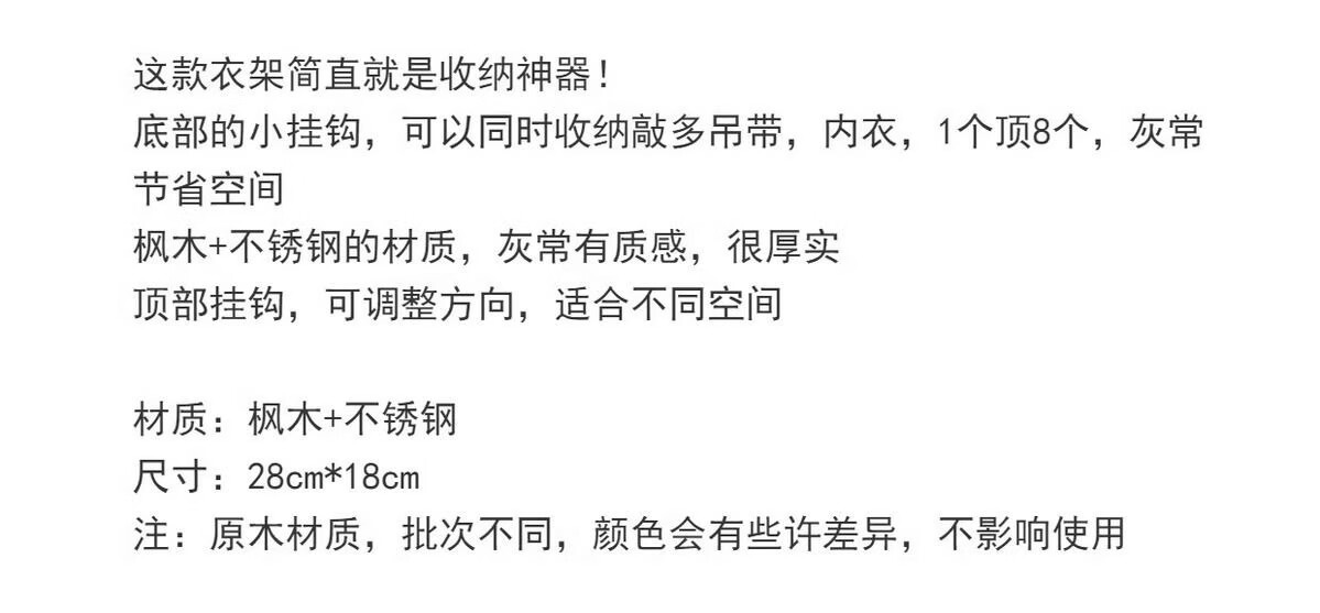 木质复古多功能衣架门后挂钩收纳吊带背心文胸神器 原木色2个 无规格