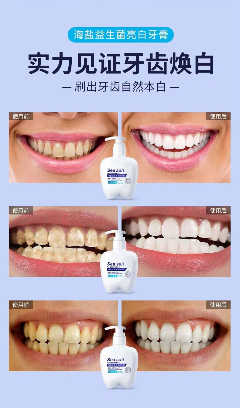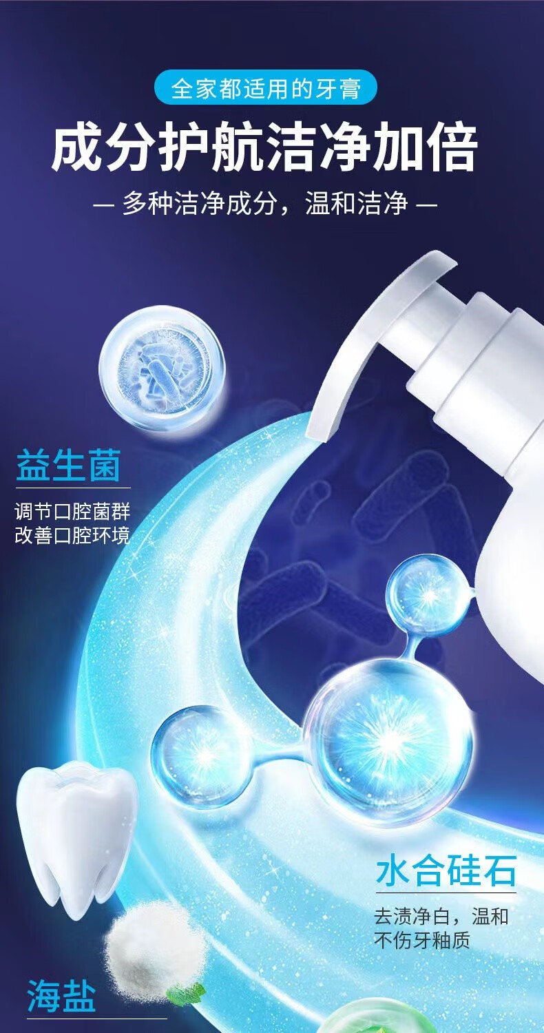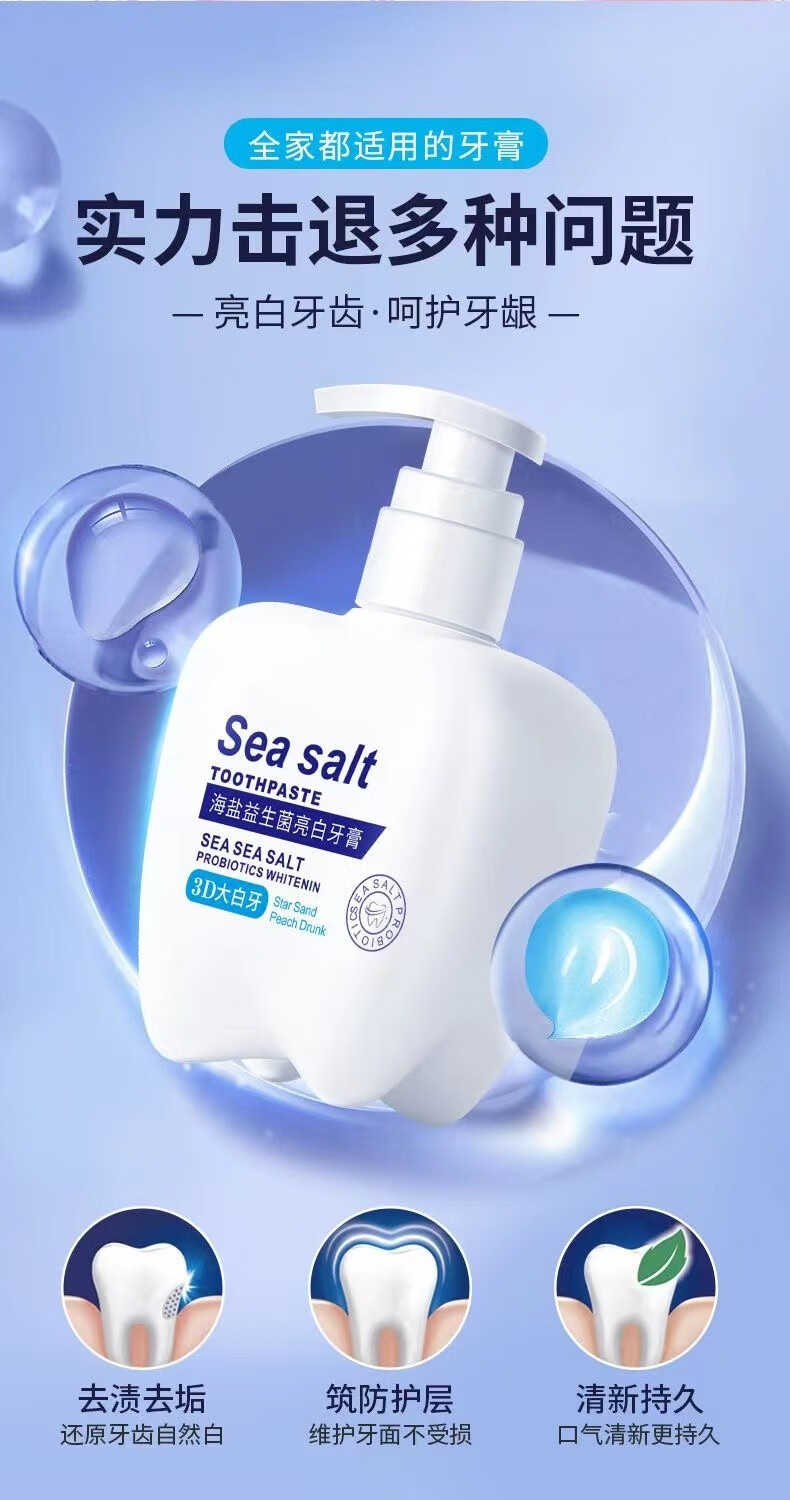 同伢堂益生菌海盐薄荷牙膏按压式清新口气去渍净洁牙齿口腔护理 1瓶