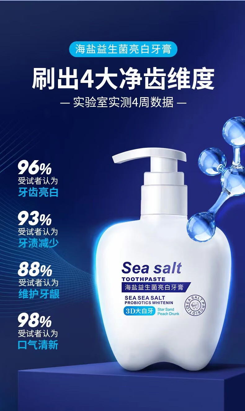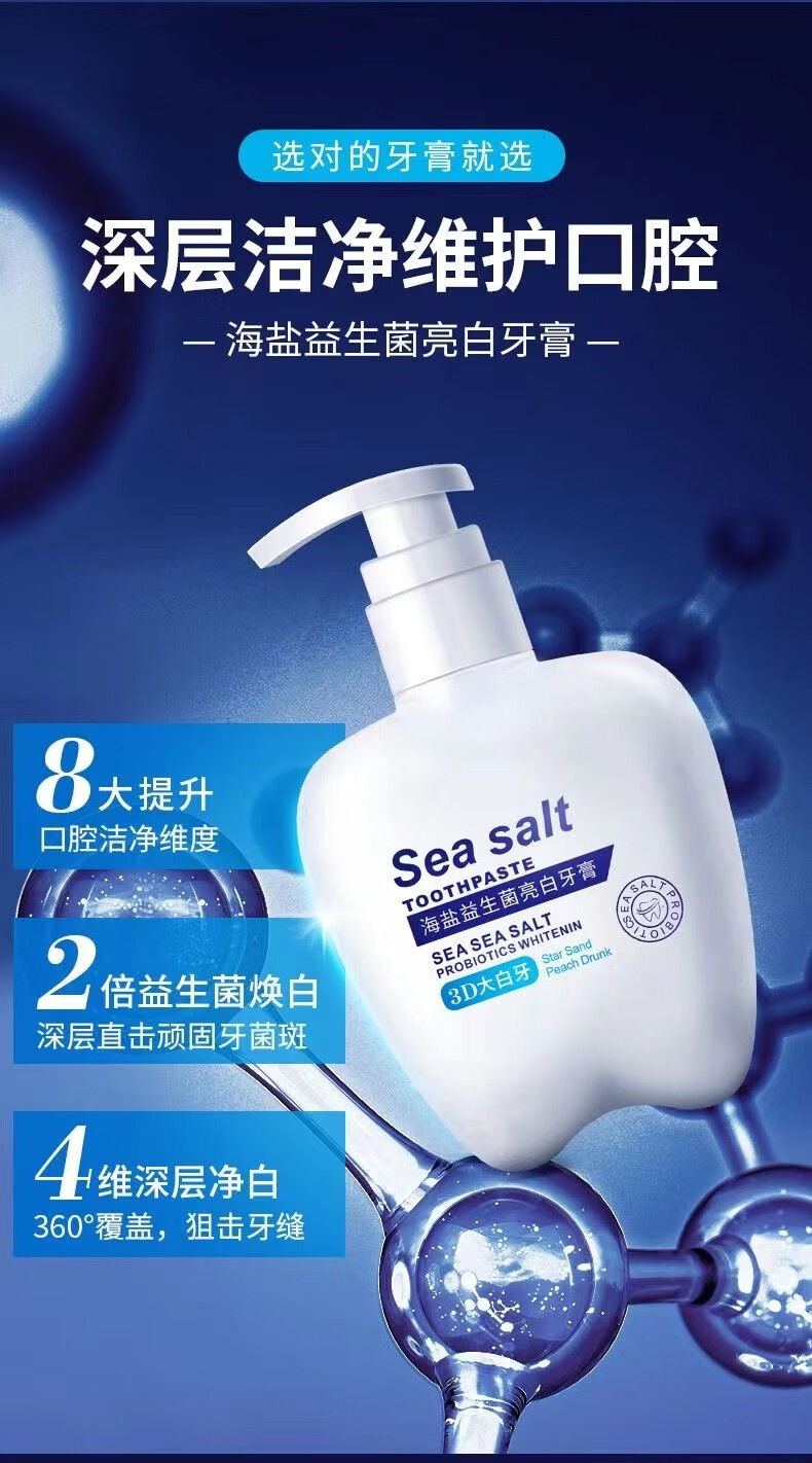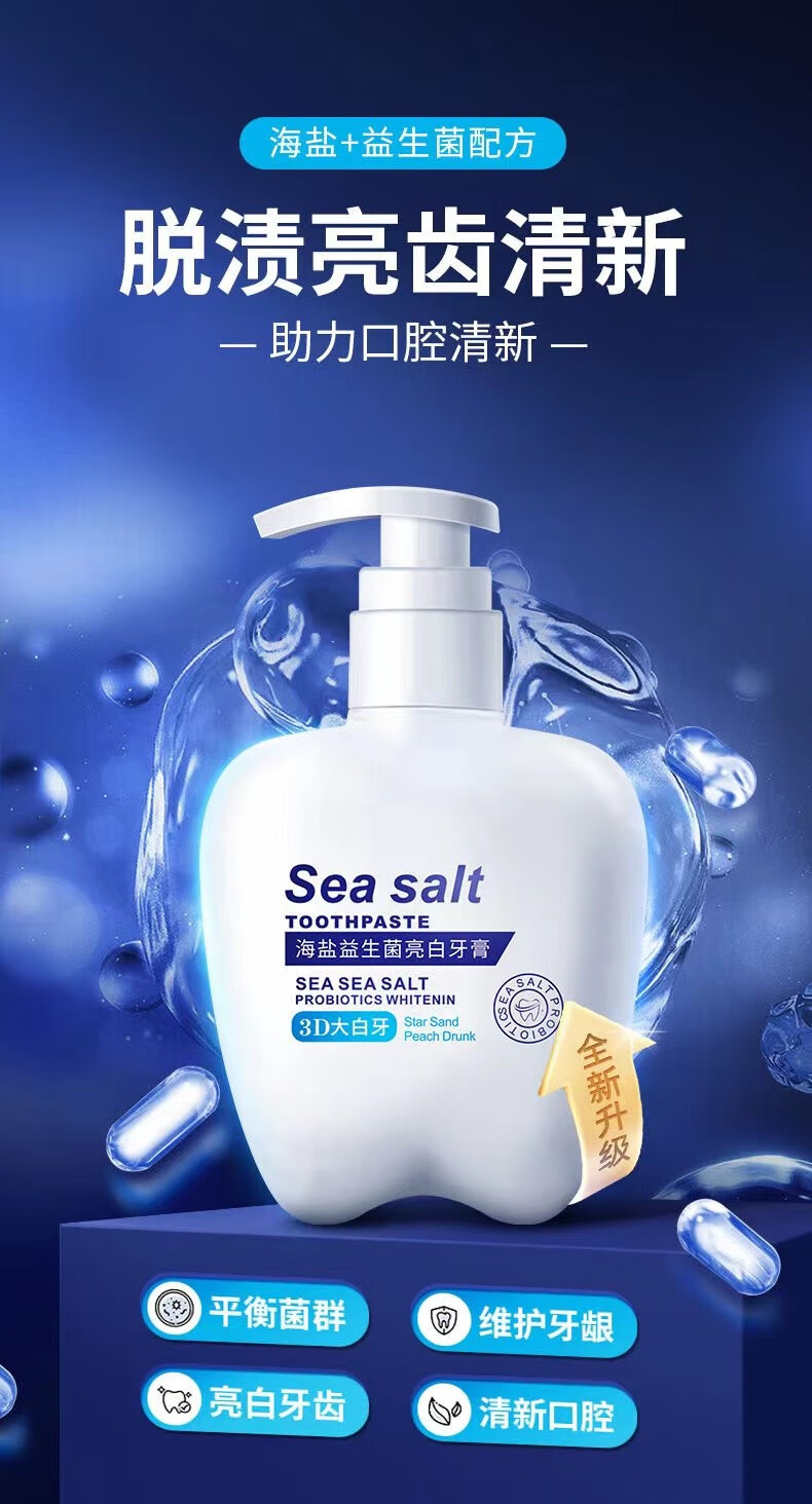同伢堂益生菌海盐薄荷牙膏按压式清新口气去渍净洁牙齿口腔护理 1瓶
