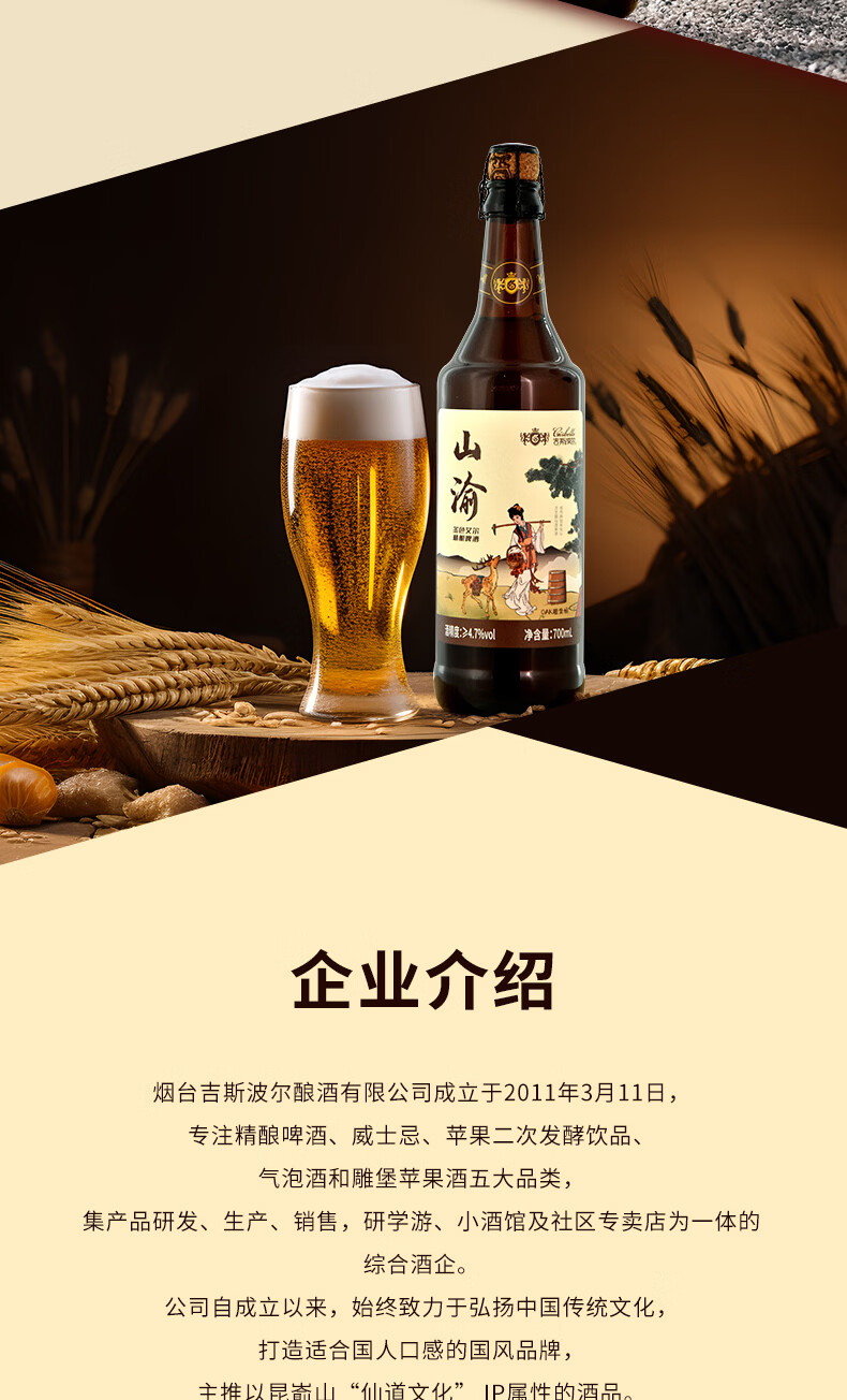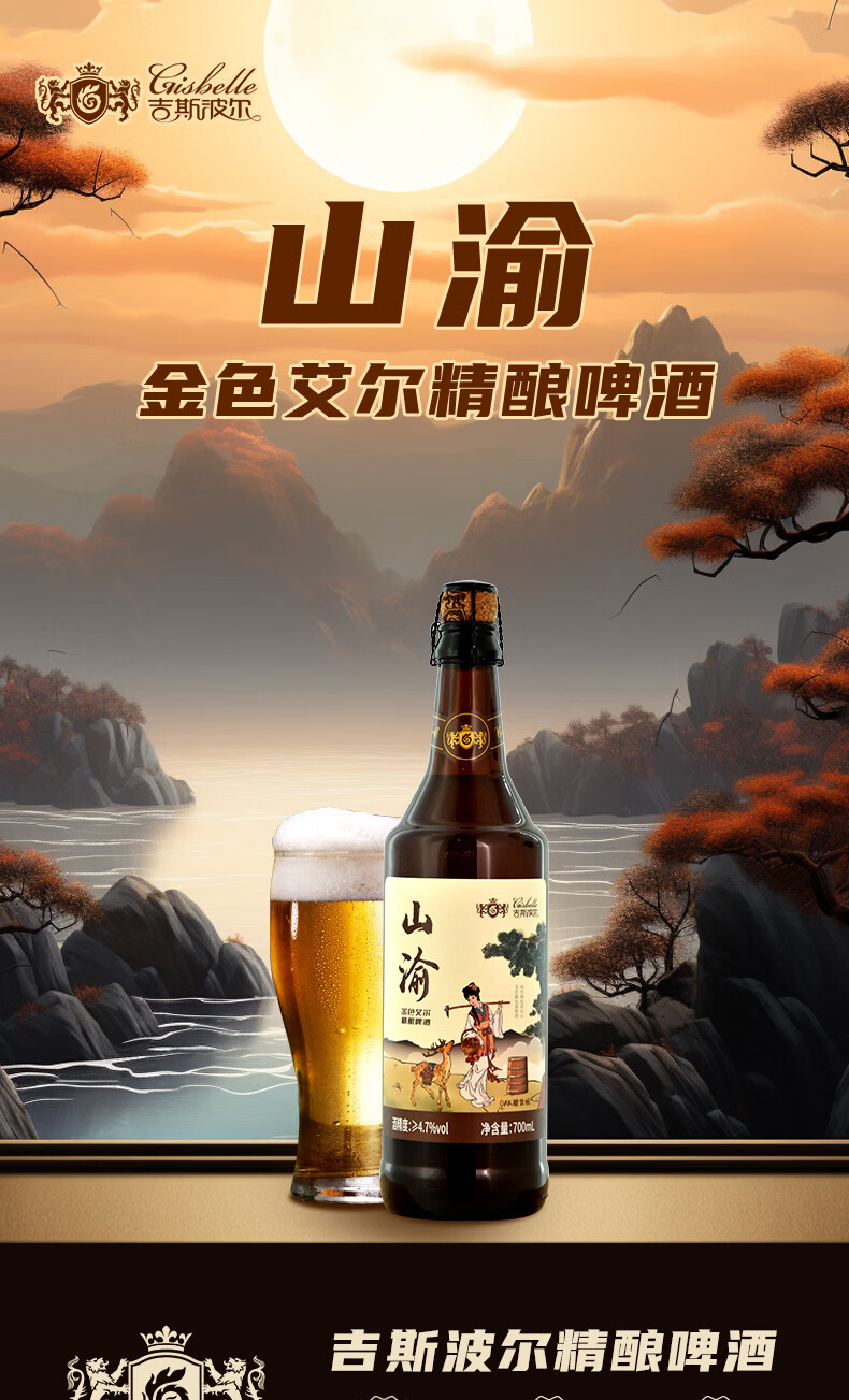 吉斯波尔国产山渝精酿啤酒金色艾尔工艺4.7度瓶装啤酒700ml*2瓶聚餐 700mL 2瓶 双瓶装