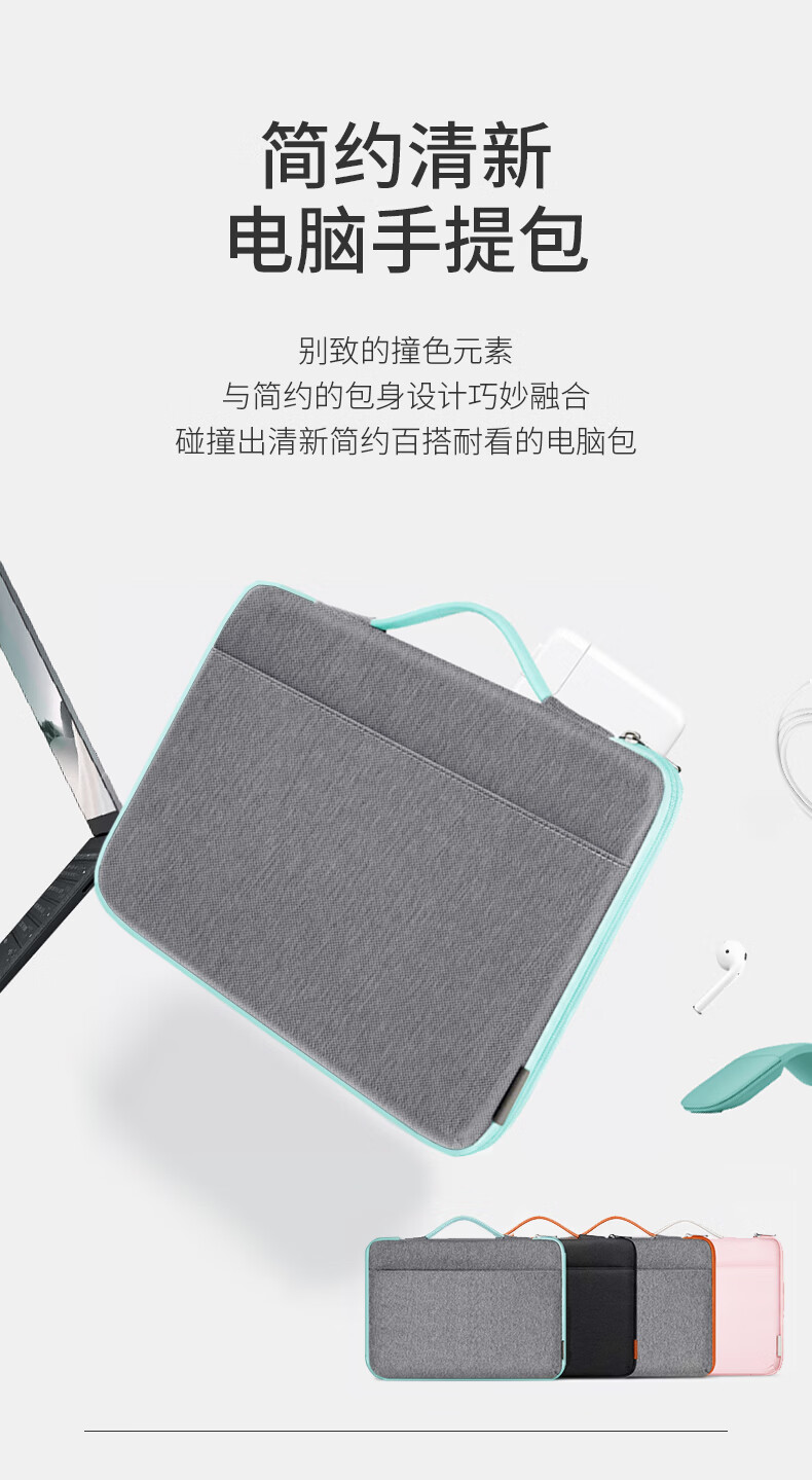 inateck电脑包MacBook16英寸pro13/14英寸胆包15.6笔记本手提电脑包 魅力黑 14英寸