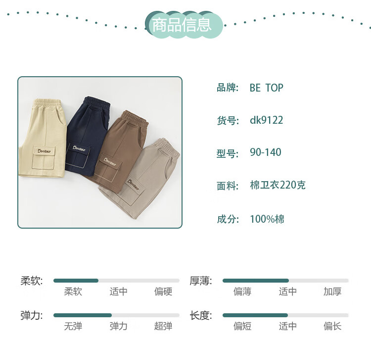 童装批发男童裤子夏季新款儿童五分外穿中裤子 浅杏 90 cm